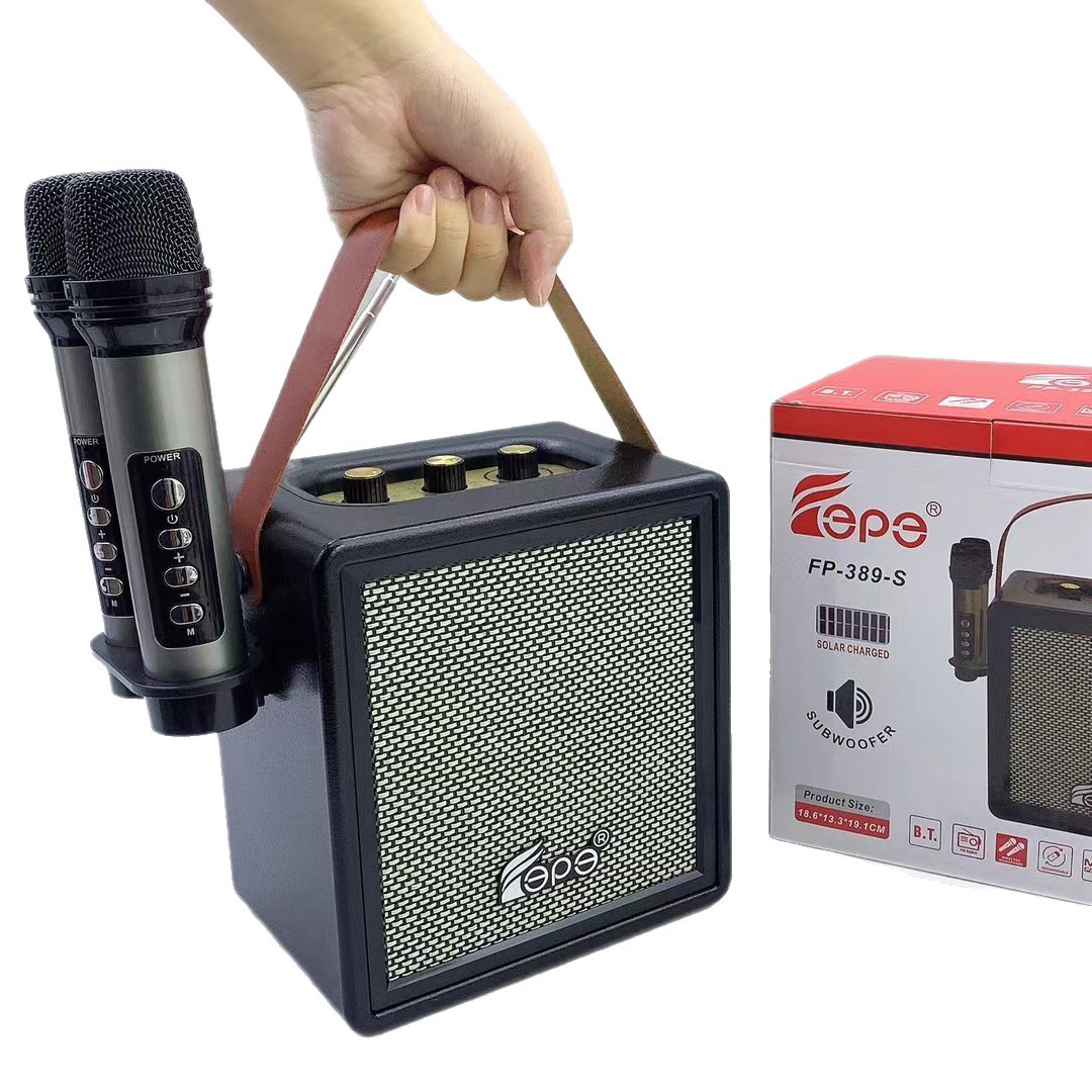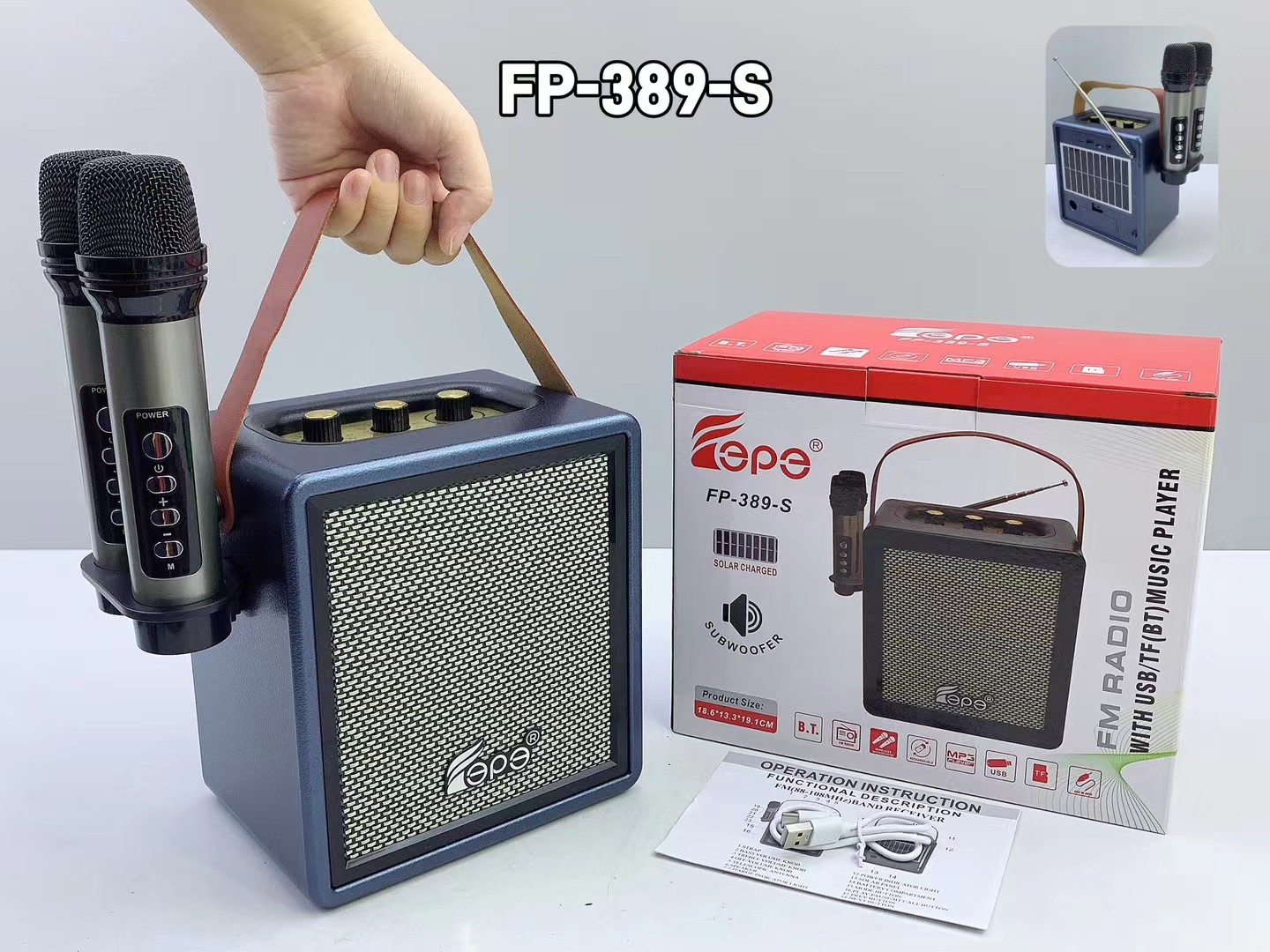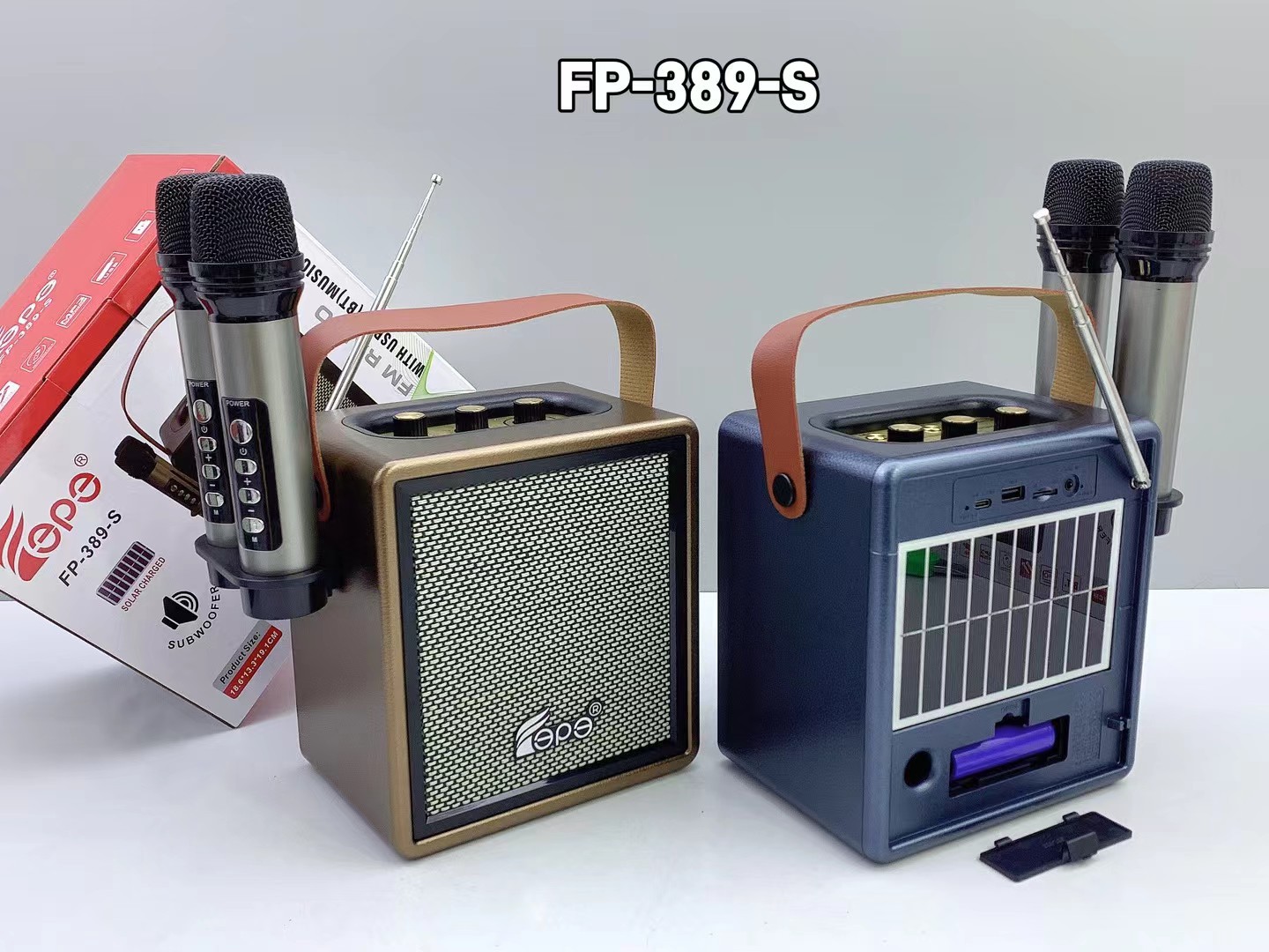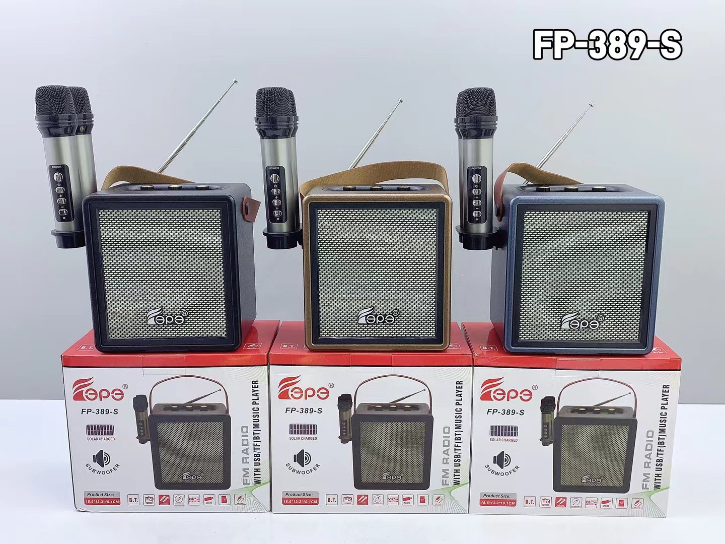 FP-389-S 跨境复古收音手提无线麦克风蓝牙音箱户外太阳能低音炮