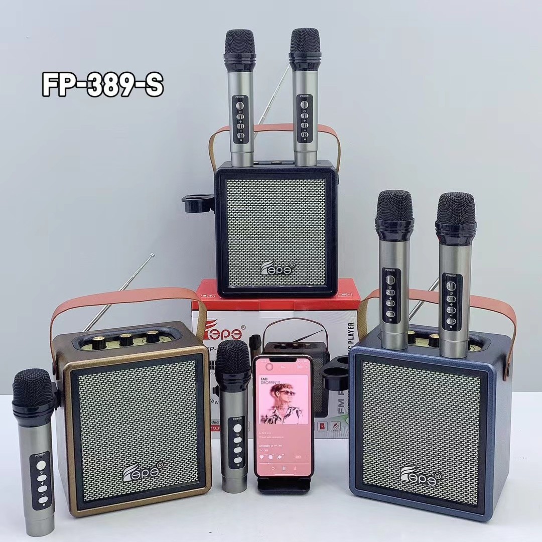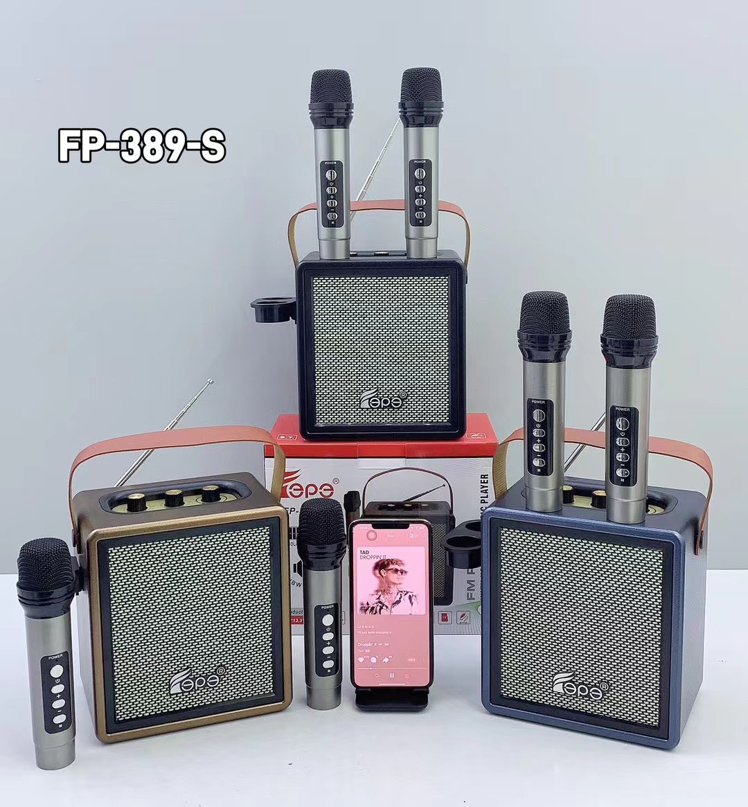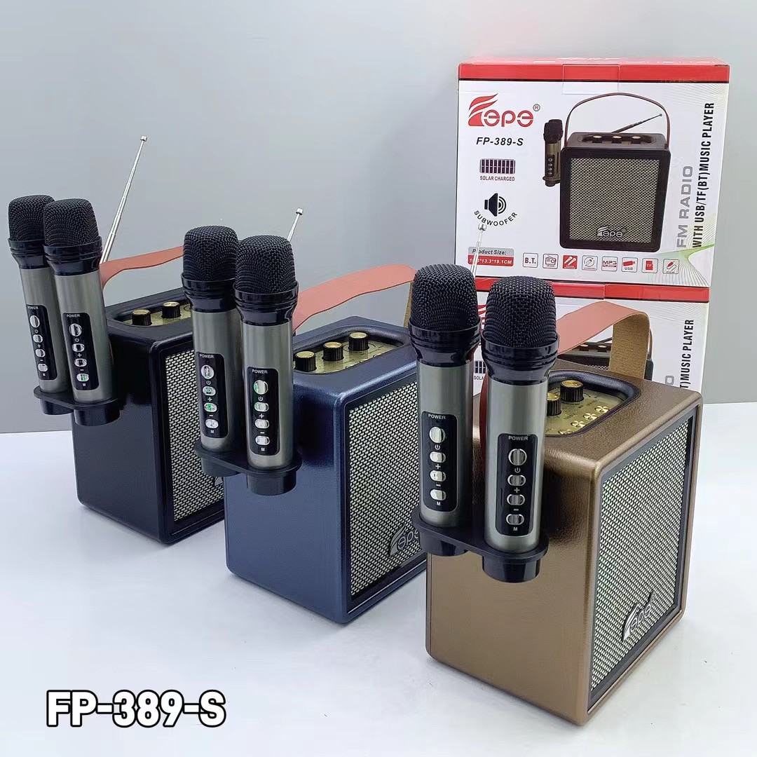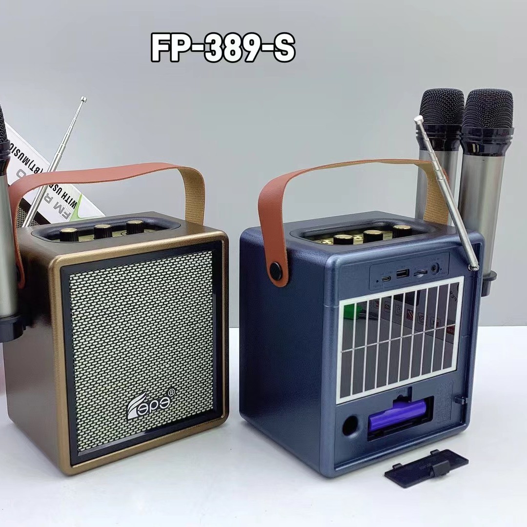 FP-389-S 跨境复古收音手提无线麦克风蓝牙音箱户外太阳能低音炮