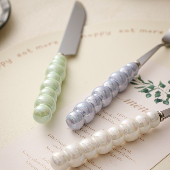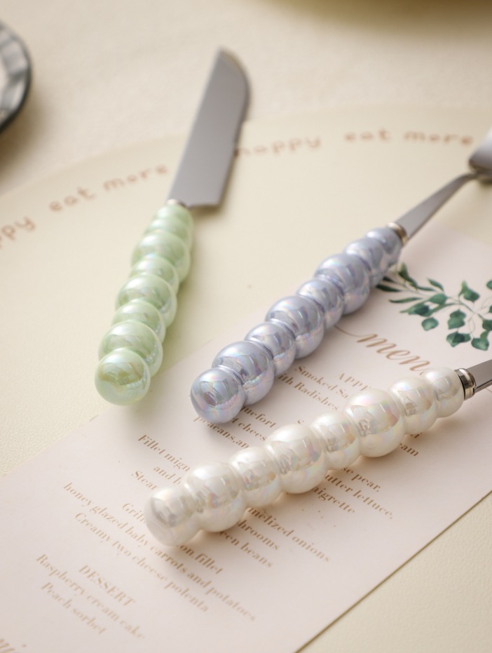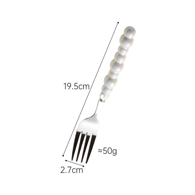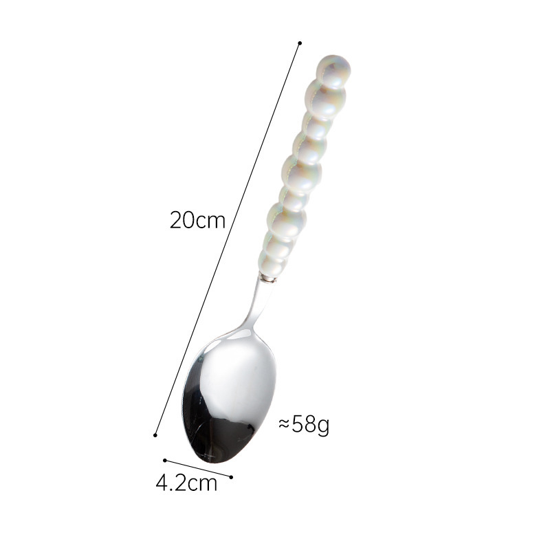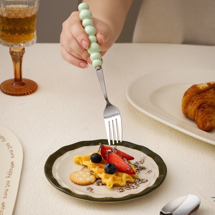 批发创意网红不锈钢勺珍珠陶瓷柄学生吃饭餐勺子叉子汤勺甜品调羹