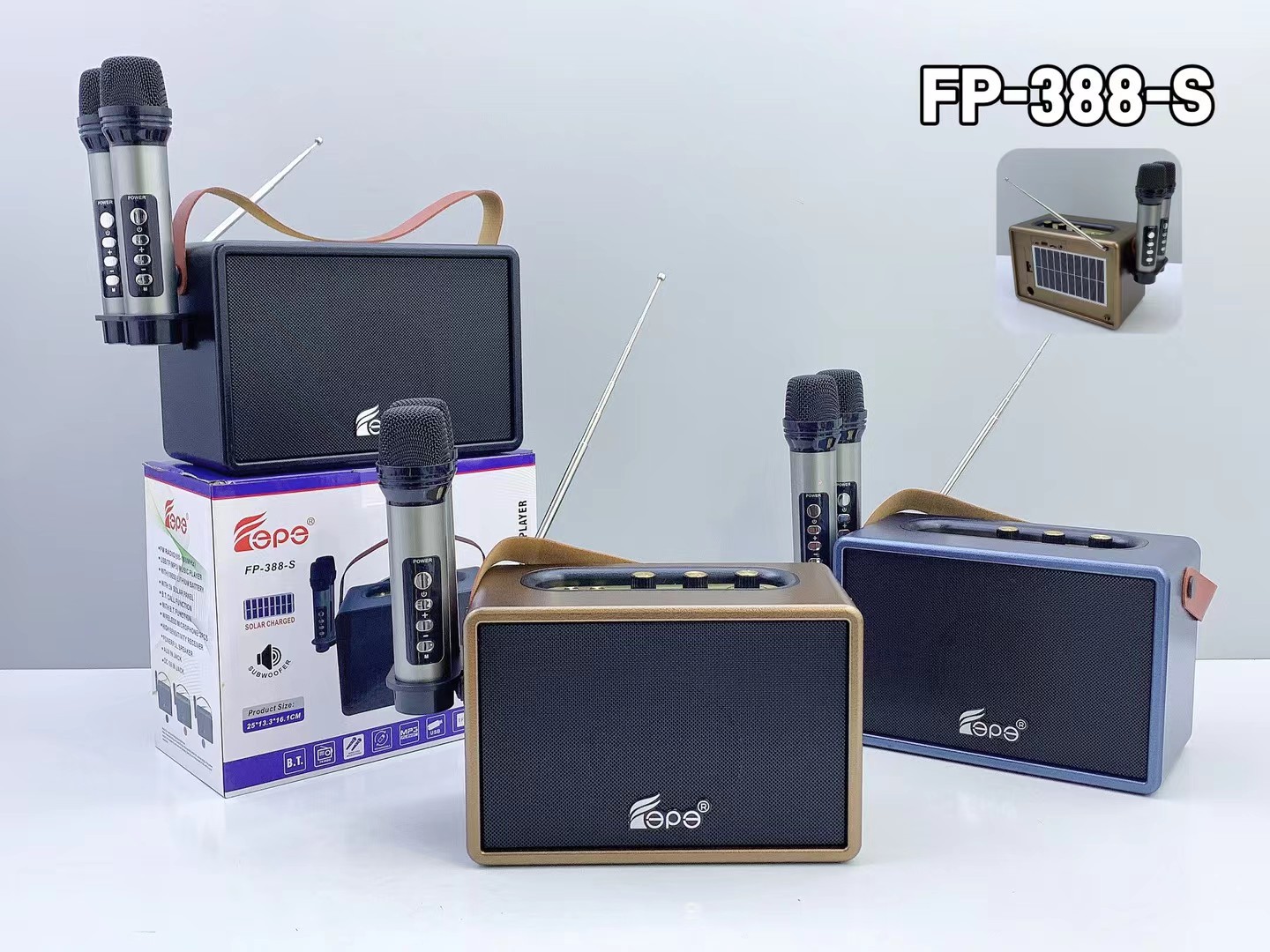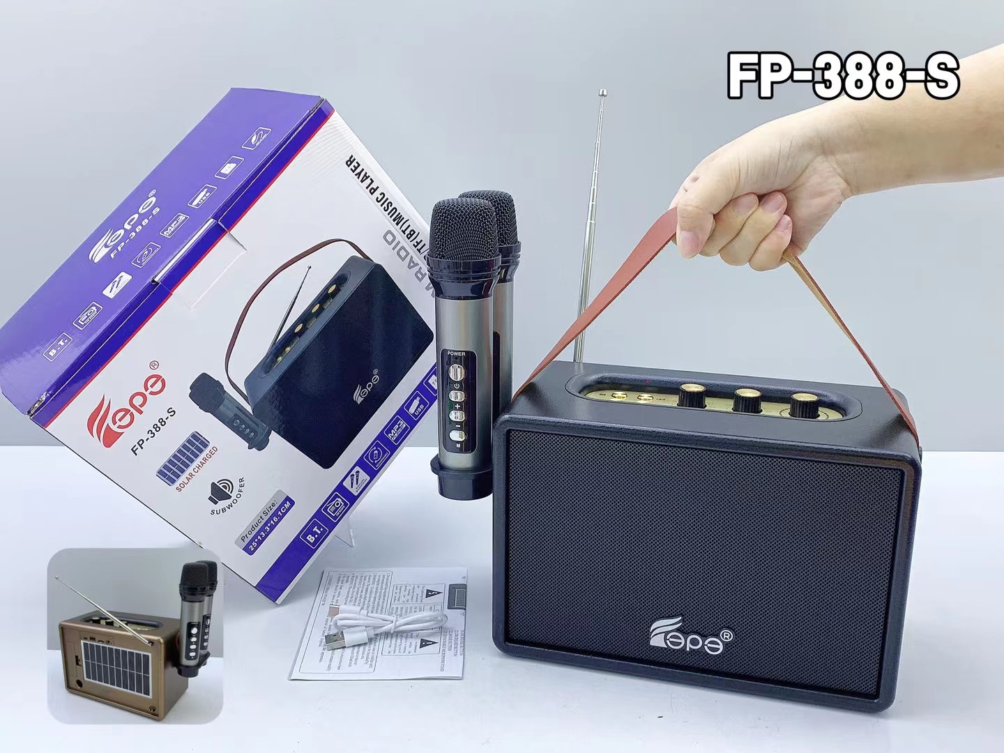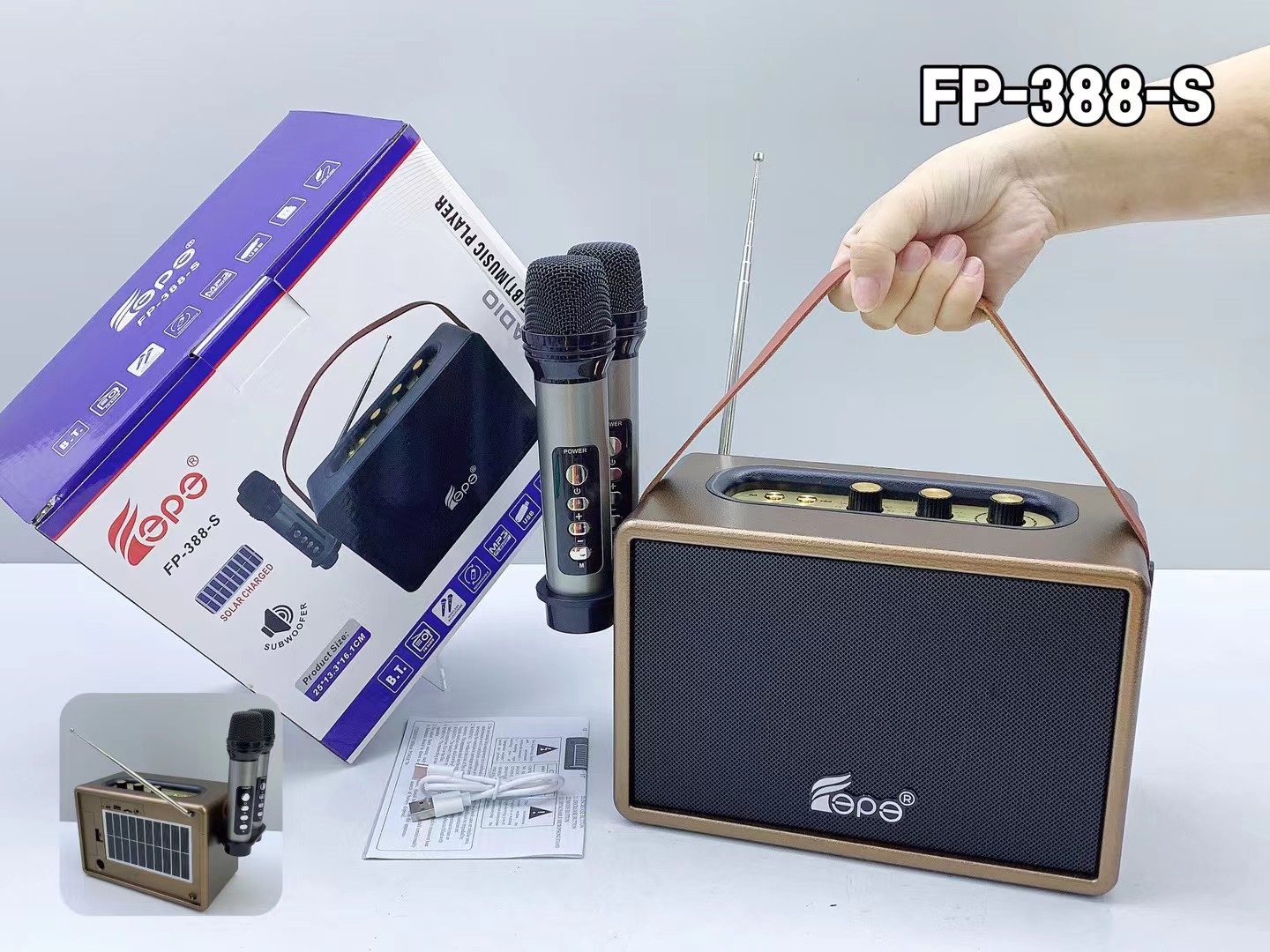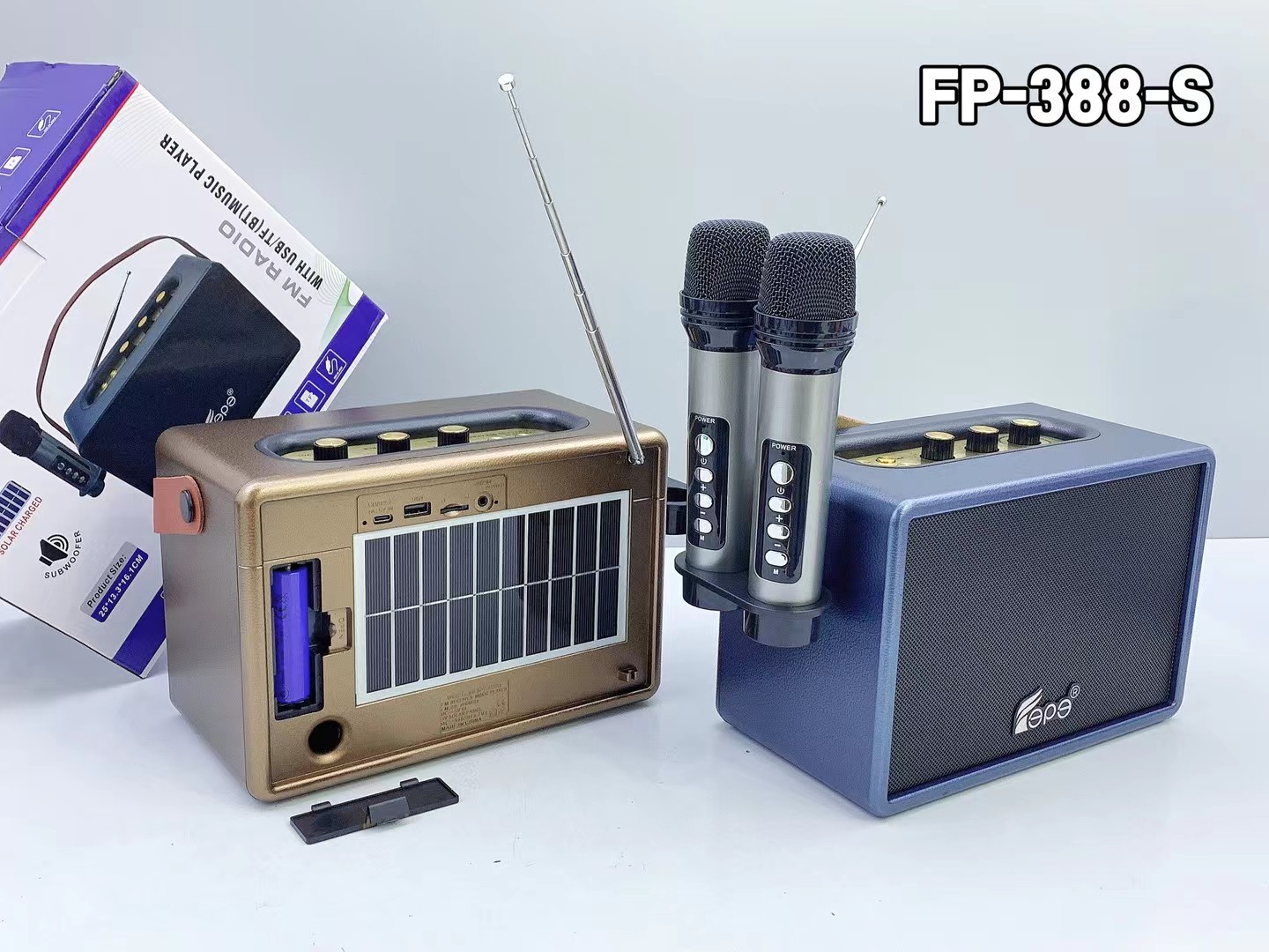 FP-388-S 跨境复古蓝牙音响手提太阳能收音机家庭无线双麦克风KTV