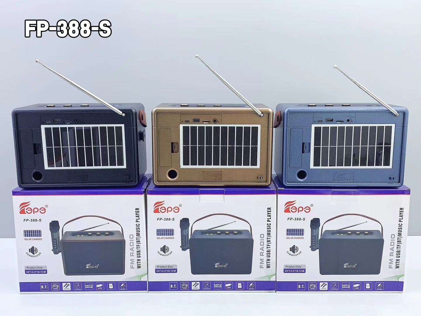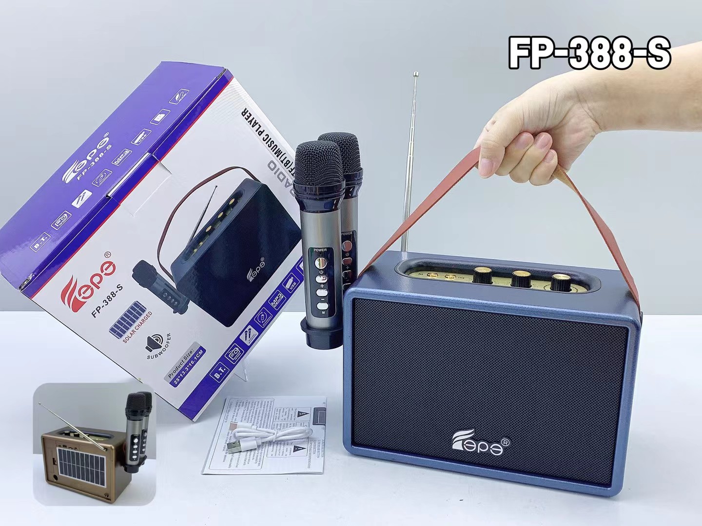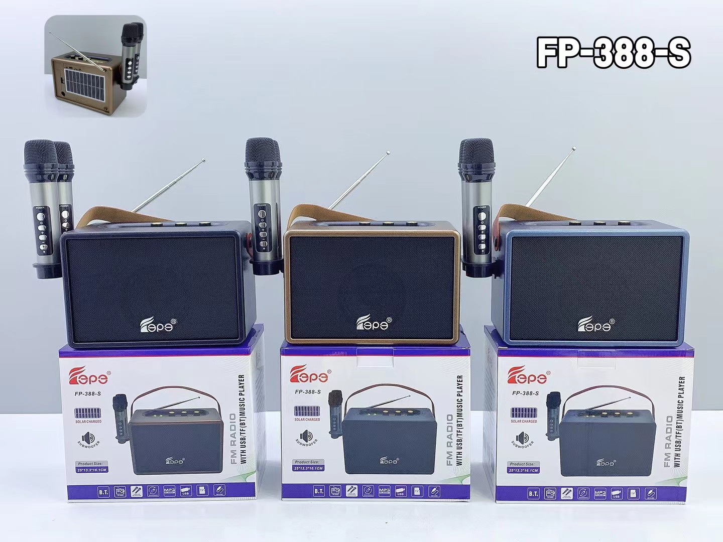 FP-388-S 跨境复古蓝牙音响手提太阳能收音机家庭无线双麦克风KTV