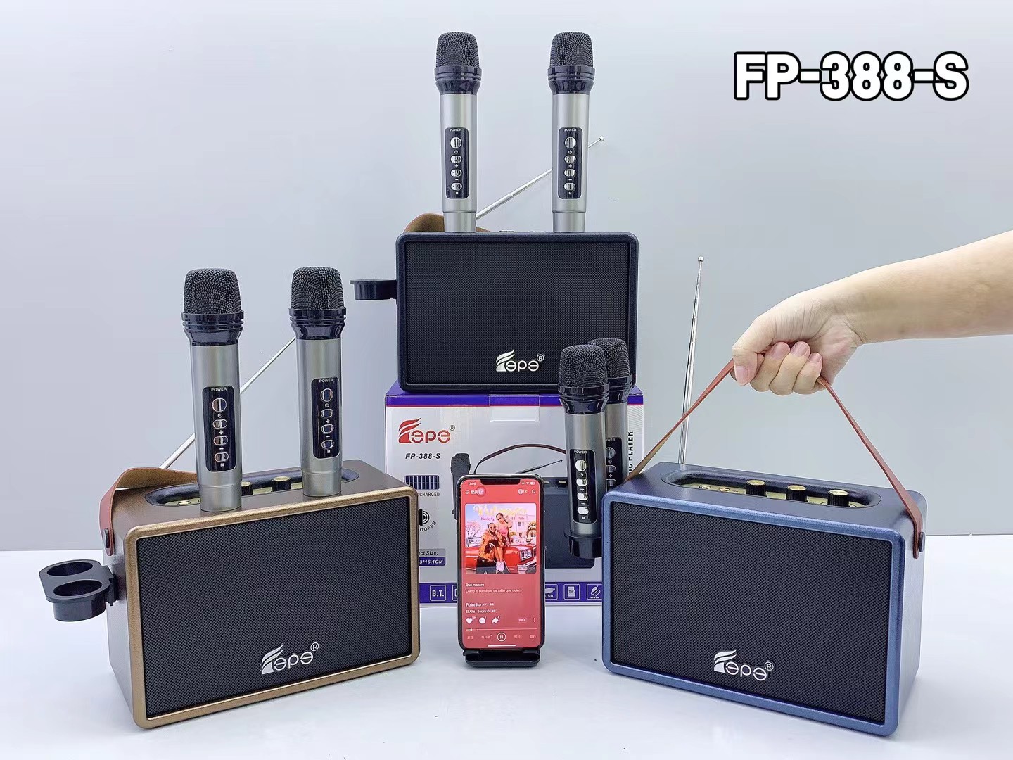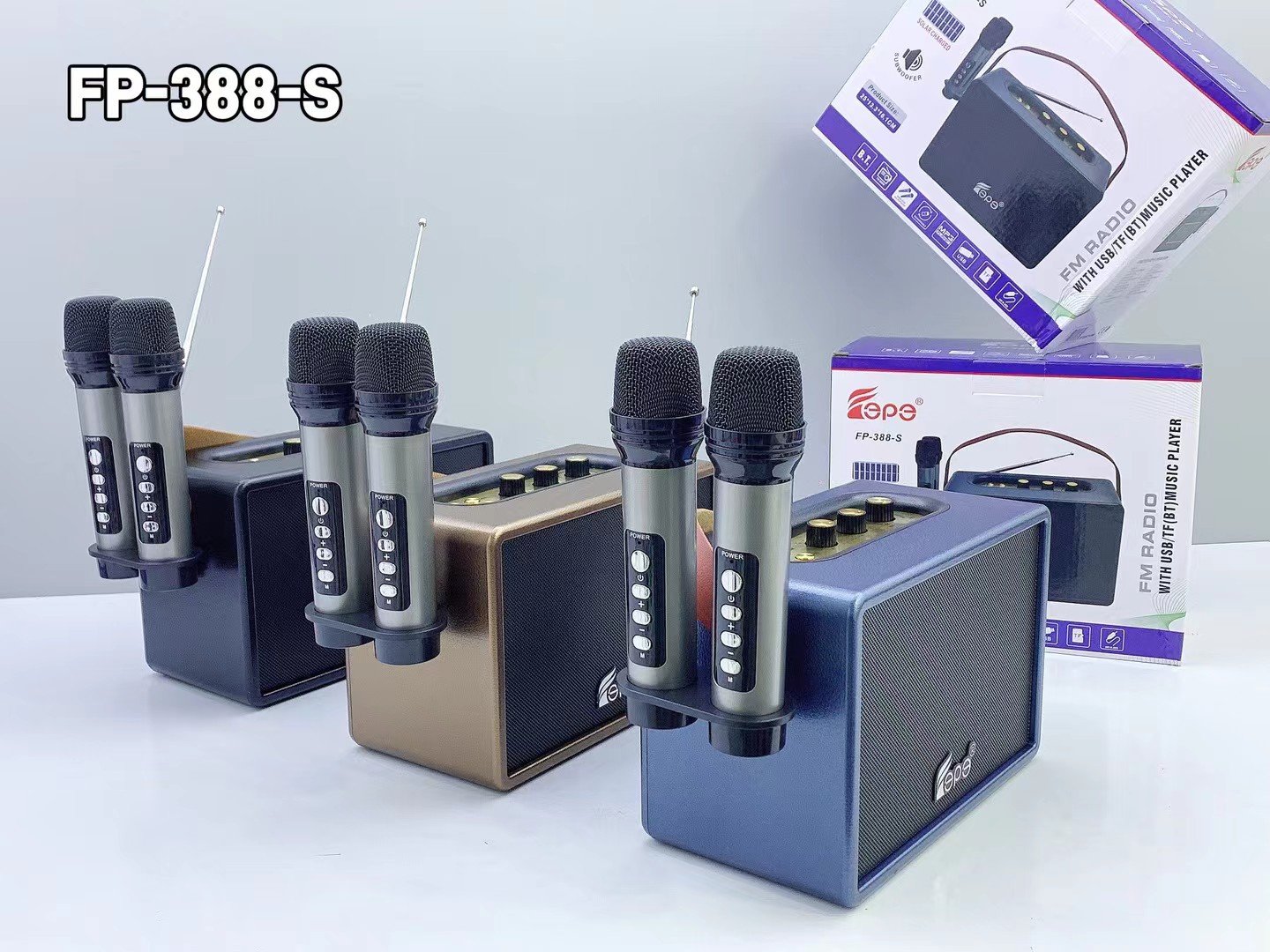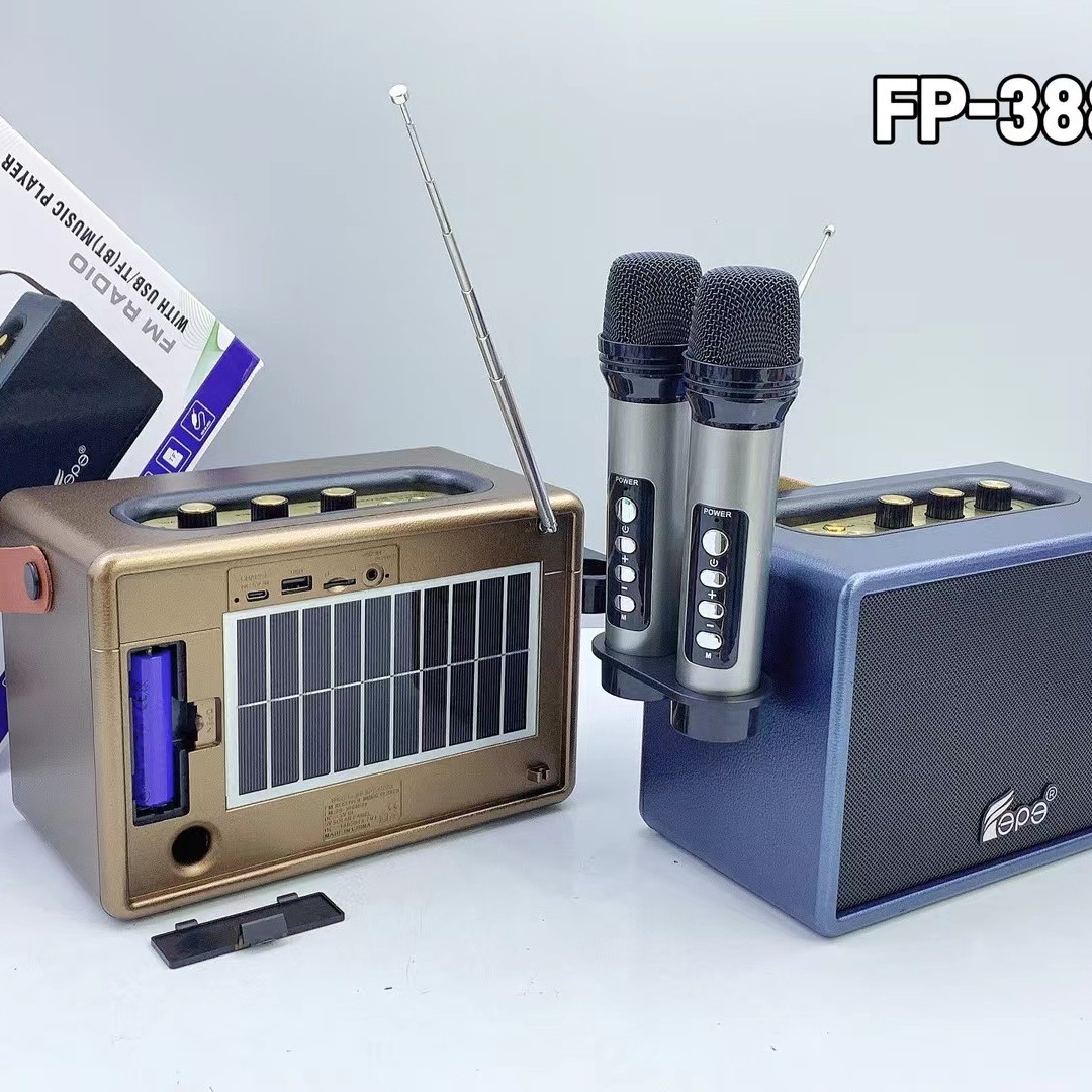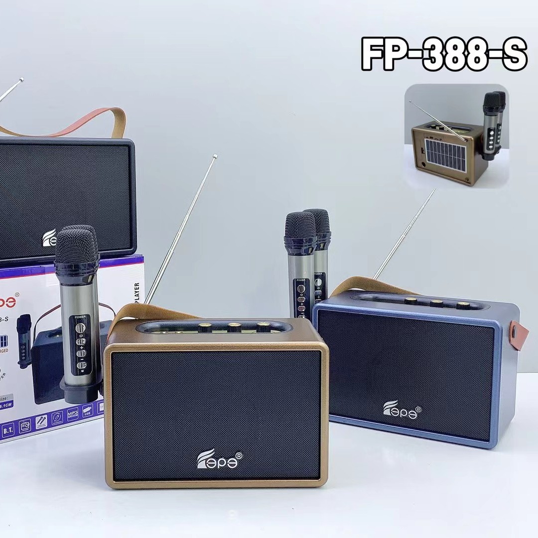 FP-388-S 跨境复古蓝牙音响手提太阳能收音机家庭无线双麦克风KTV