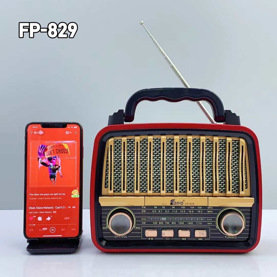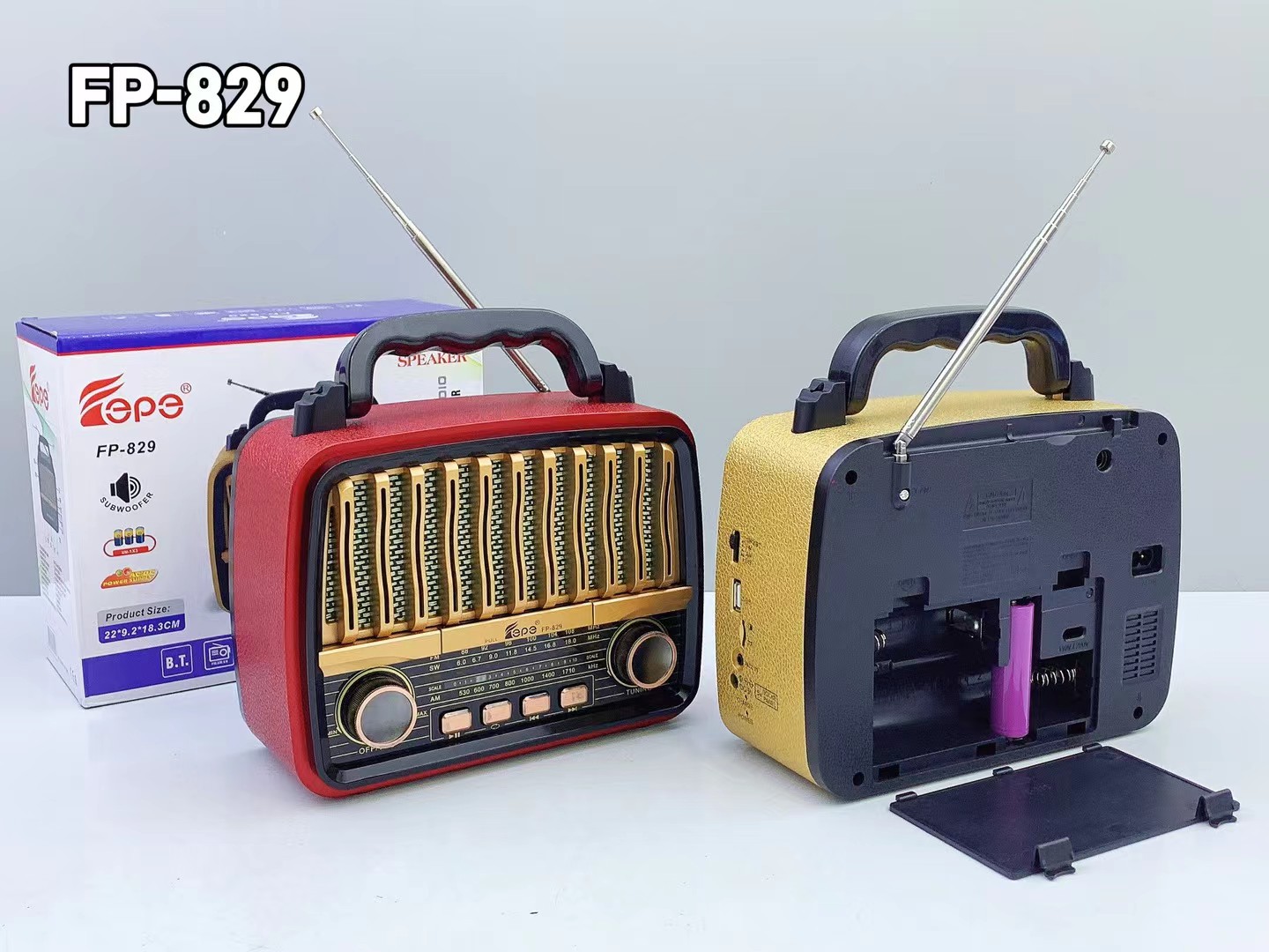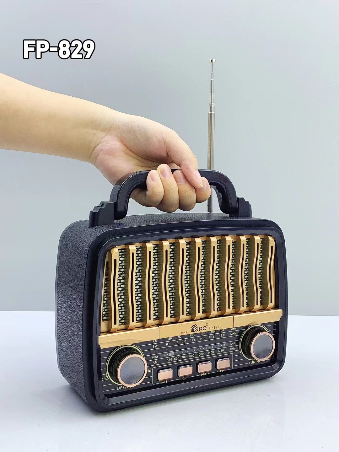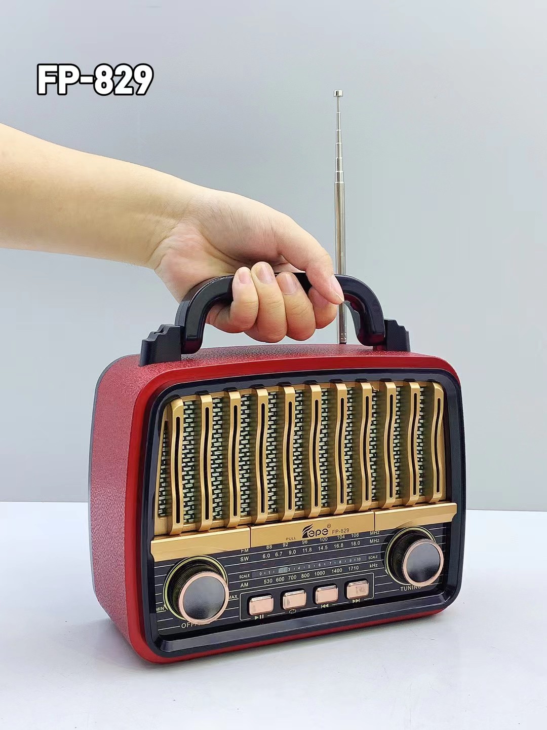 FP-829跨境复古手提蓝牙插卡音箱便携式带天线收音机外置电池音响
