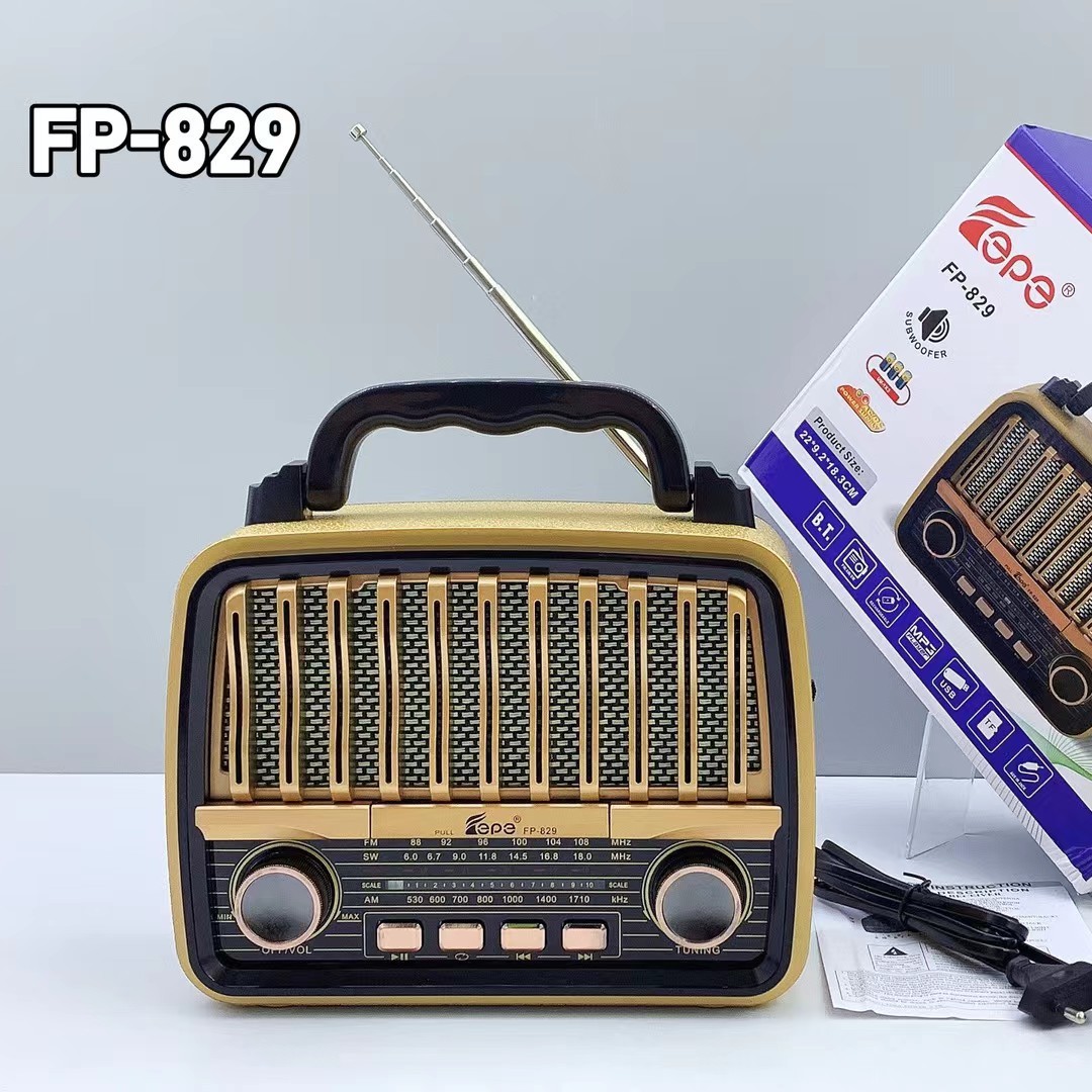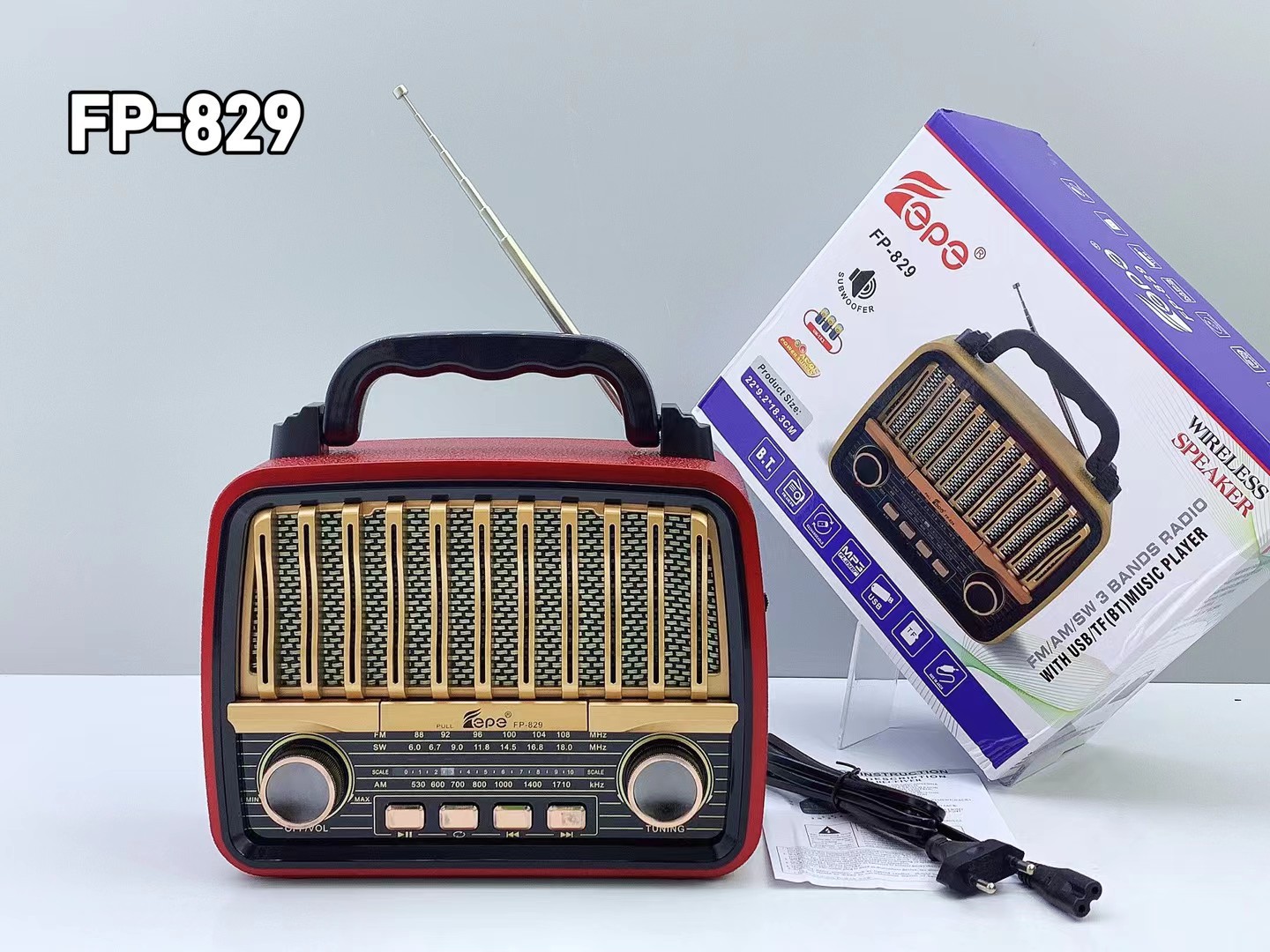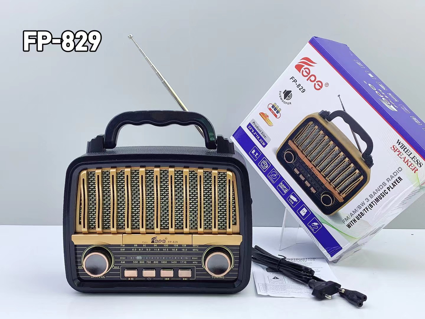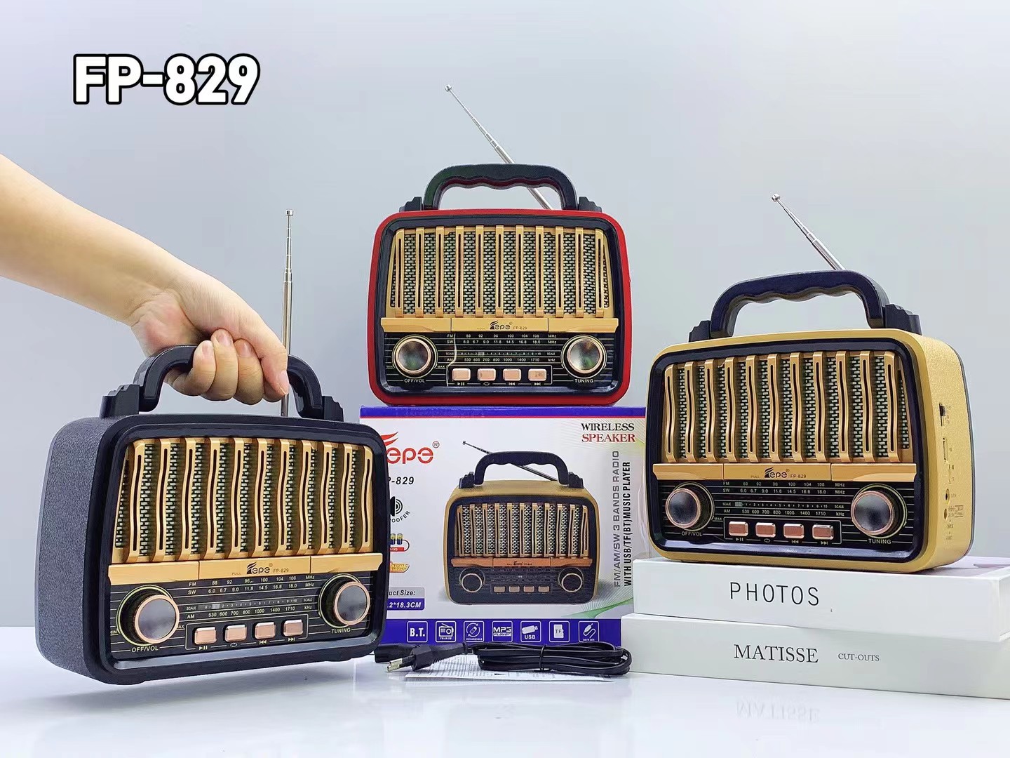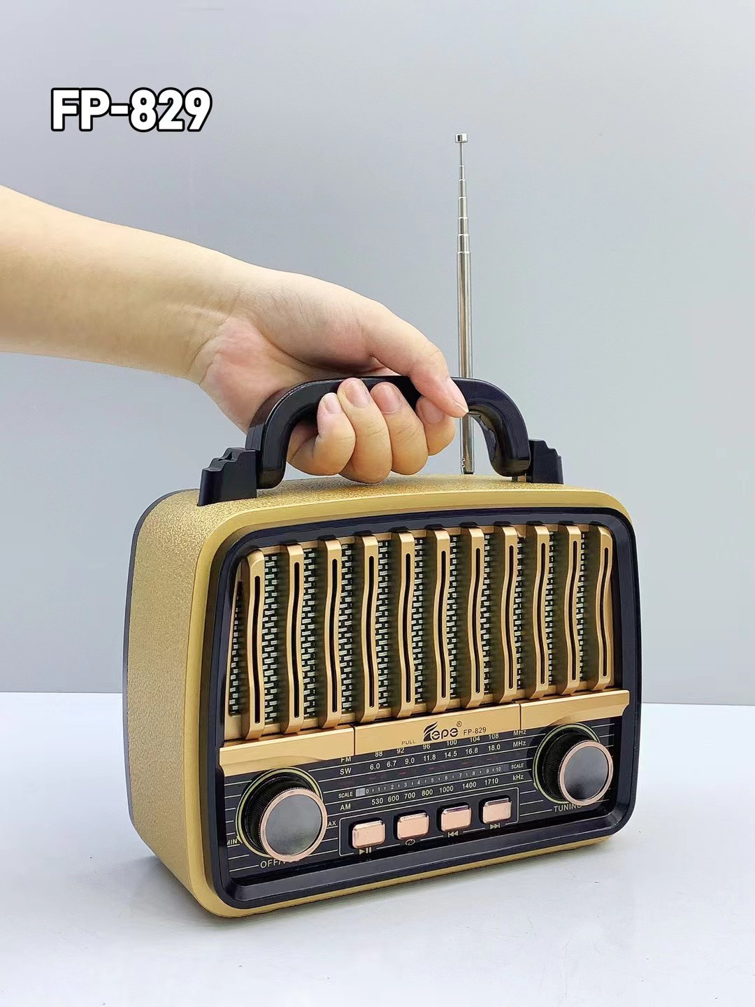 FP-829跨境复古手提蓝牙插卡音箱便携式带天线收音机外置电池音响