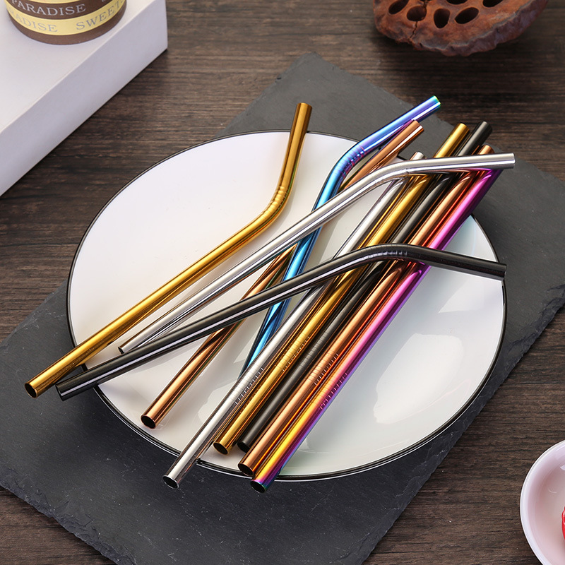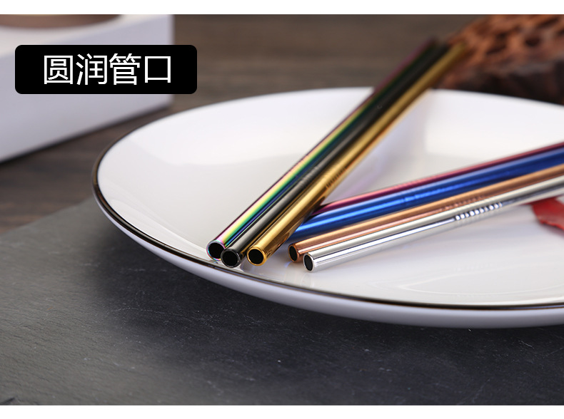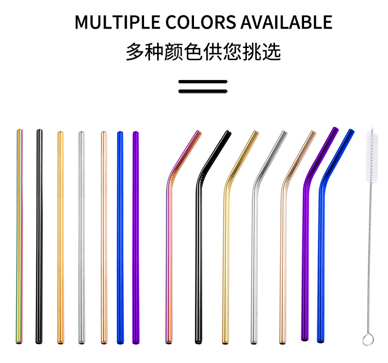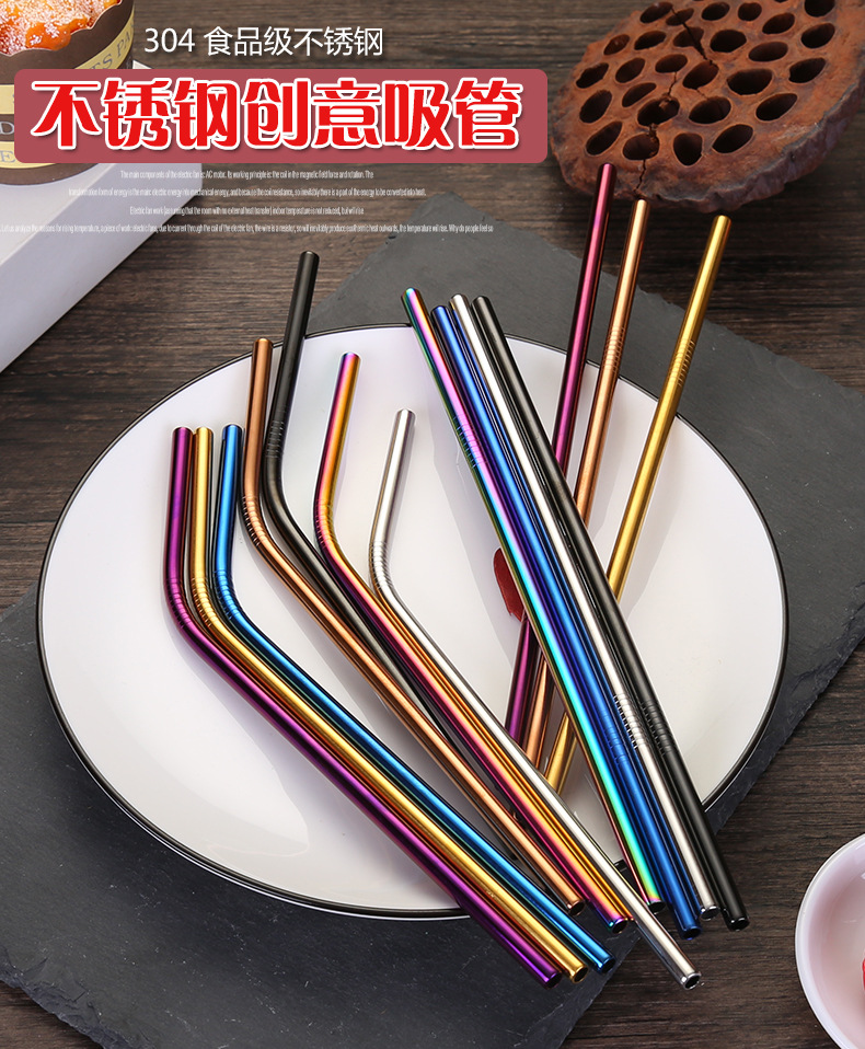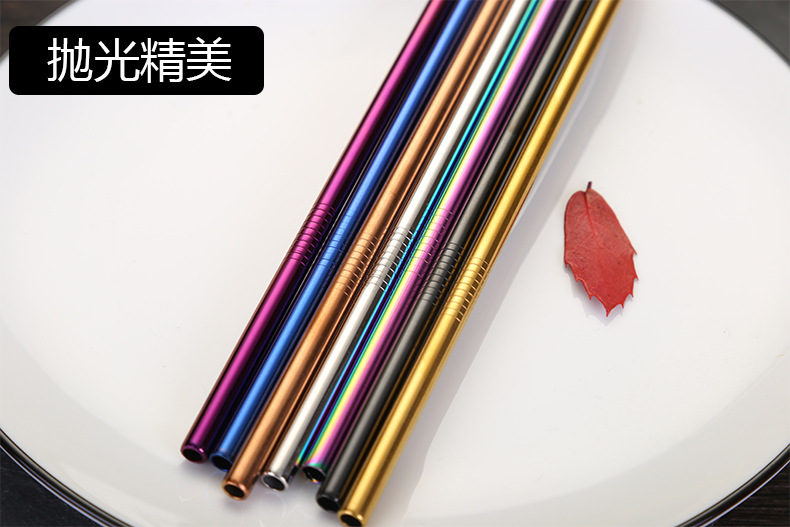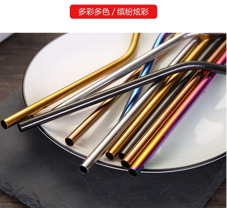 跨境亚马逊不锈钢吸管饮料奶茶咖啡彩色金属吸管套装可定logo