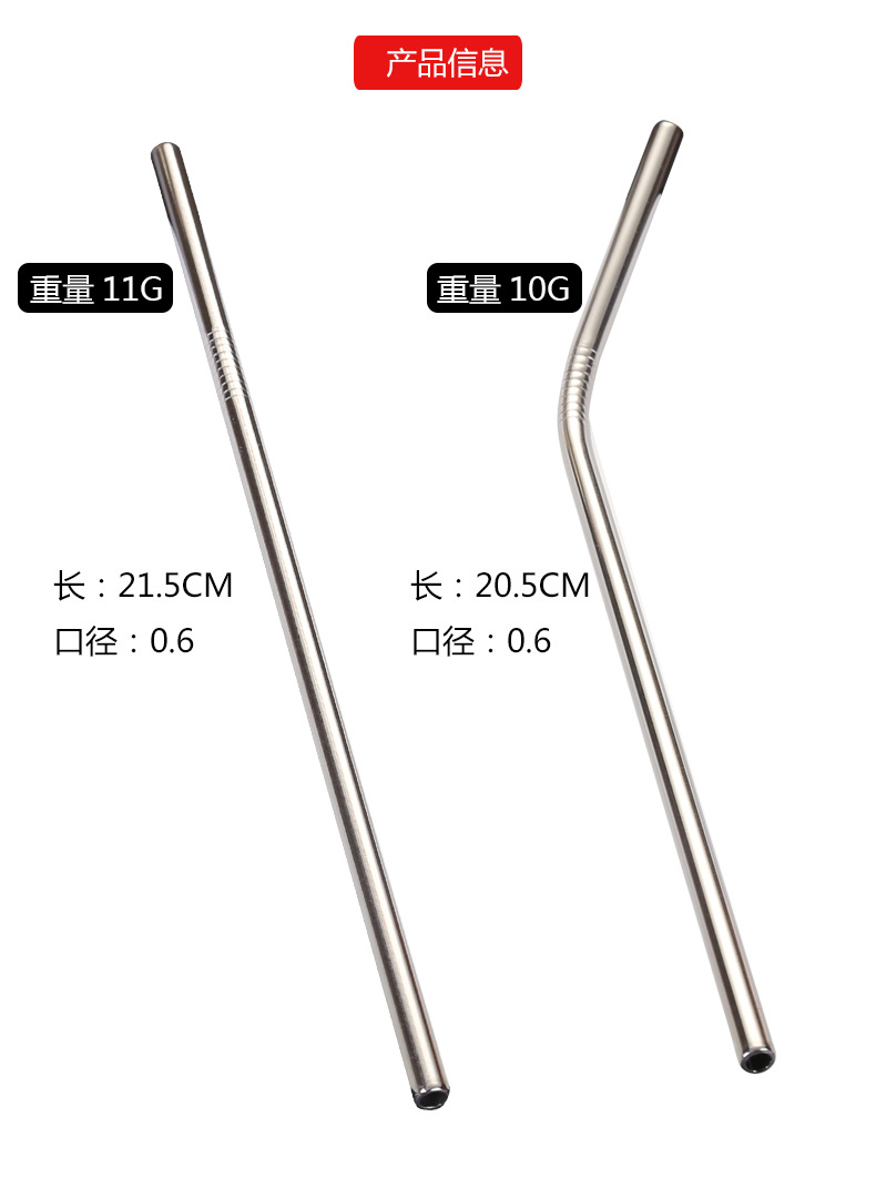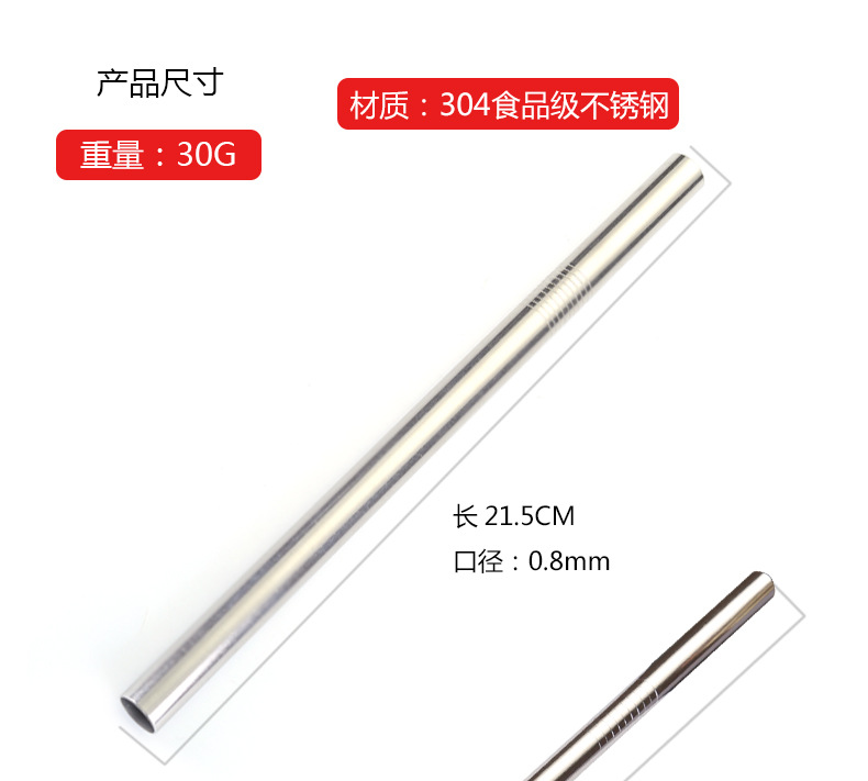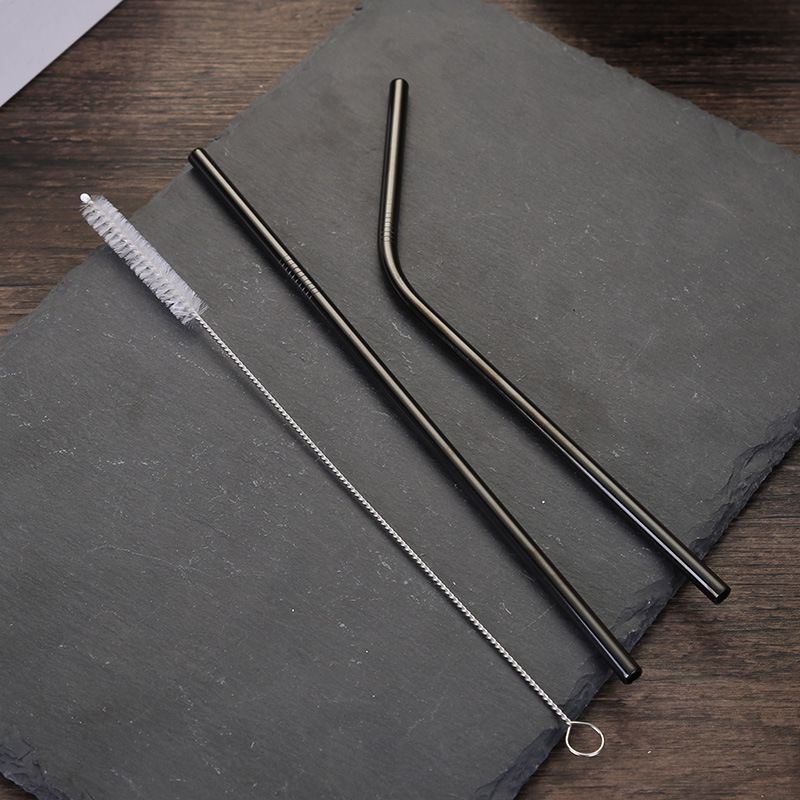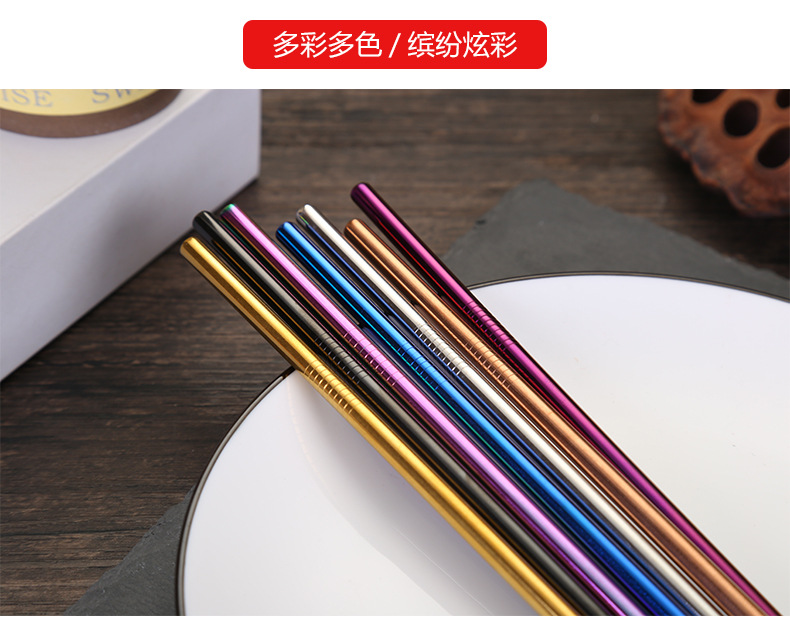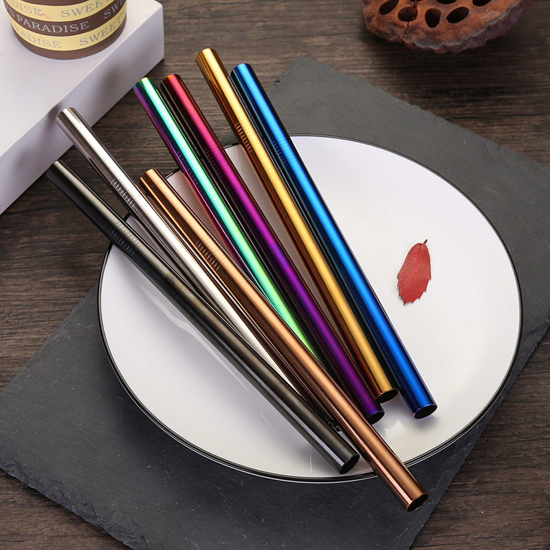 跨境亚马逊不锈钢吸管饮料奶茶咖啡彩色金属吸管套装可定logo