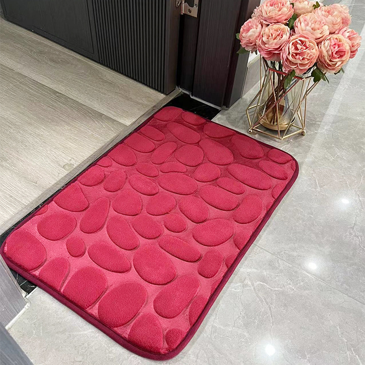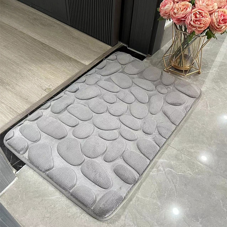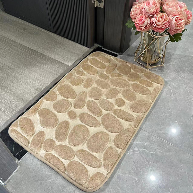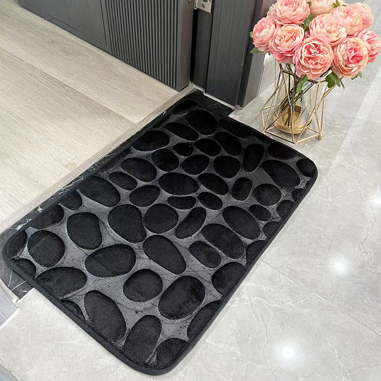 法兰绒压花地毯地垫卫生间吸水鹅卵石门垫浴室门口脚垫入户浴室垫
