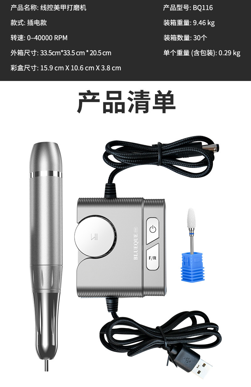 工厂严选 空心杯美甲打磨机低噪音不震手便携指甲抛光卸甲器插电