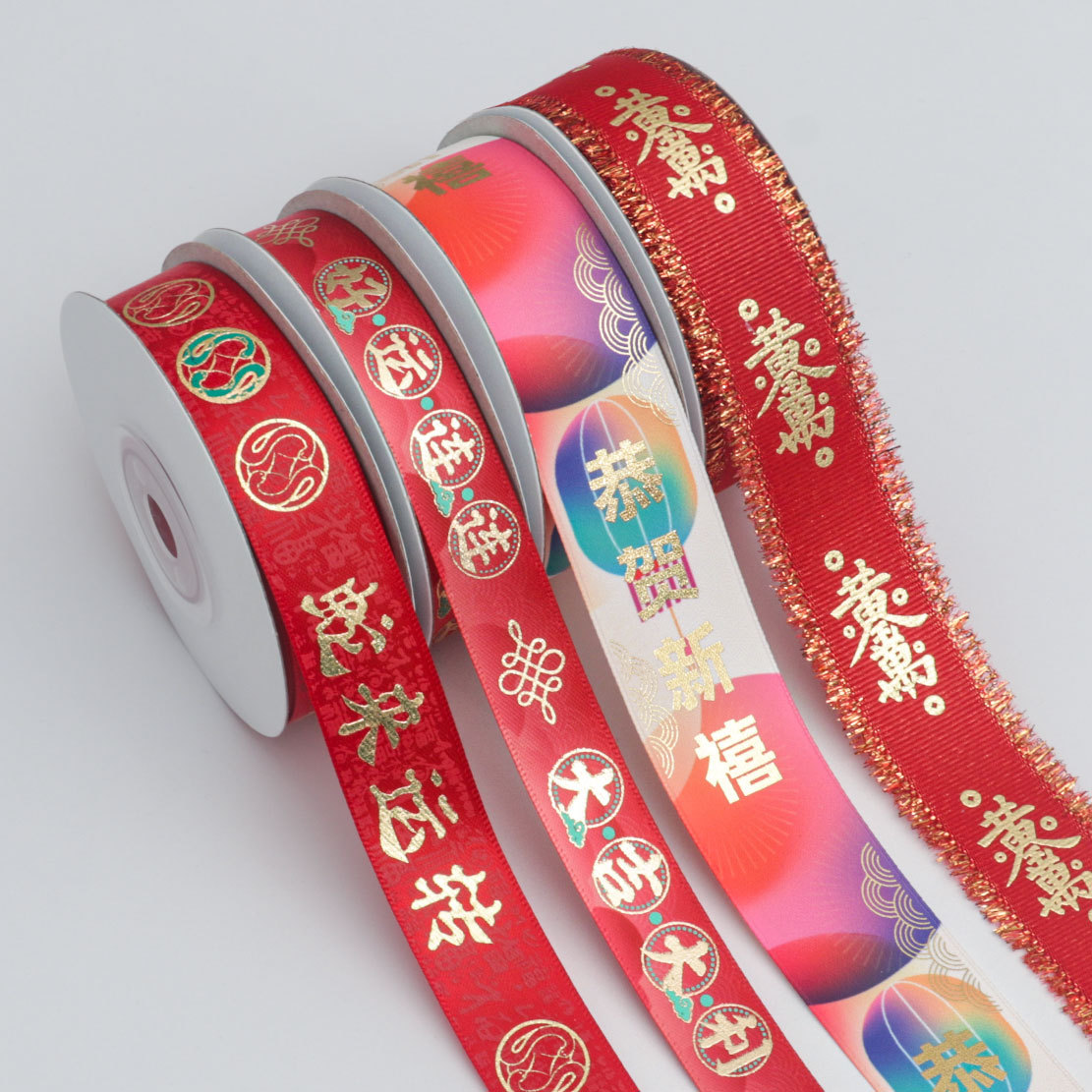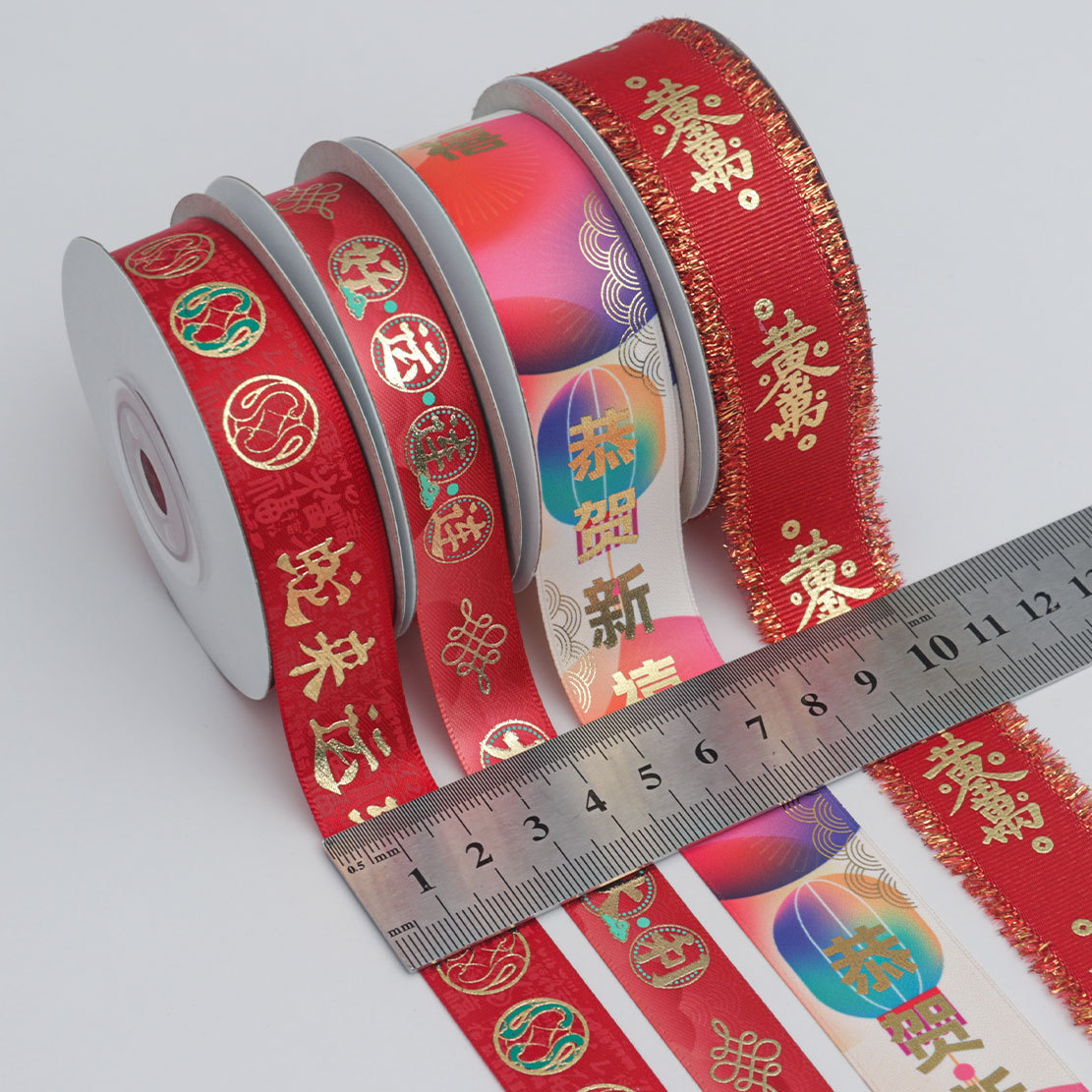 2025蛇年新款涤纶丝带 节庆假日装饰彩带缎带DIY新年礼物包装织带