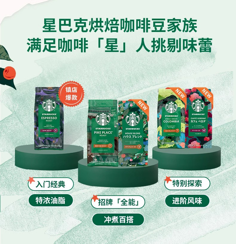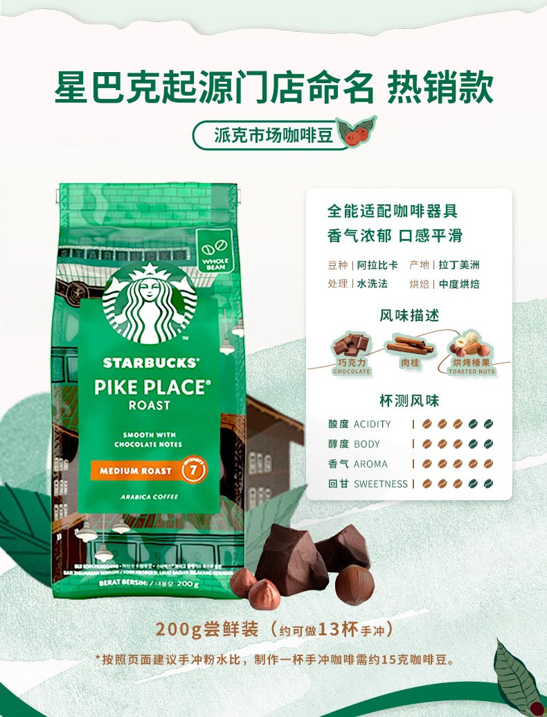 星巴克咖啡豆 派克市场门店同款阿拉比卡咖啡豆200g