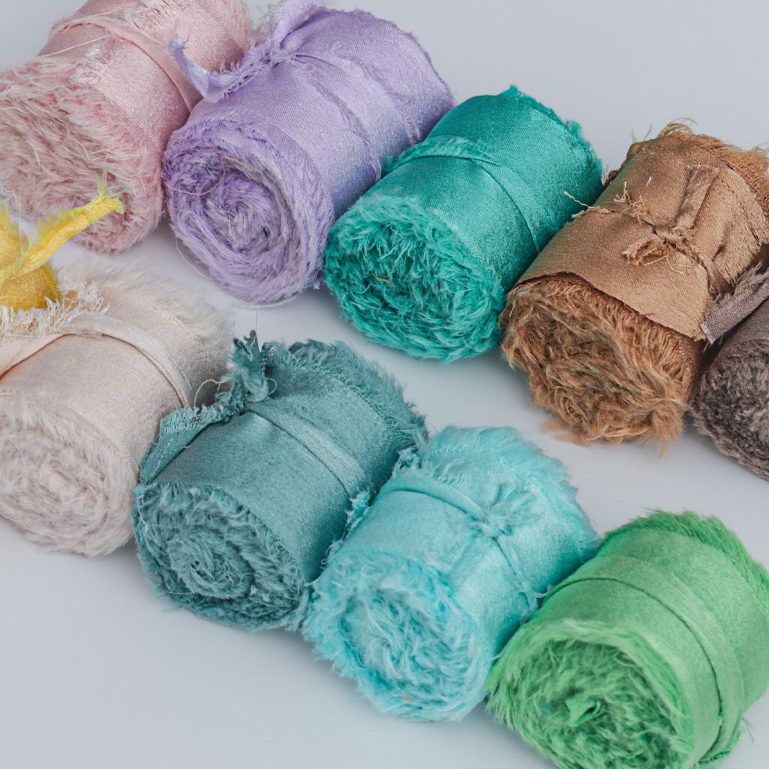 ins色丁仿真丝手撕毛边丝带婚礼贺卡花束绑带毛须边织带流苏布条