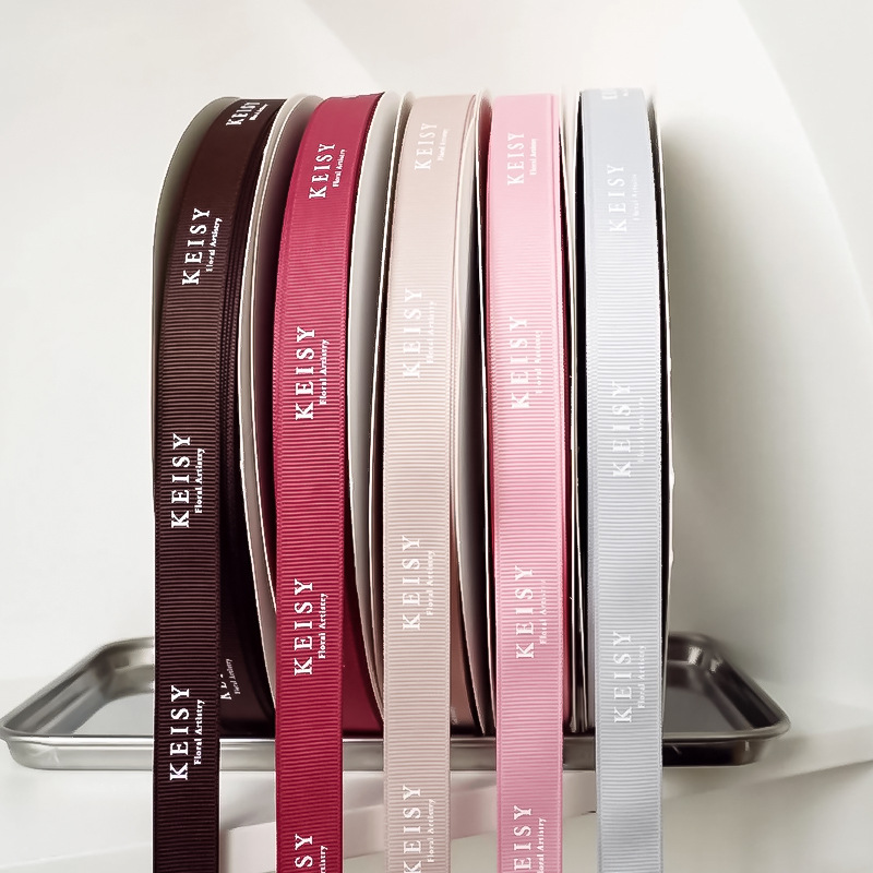 10卷起订做不同颜色丝带印刷蛋糕花店绑带彩带涤纶缎带螺罗纹织带