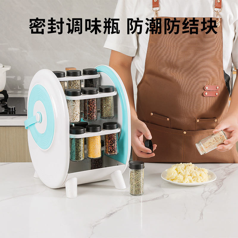 旋转摩天轮玻璃调味架套装厨房置物架调料架调味瓶调料罐香料罐