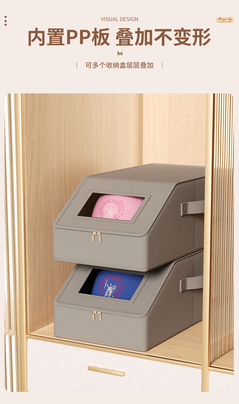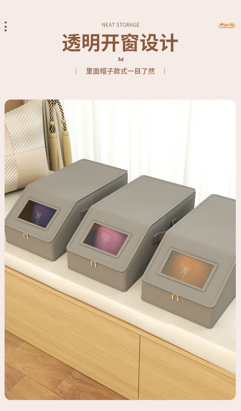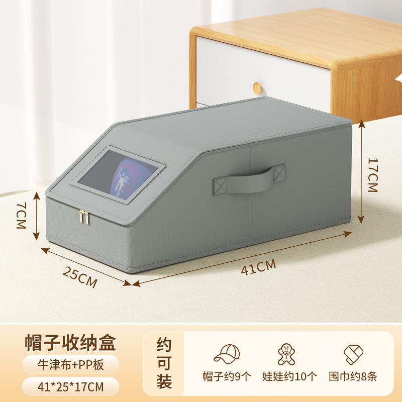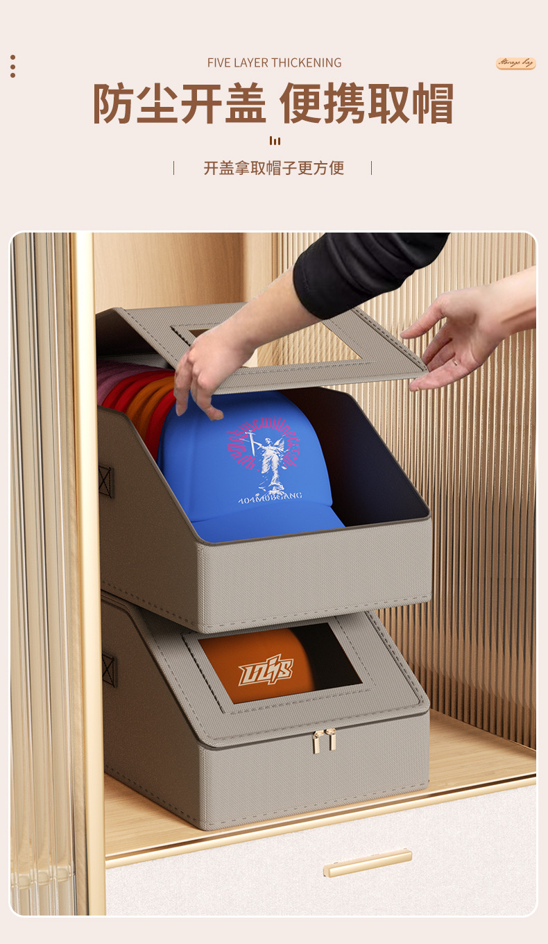 跨境牛津布帽子收纳盒拉链带盖防尘可视亚马逊可堆叠棒球帽储物盒