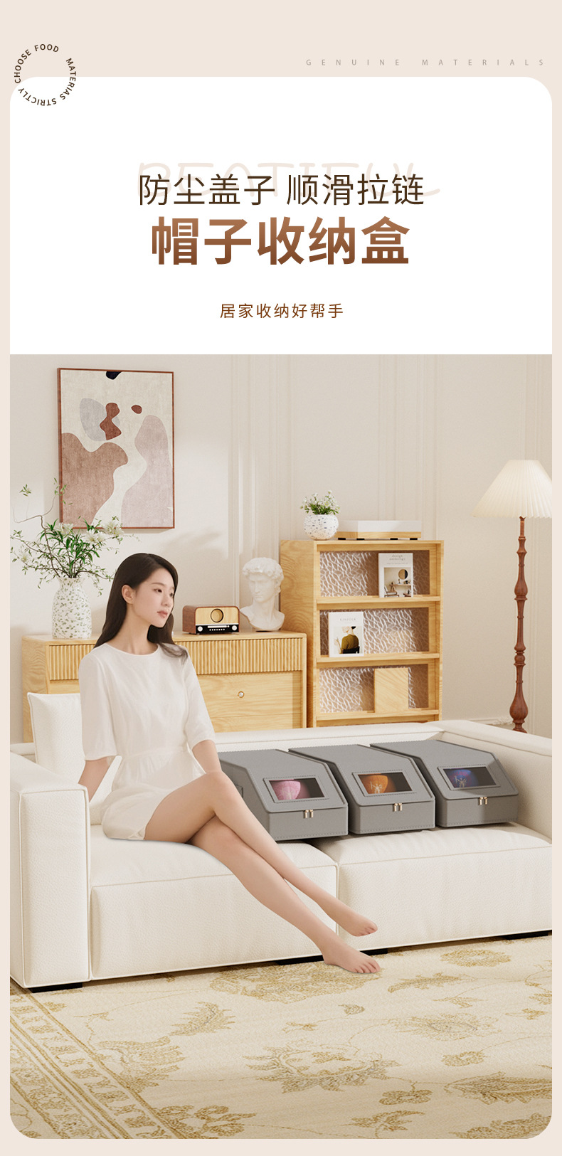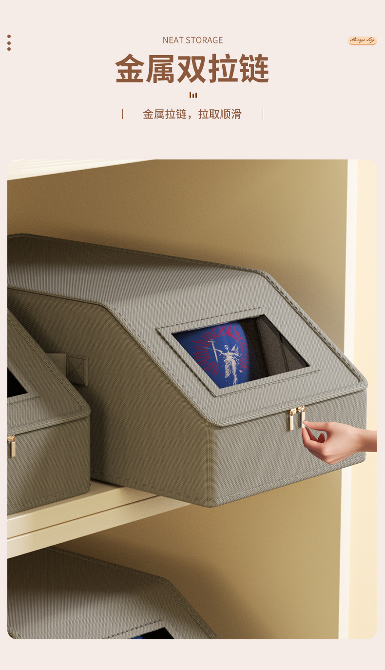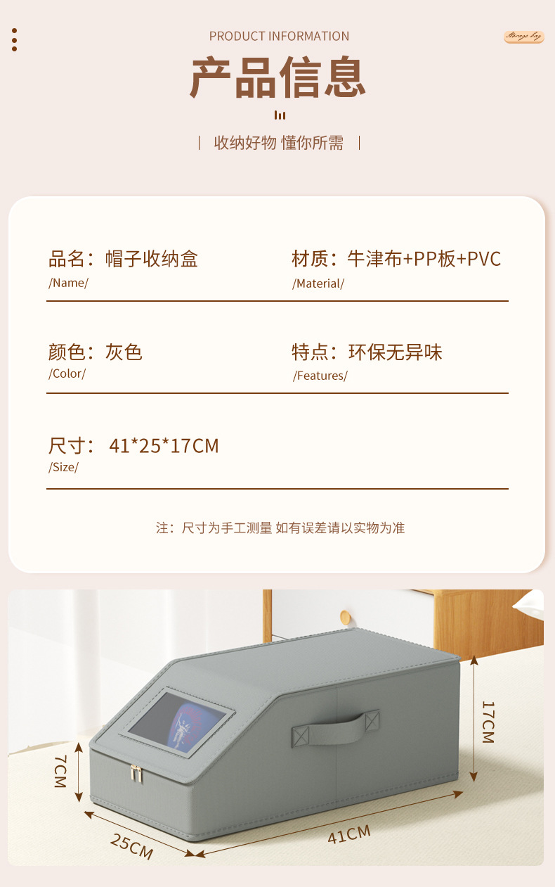 跨境牛津布帽子收纳盒拉链带盖防尘可视亚马逊可堆叠棒球帽储物盒