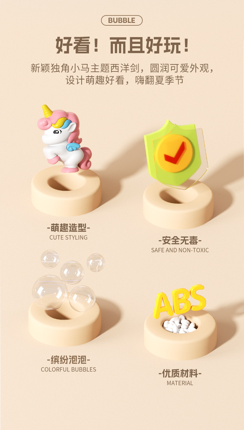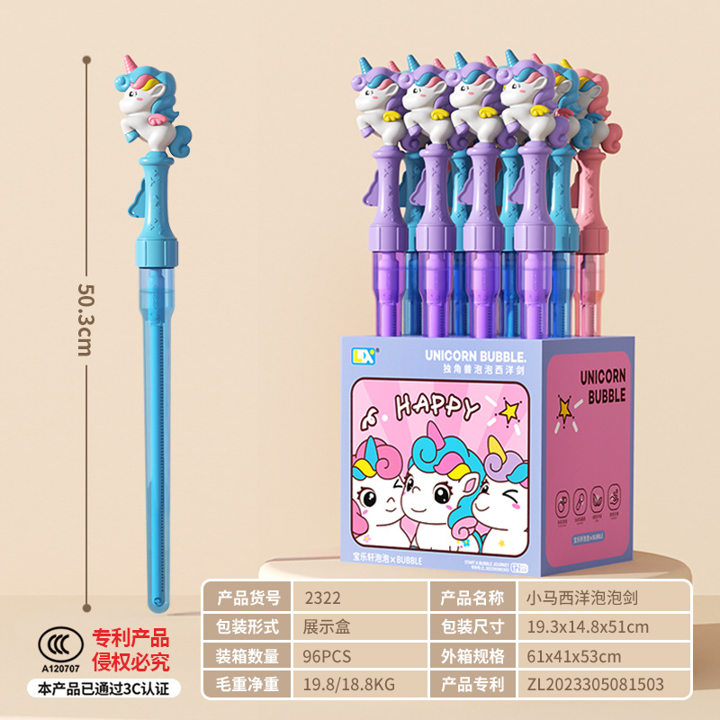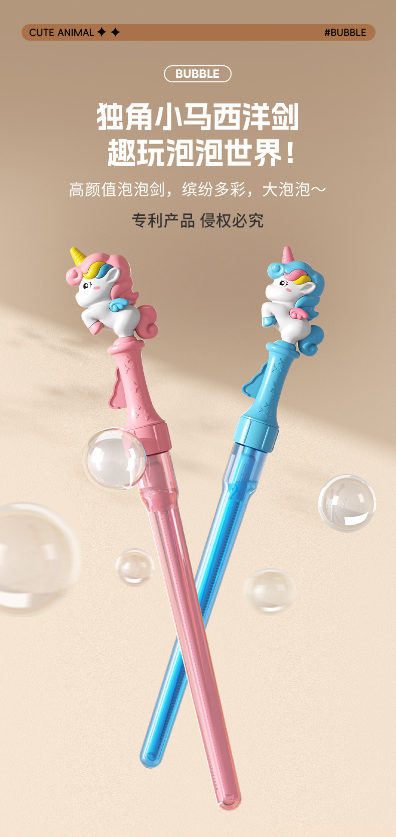 50cm卡通独角兽泡泡棒网红大号吹泡泡机玩具儿童西洋剑泡泡棒带水
