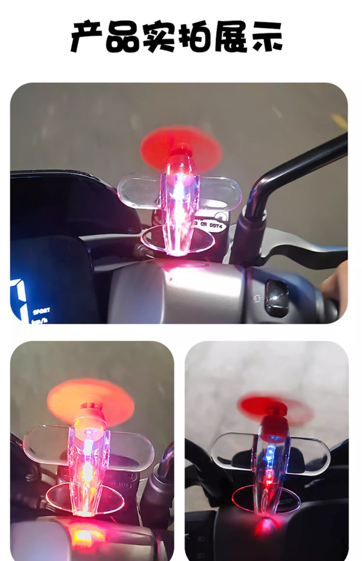 风能发光小飞机风力发电LED亮光彩灯车载摆件装饰品电动车摩托车