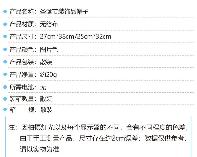 【名 称】无纺布圣诞帽子