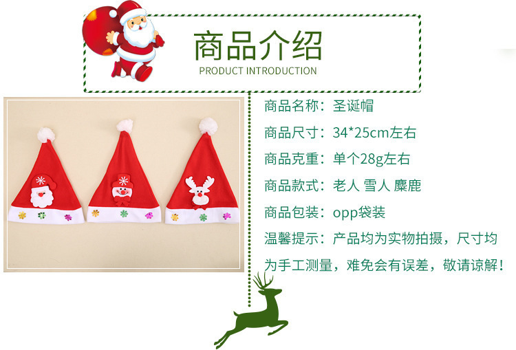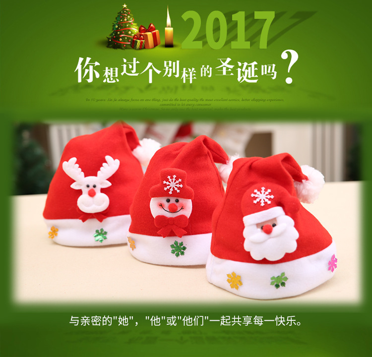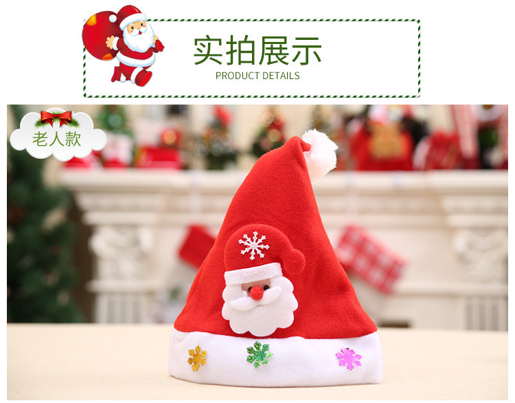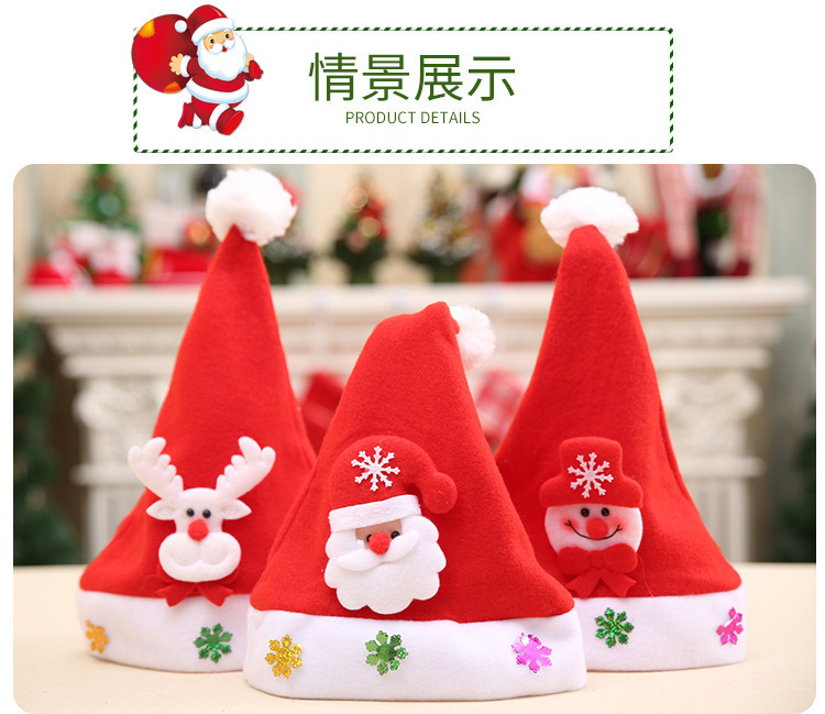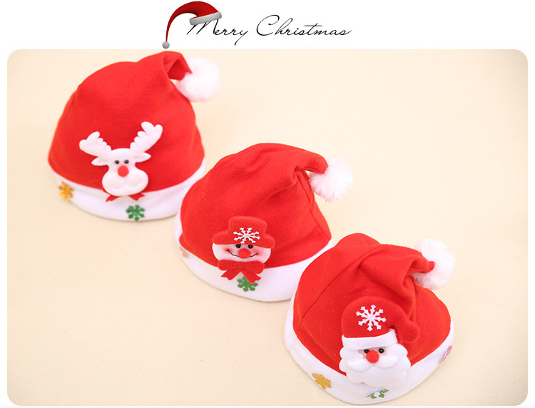 圣诞节装饰用品成人儿童发光贴花帽带灯圣诞娃娃帽红色帽子卡通帽