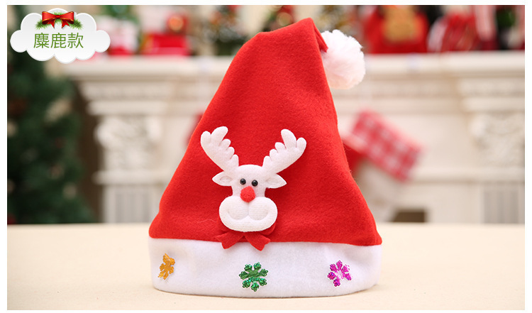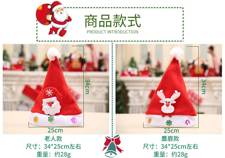 圣诞节装饰用品成人圣诞娃娃帽带灯圣诞帽红色帽子圣诞卡通帽