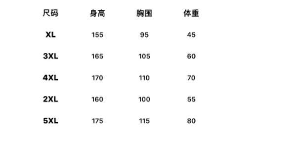 | 5XL(建议155斤-165斤) | USD $0.0 | 499 piece available |