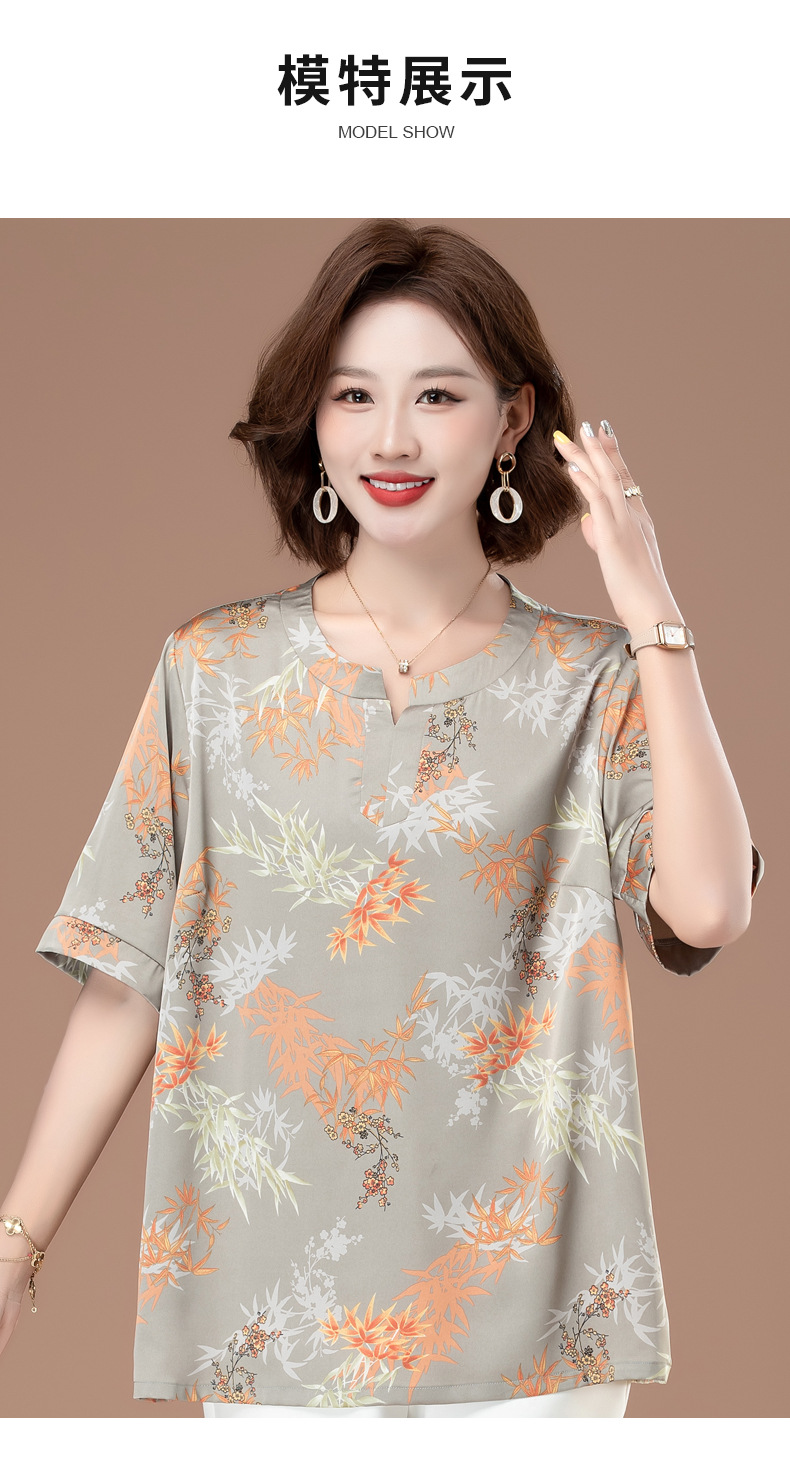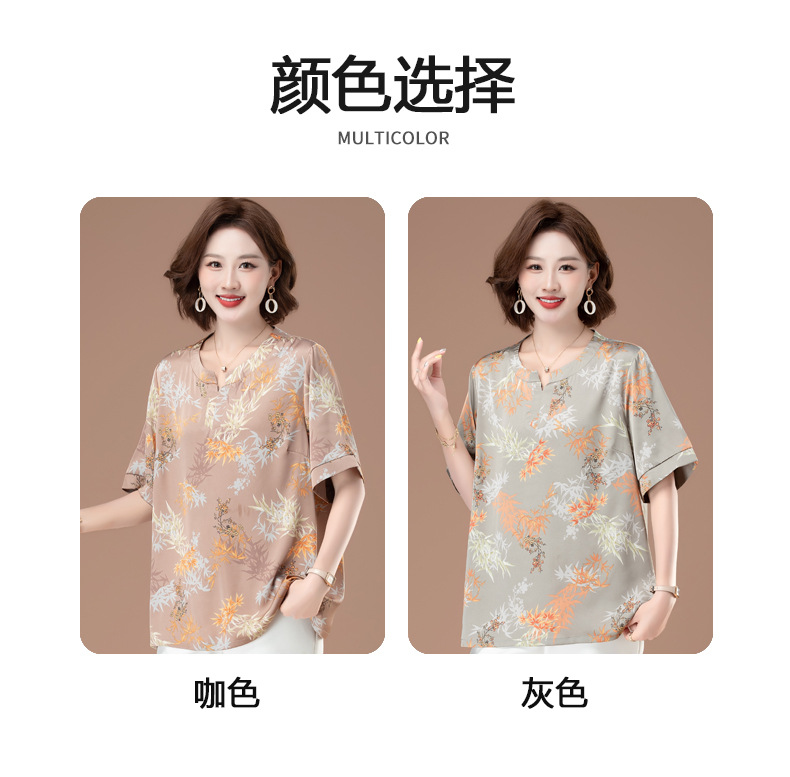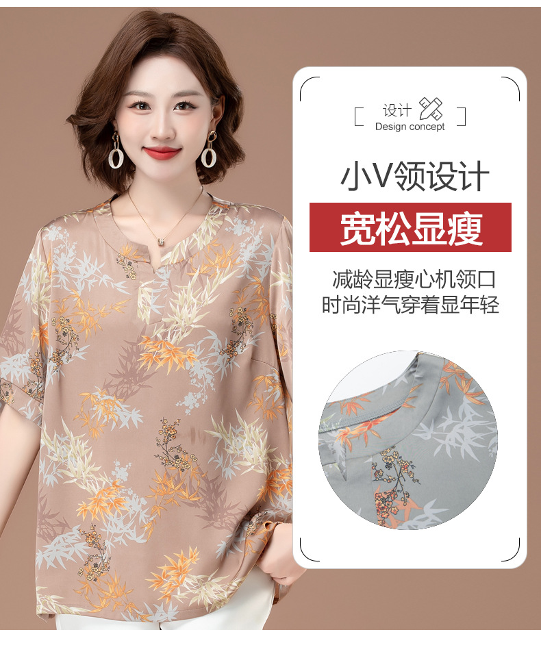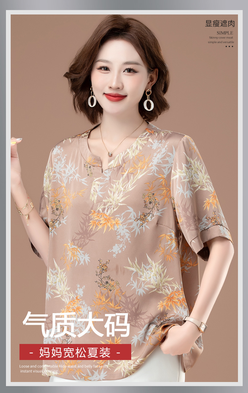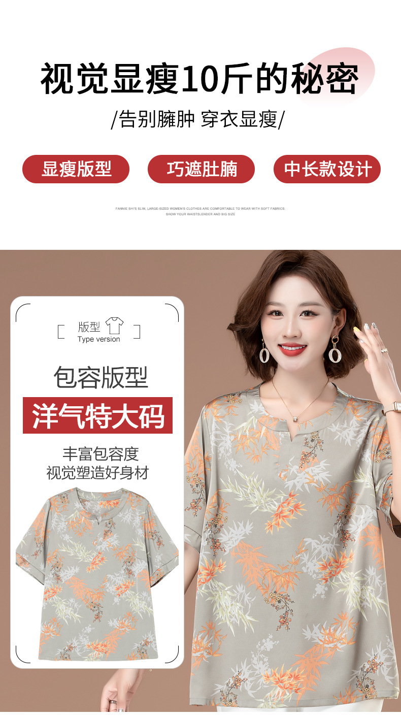 中老年妈妈夏装薄款冰丝短袖t恤女200斤宽松特大码遮肚上衣五分袖