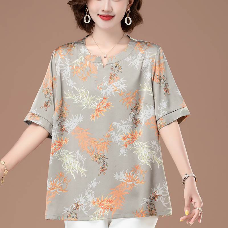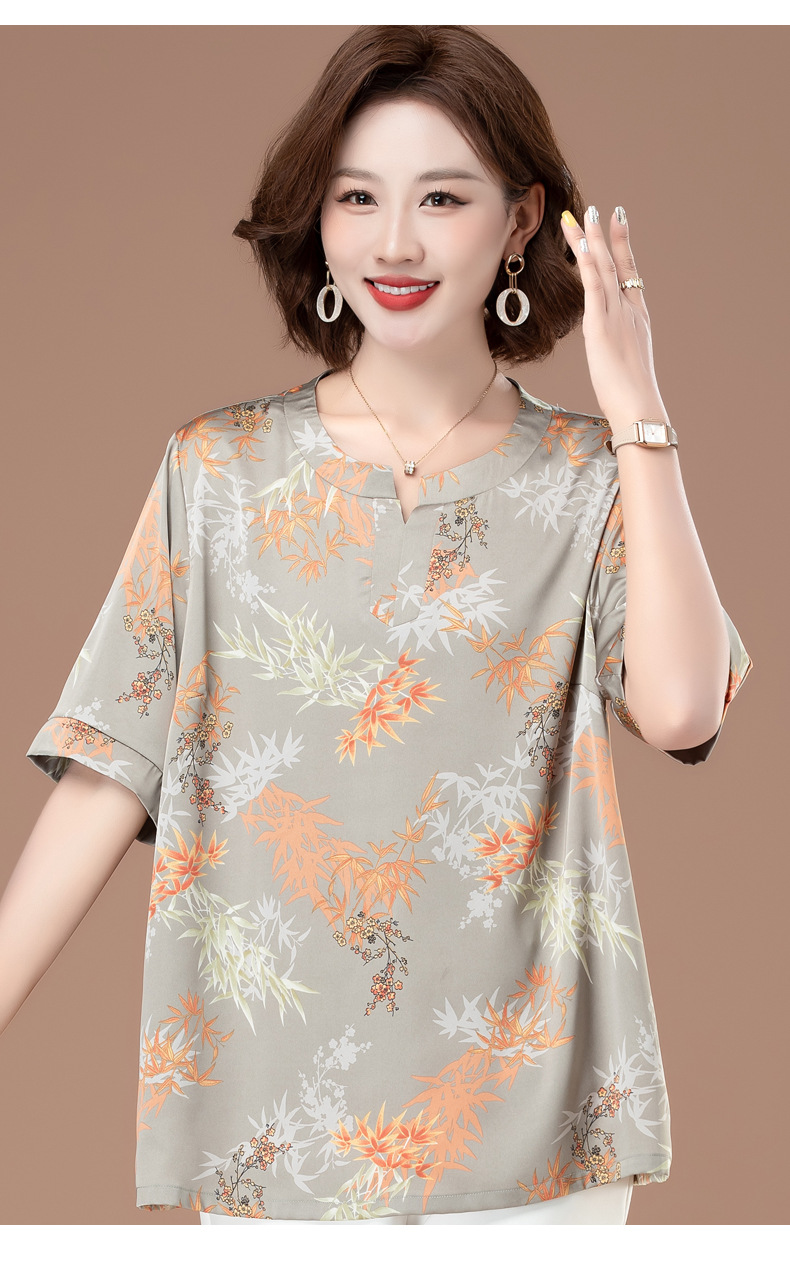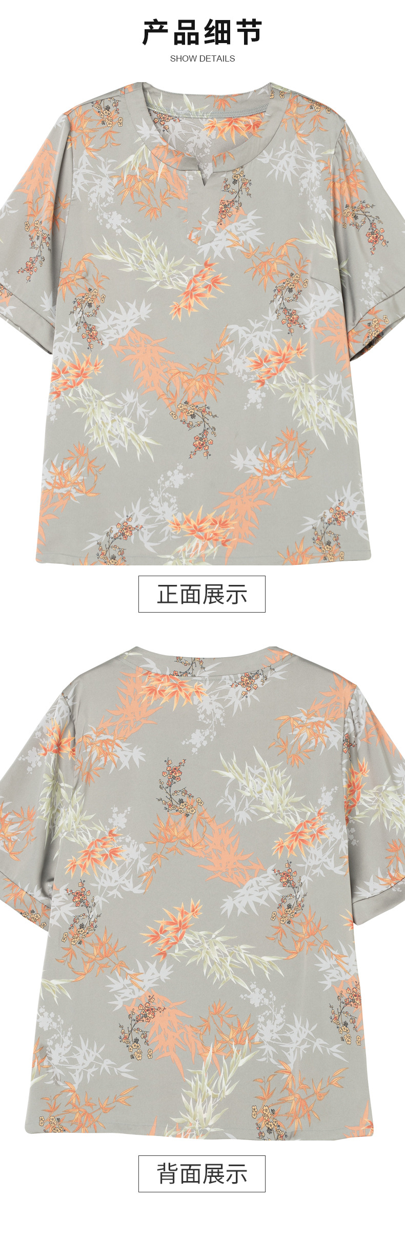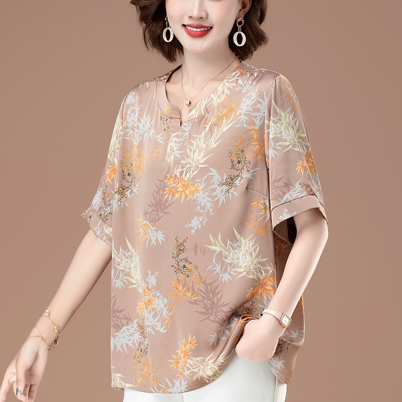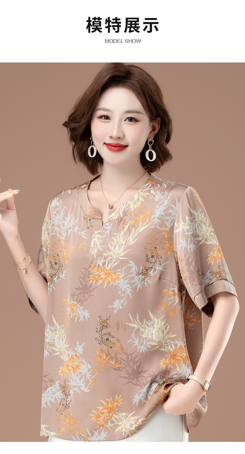 中老年妈妈夏装薄款冰丝短袖t恤女200斤宽松特大码遮肚上衣五分袖