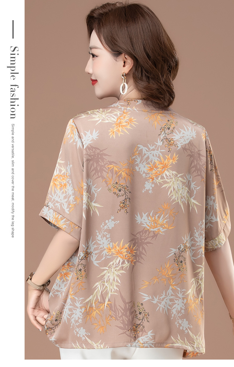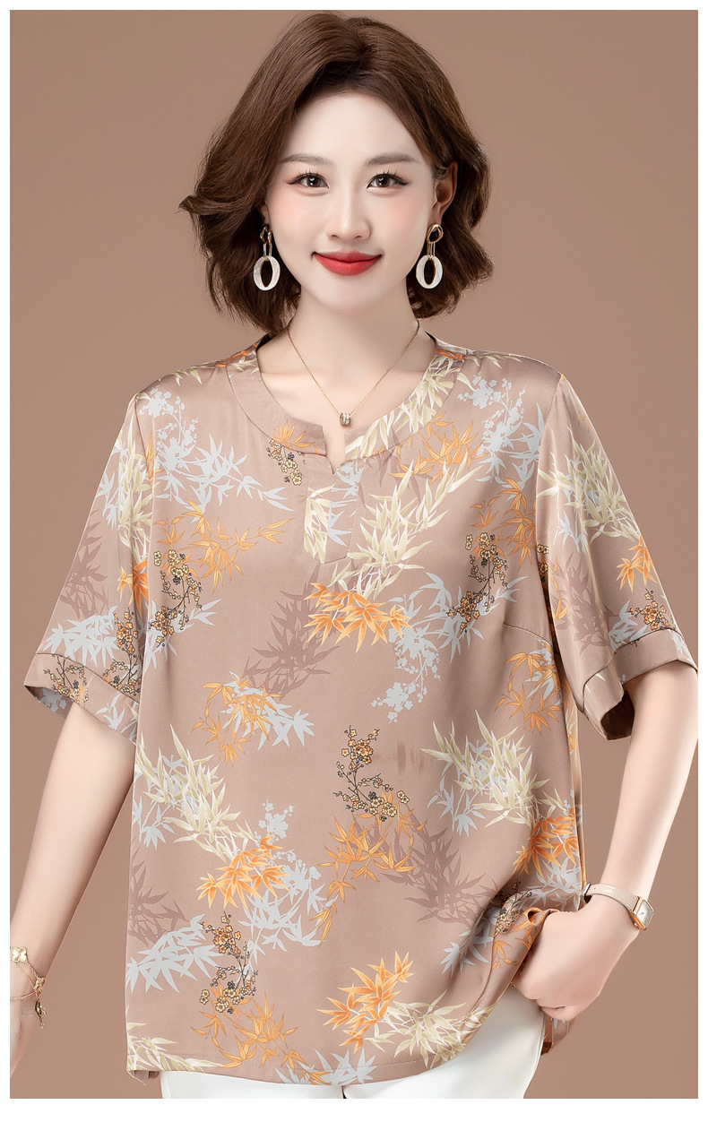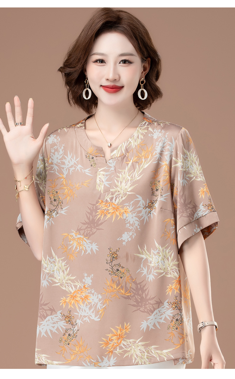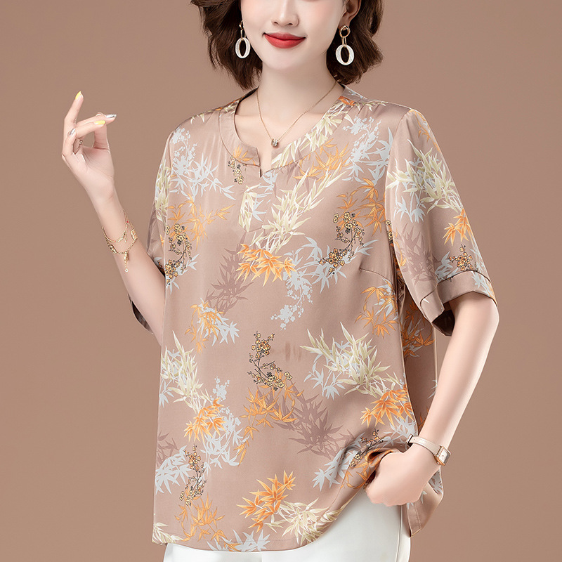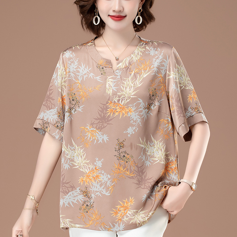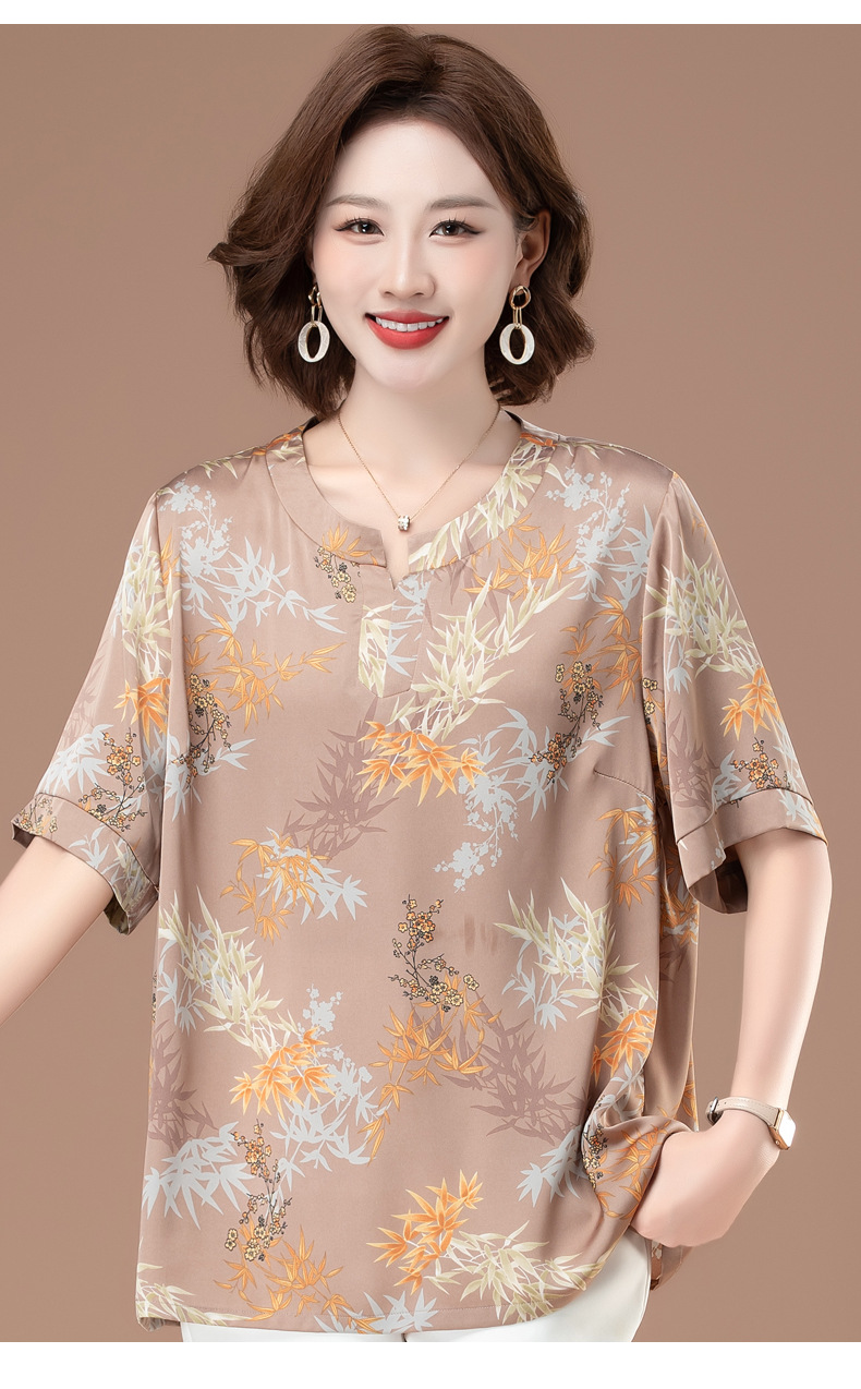 中老年妈妈夏装薄款冰丝短袖t恤女200斤宽松特大码遮肚上衣五分袖