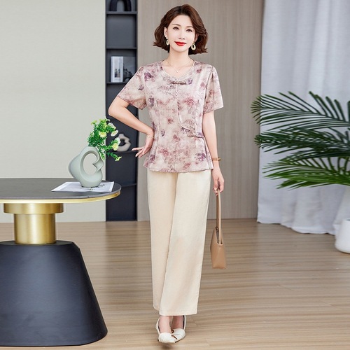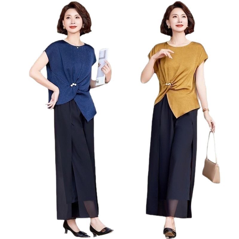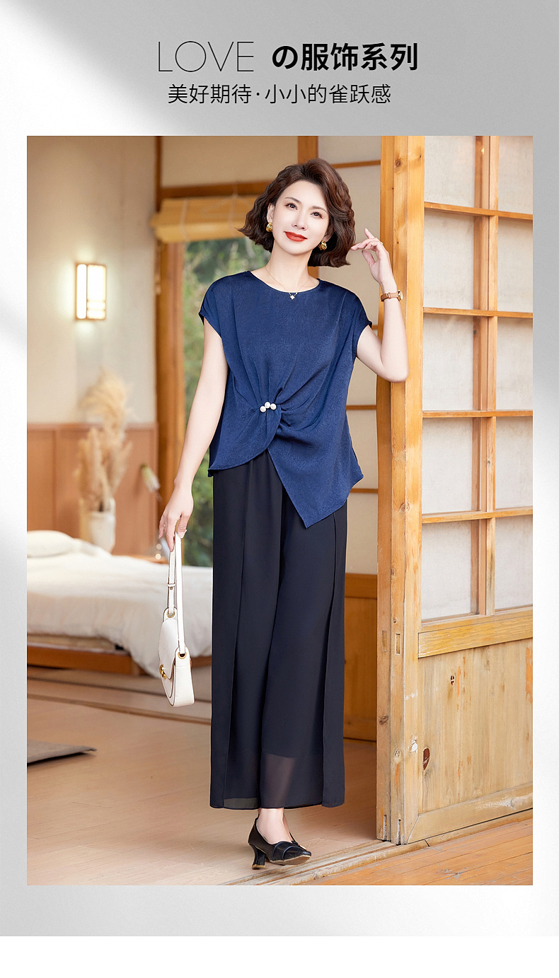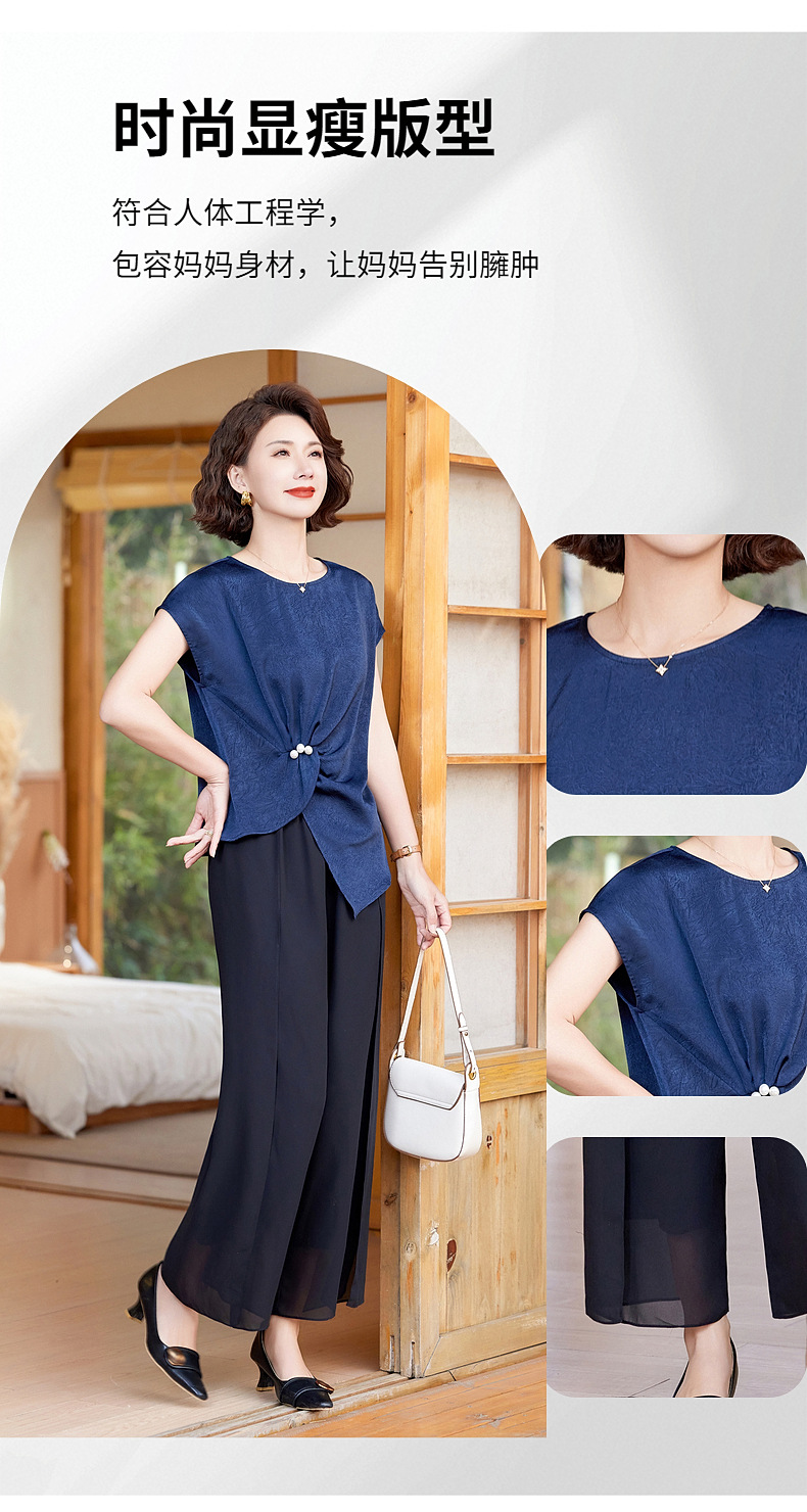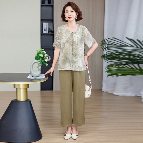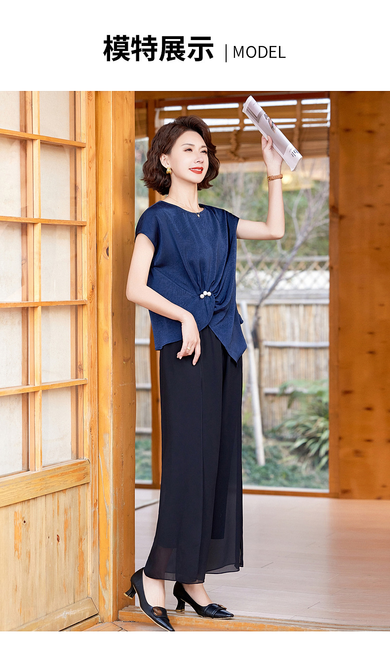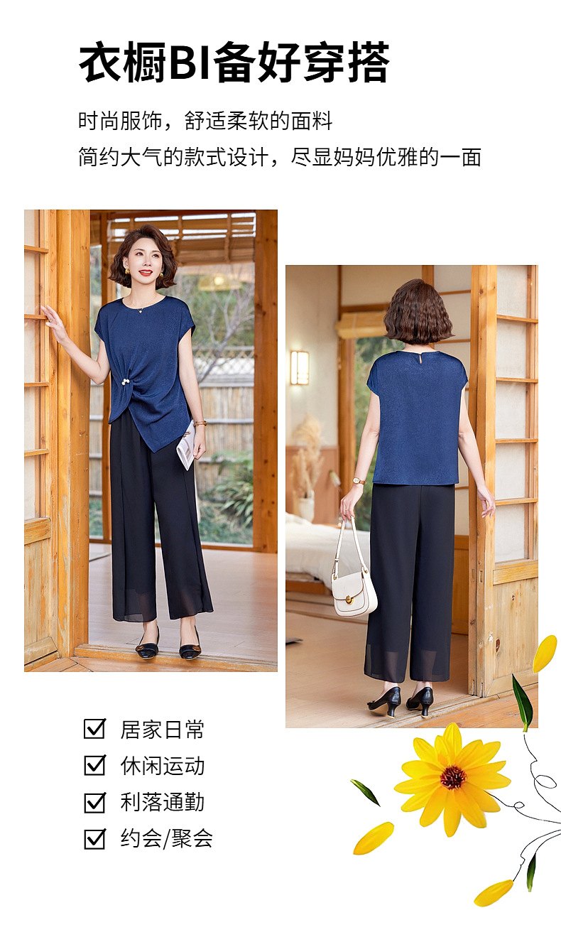 妈妈装夏季时尚套装洋气小衫中年女装夏季气质短袖百塔上衣两件套