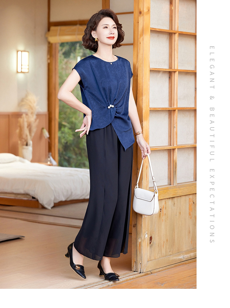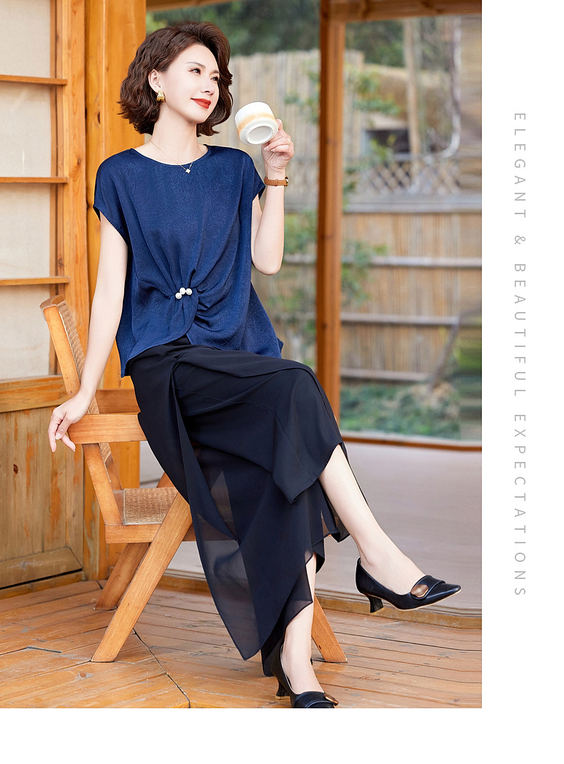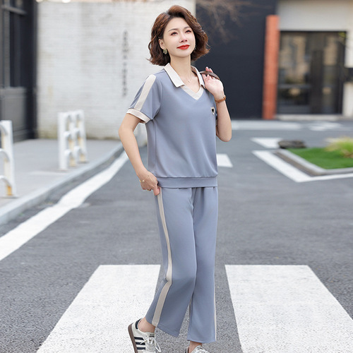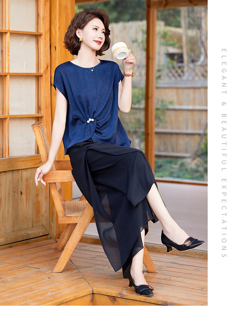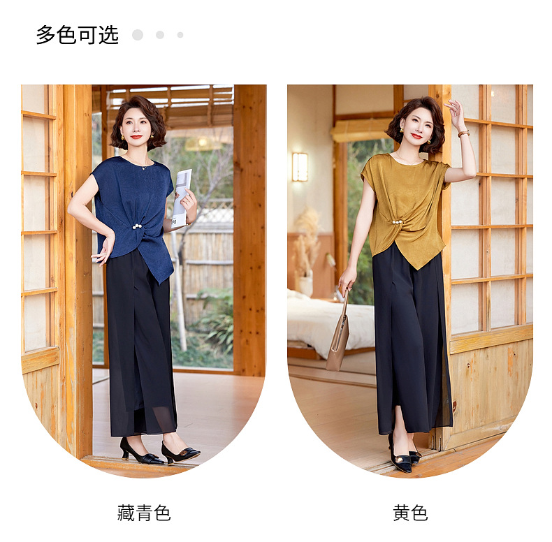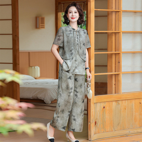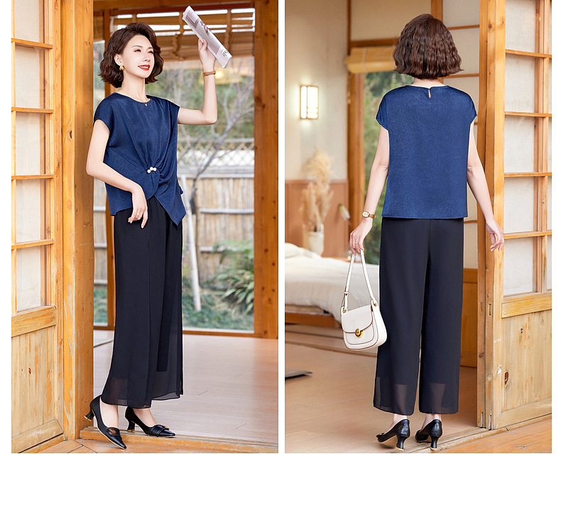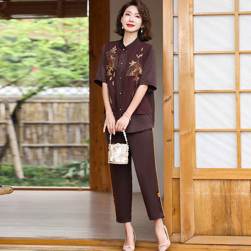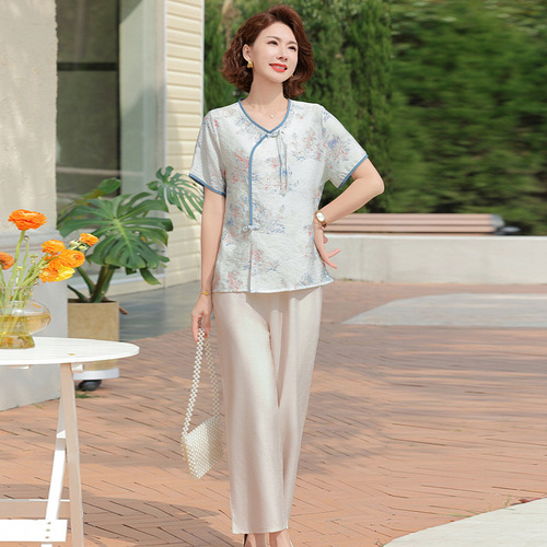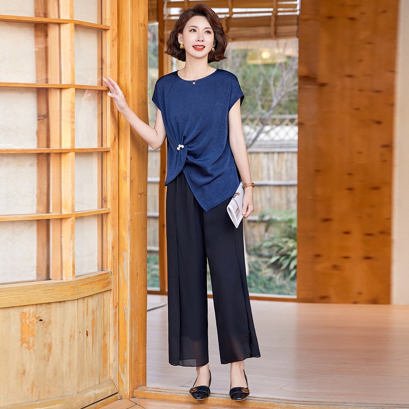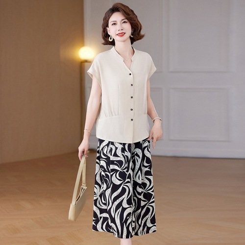 妈妈装夏季时尚套装洋气小衫中年女装夏季气质短袖百塔上衣两件套