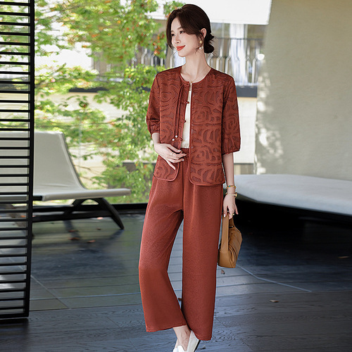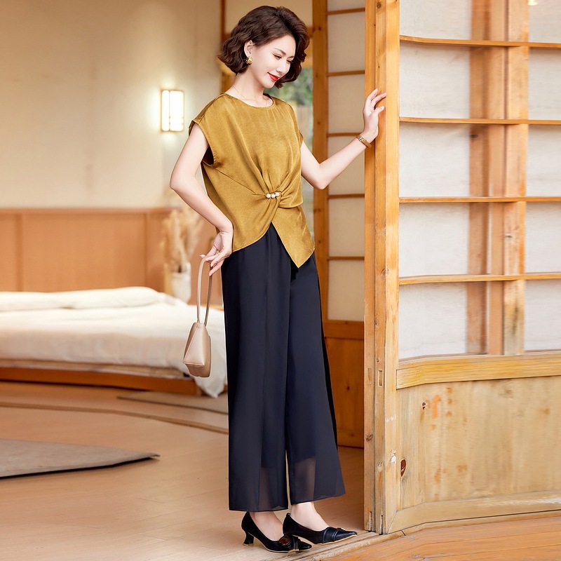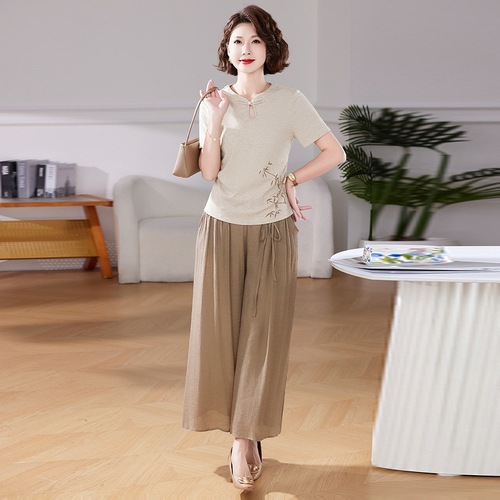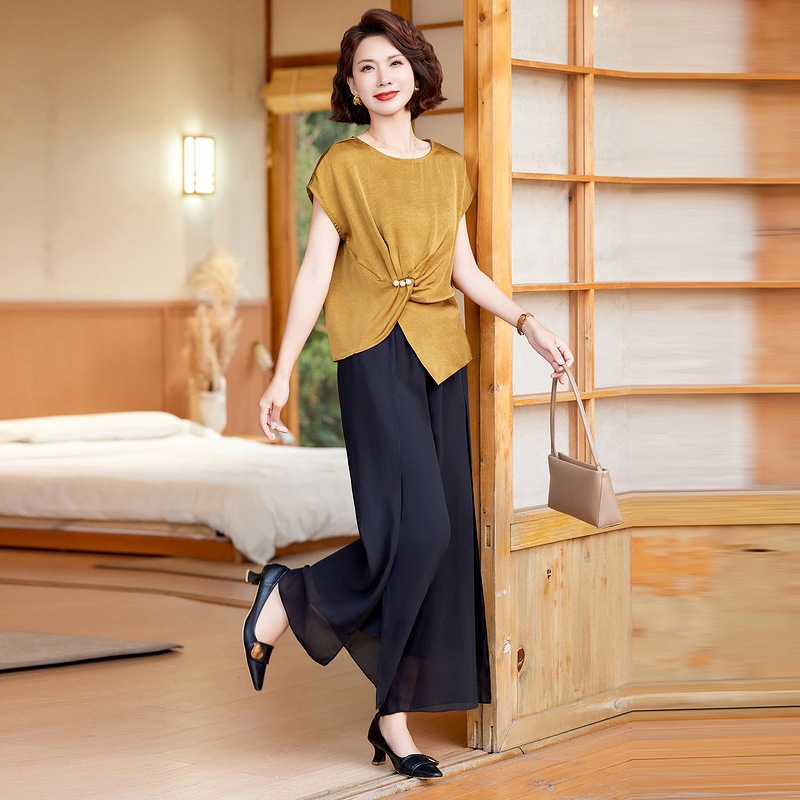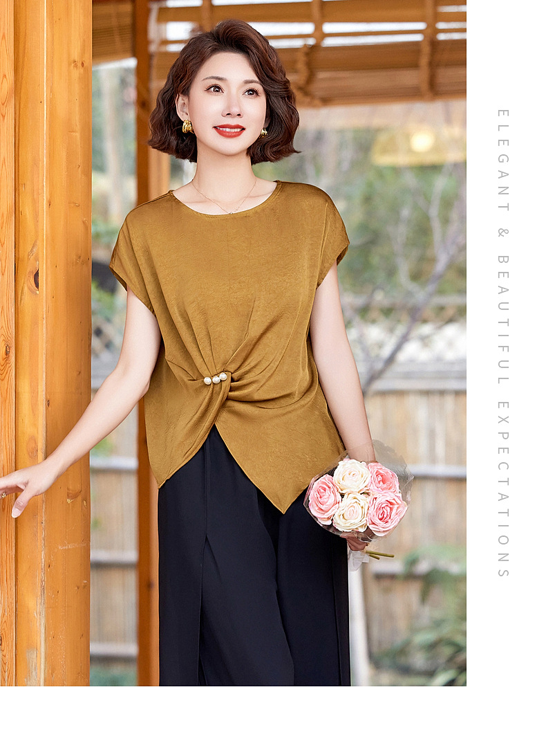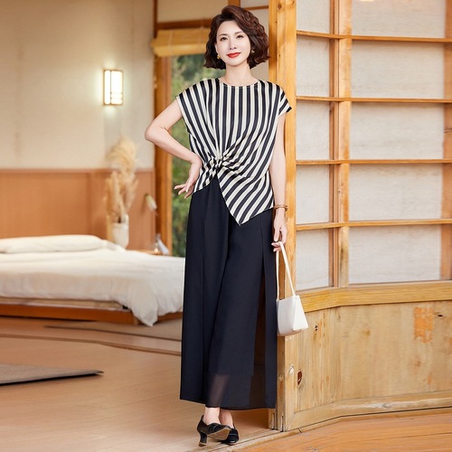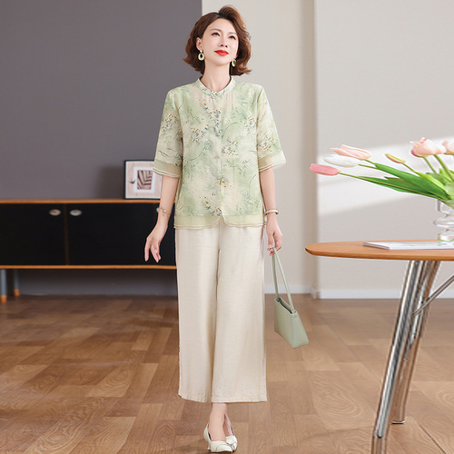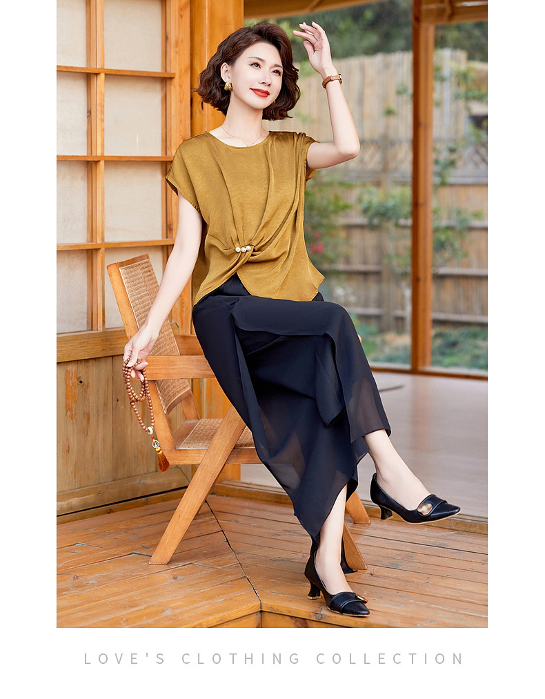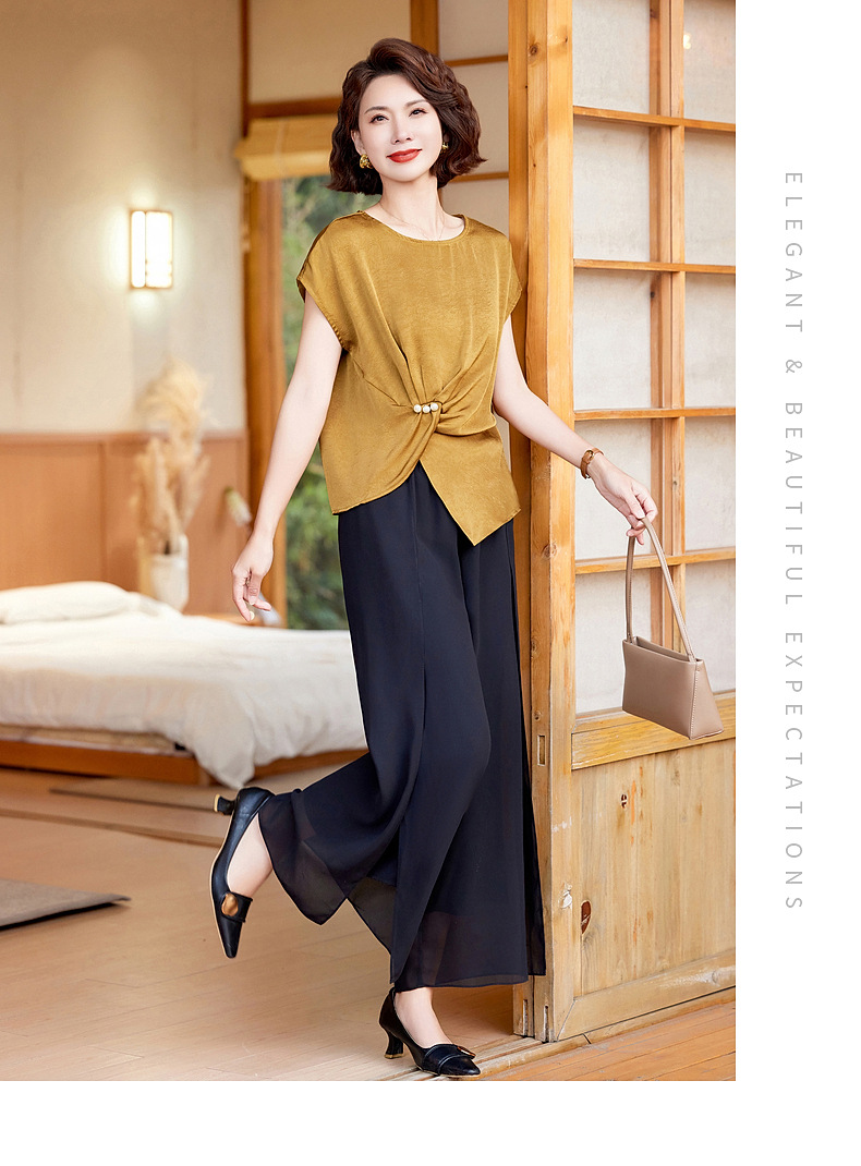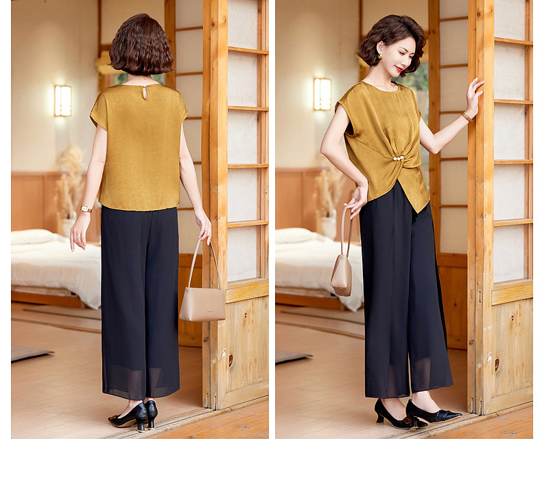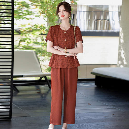 妈妈装夏季时尚套装洋气小衫中年女装夏季气质短袖百塔上衣两件套