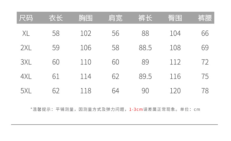 | 5XL(建议155一165斤) | USD $0.0 | 993 set available |