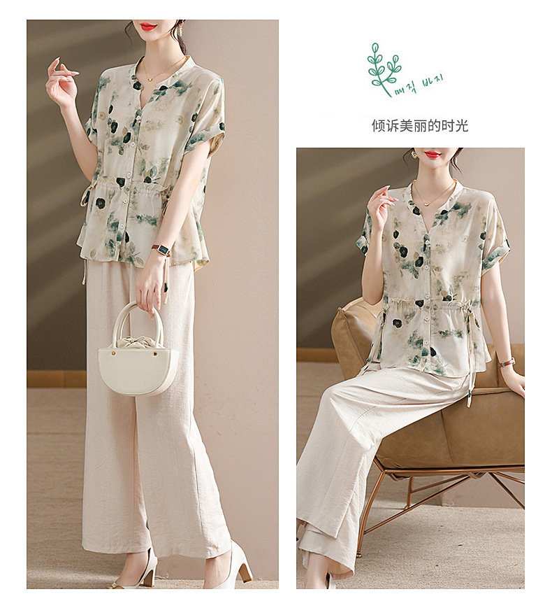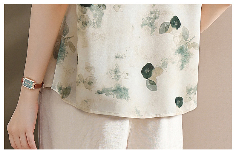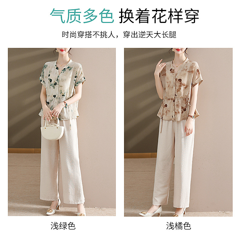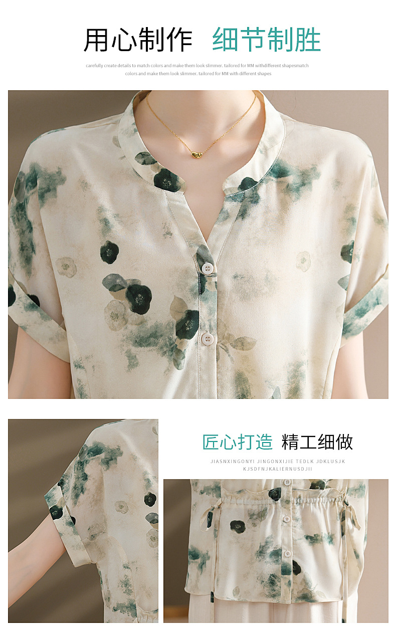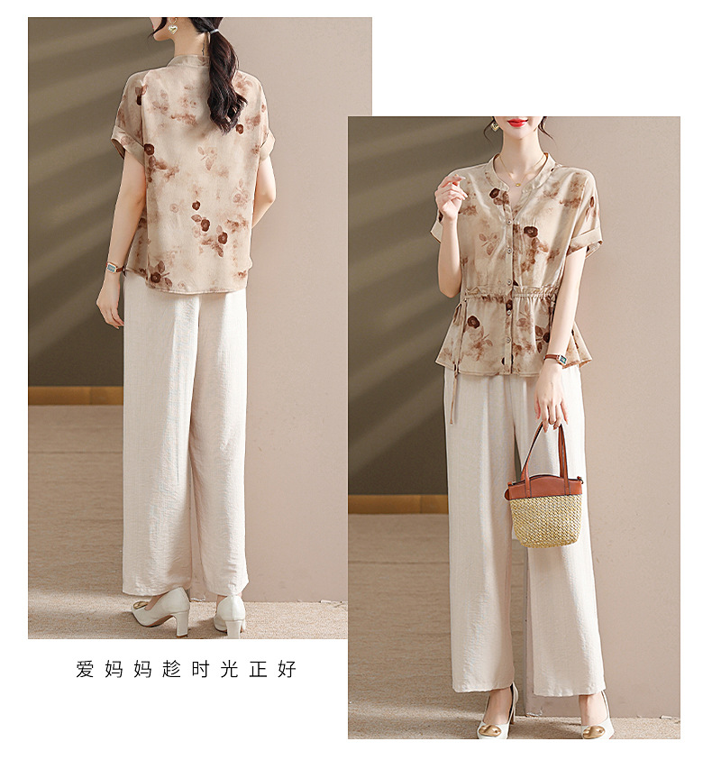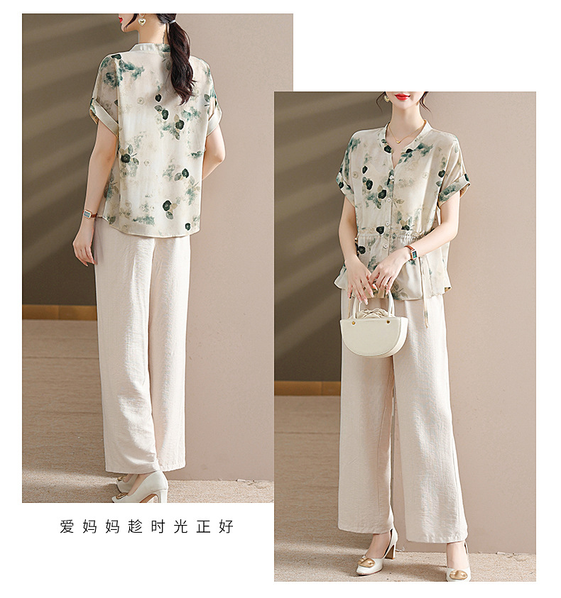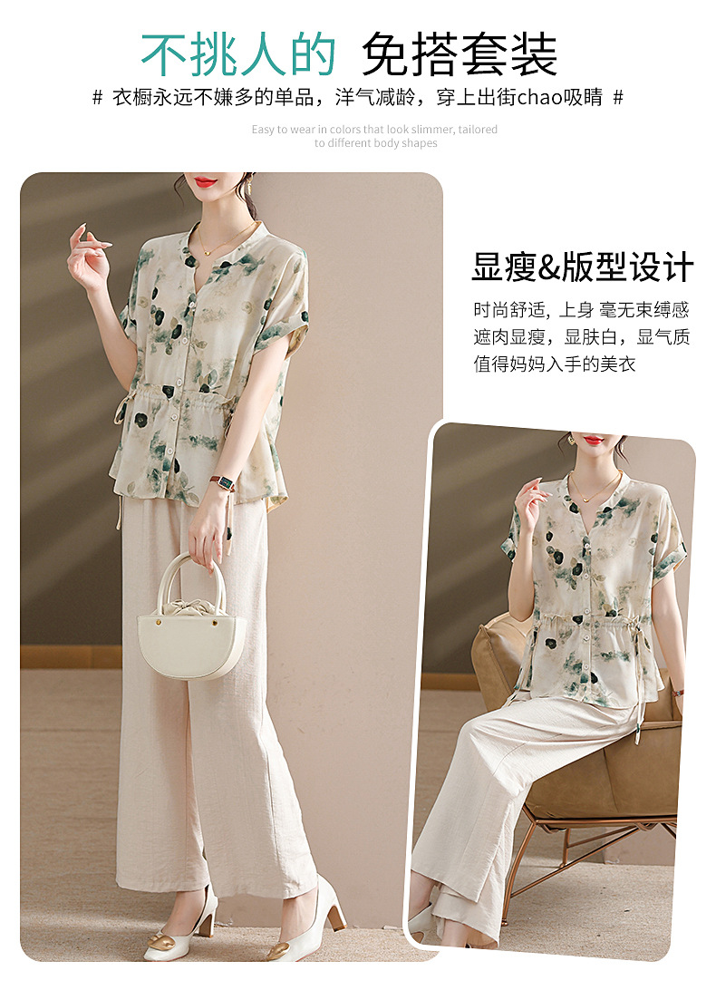 俏雅莹中老年女装两件套夏季新款衬衫印花气质透气妈妈装大码套装