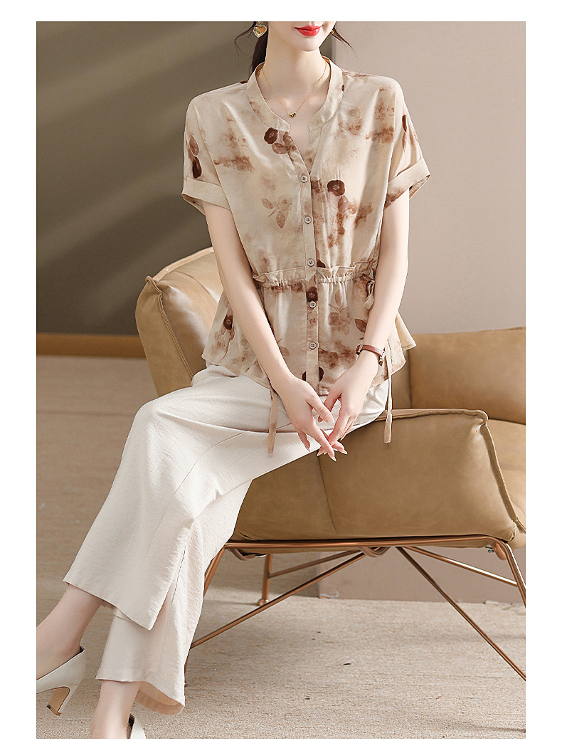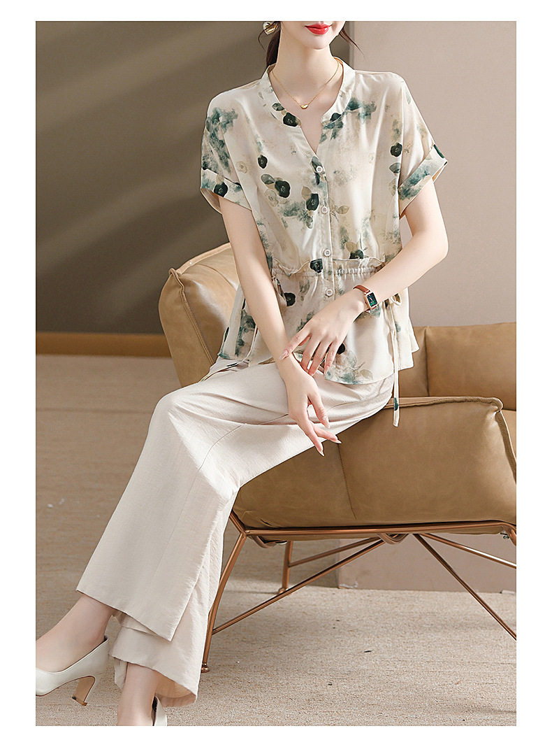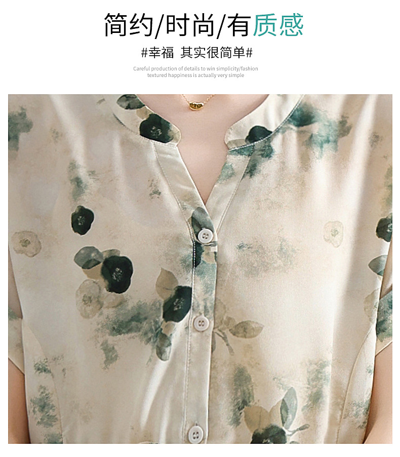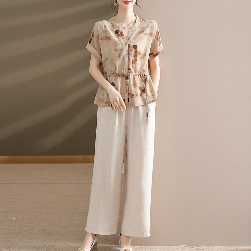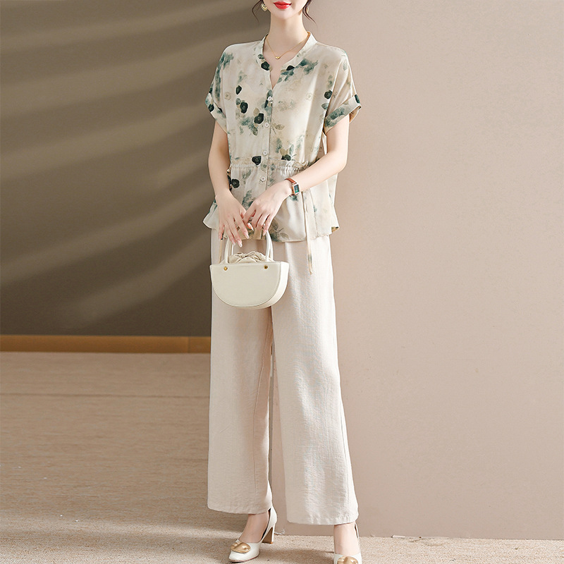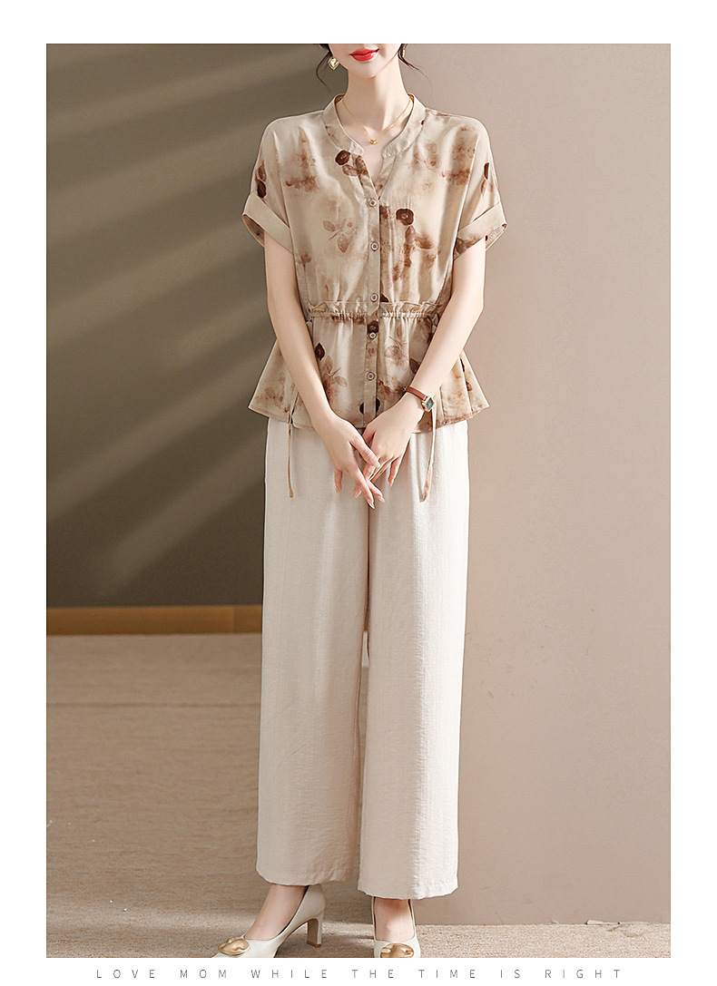 俏雅莹中老年女装两件套夏季新款衬衫印花气质透气妈妈装大码套装