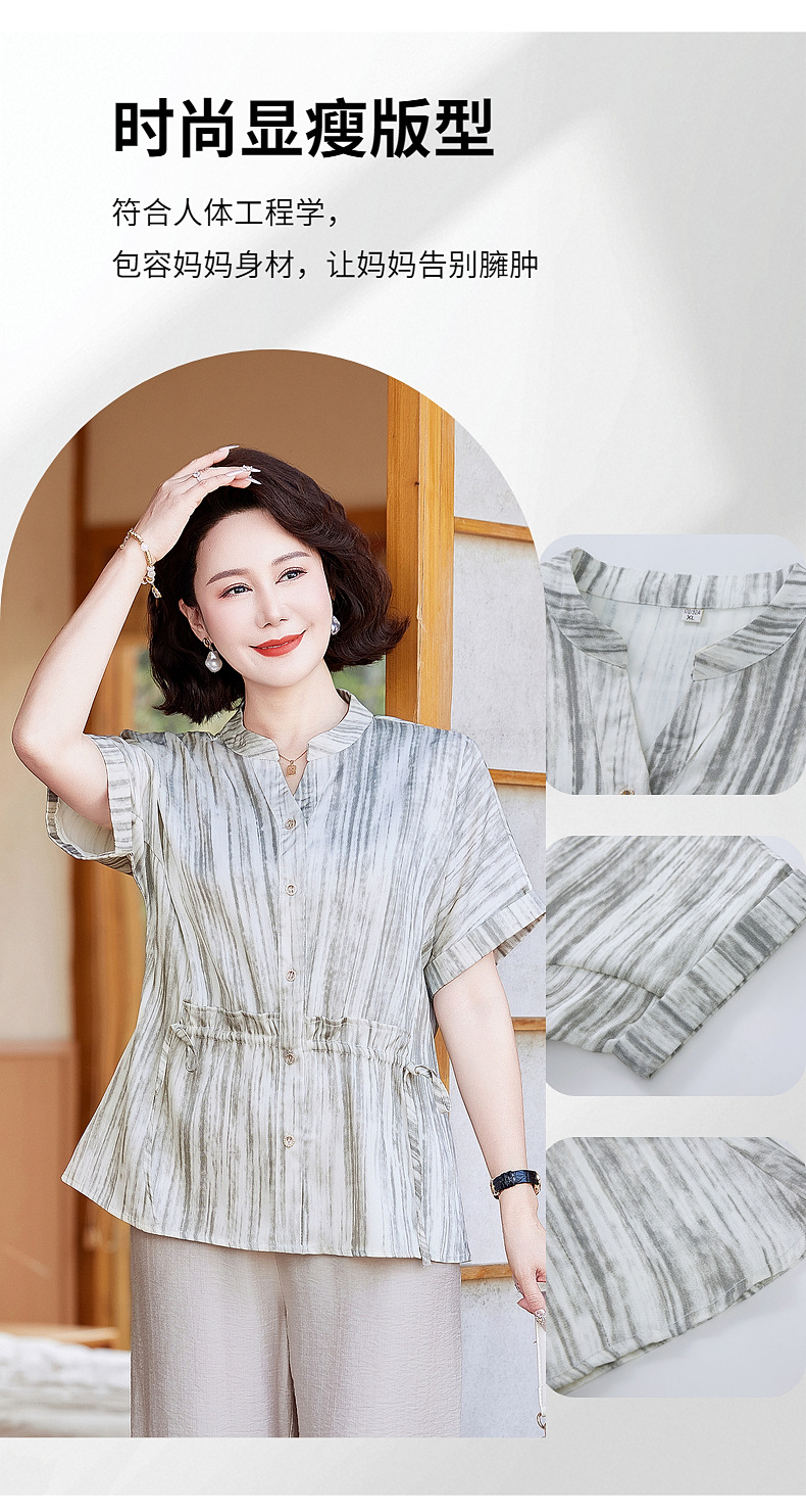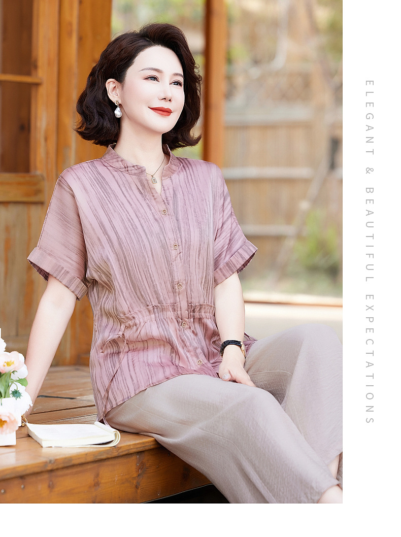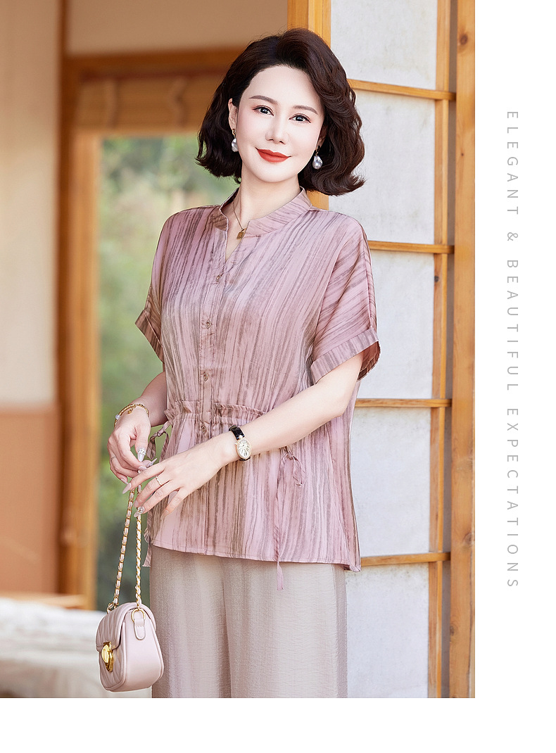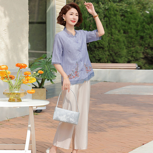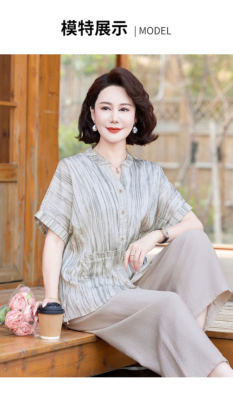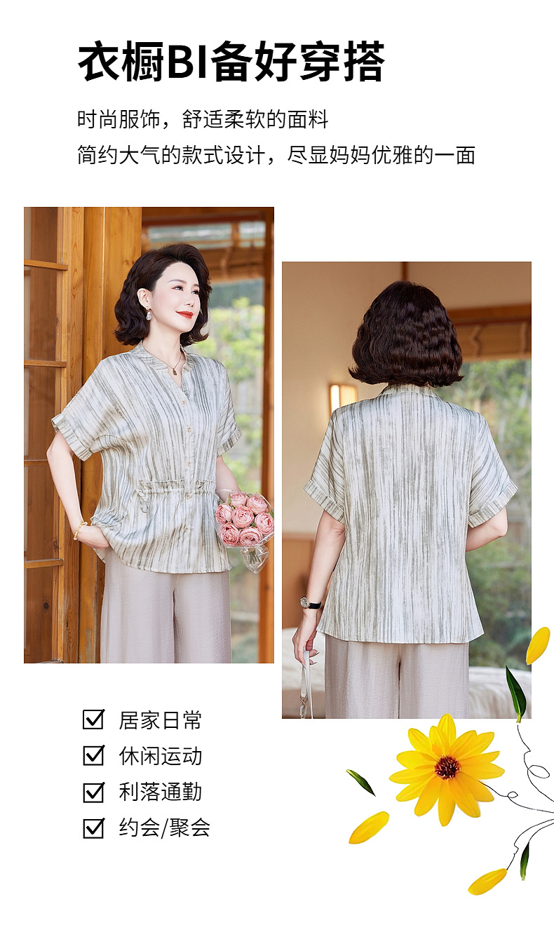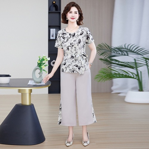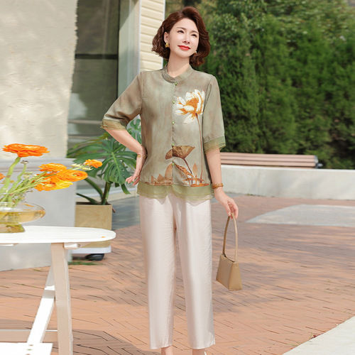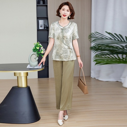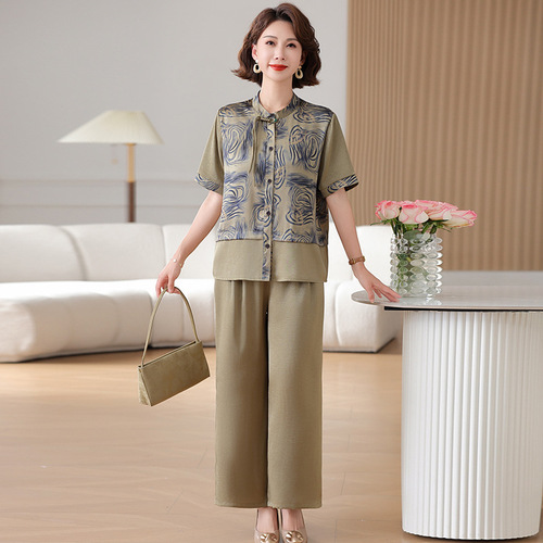 summer mom short sleeve suit 2025 middle-aged and elderly new fashion plus size top temperament mother-in-law loose two-piece suit
