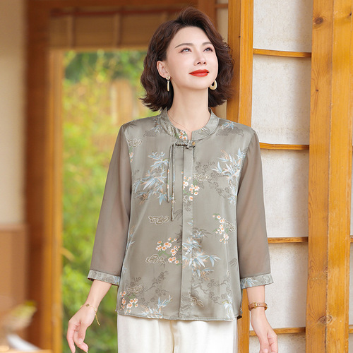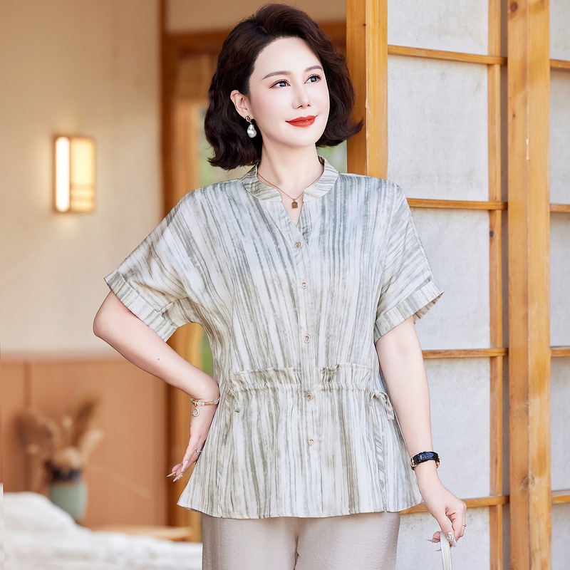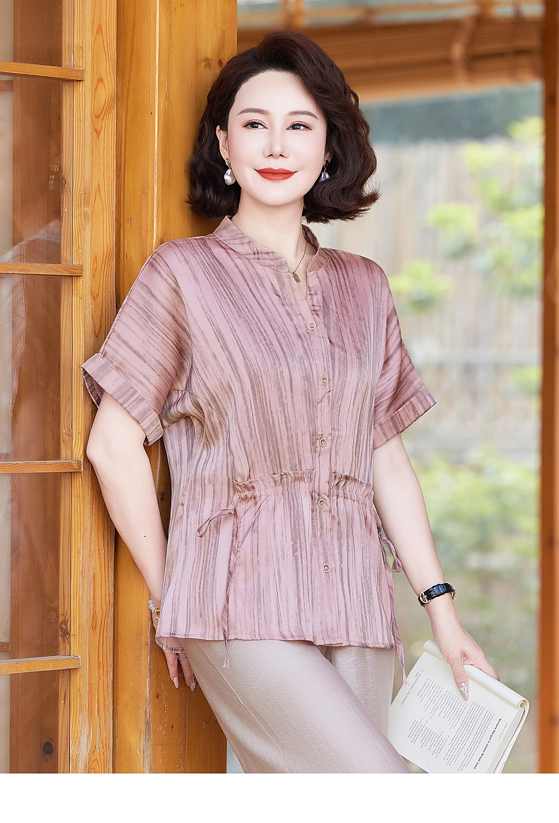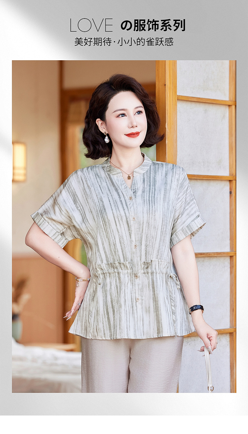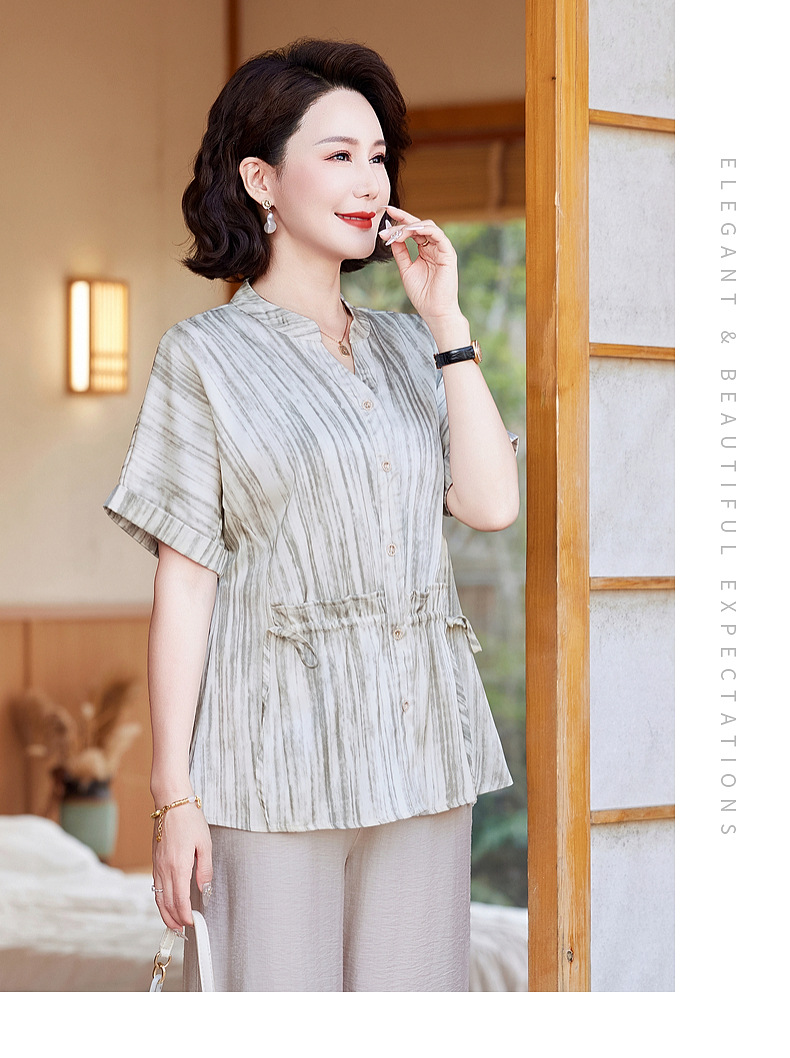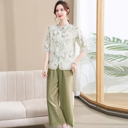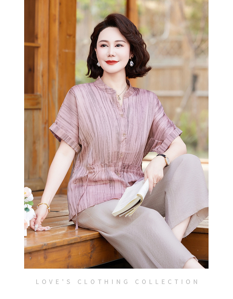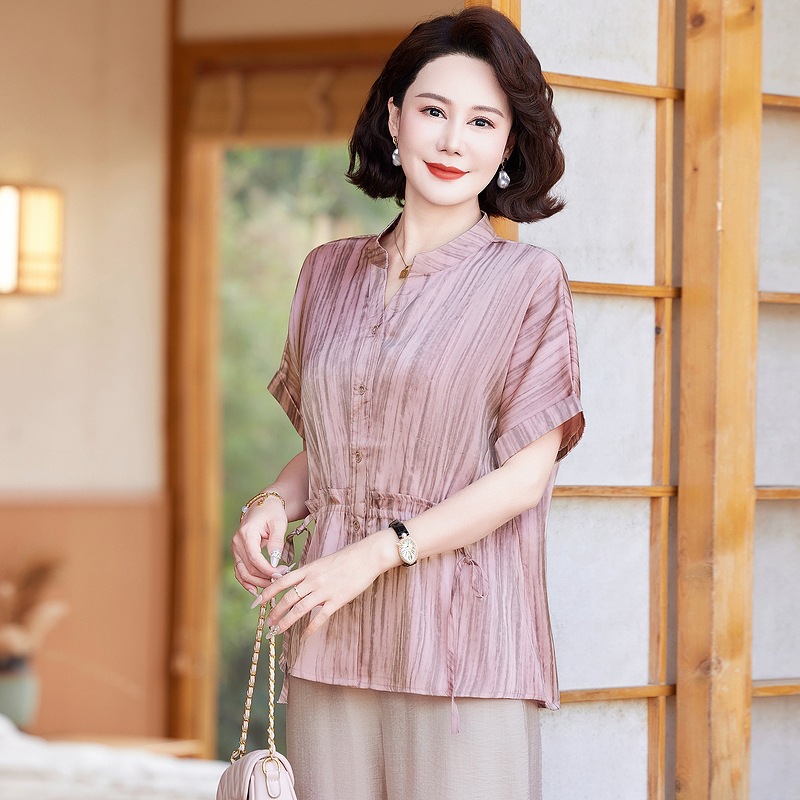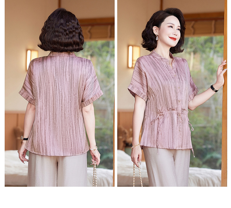 summer mom short sleeve suit 2025 middle-aged and elderly new fashion plus size top temperament mother-in-law loose two-piece suit