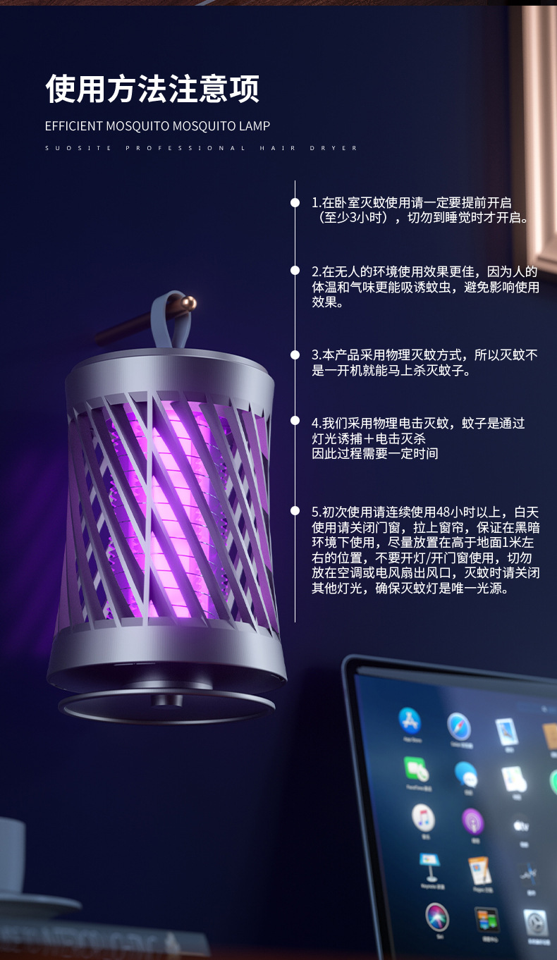 跨境爆款电击吸入式灭蚊灯家用户外便携式USB充电可手提灭蚊器