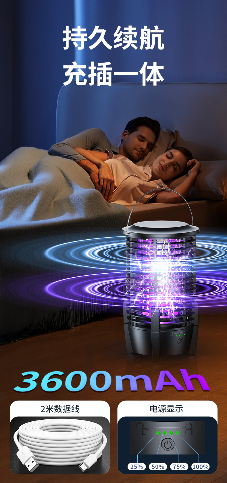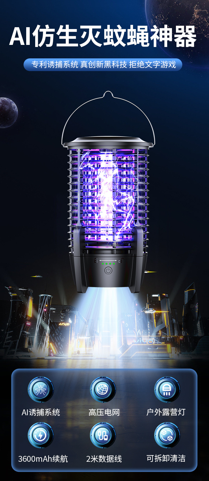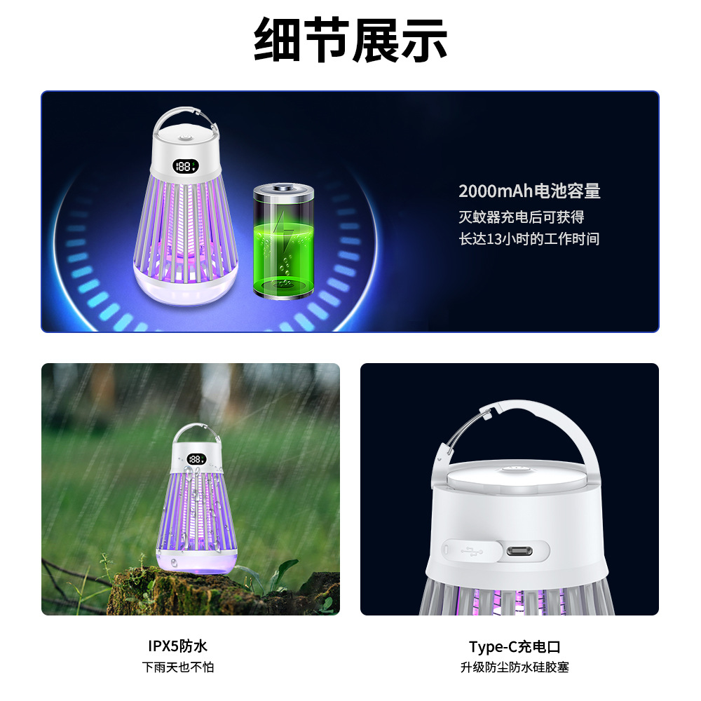2025灭蚊灯外贸跨境灭蚊蝇神器家用户外电子灭蚊器露营灯一键清洁