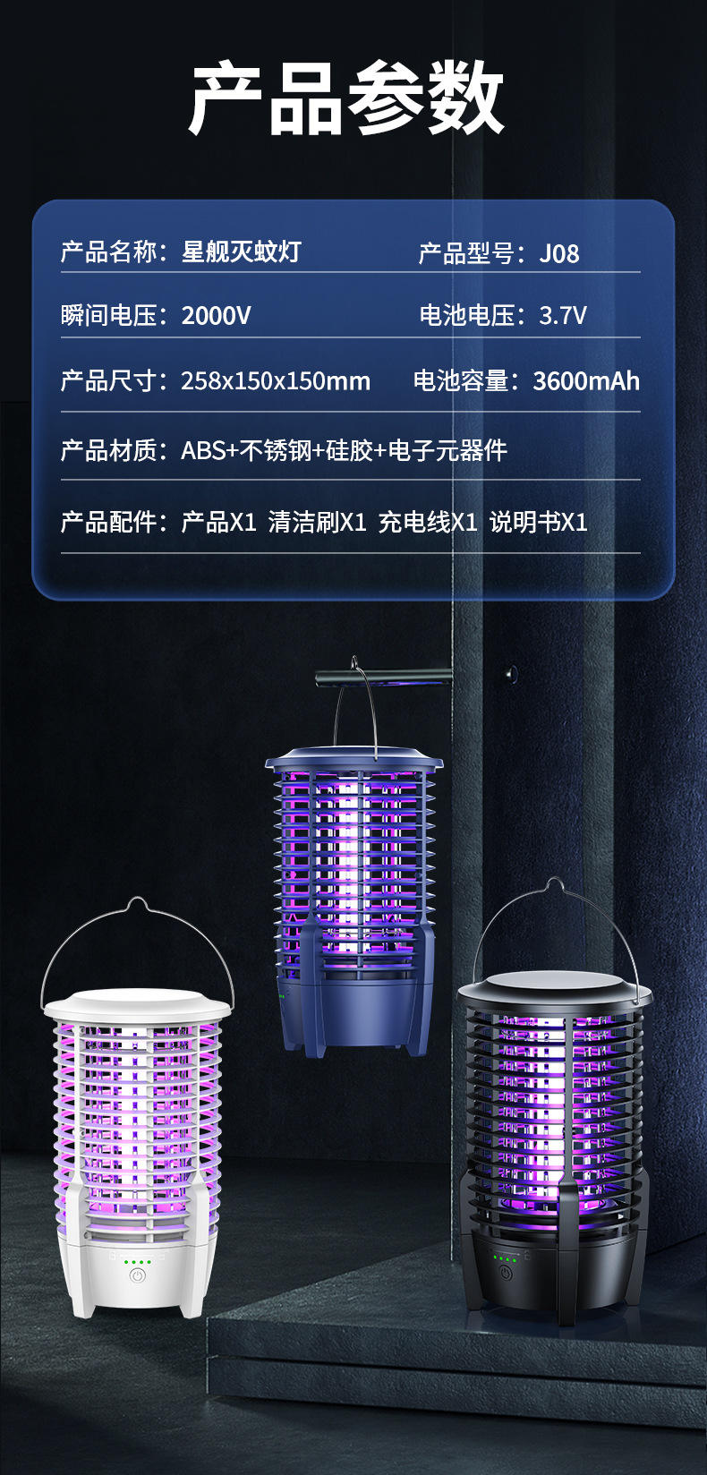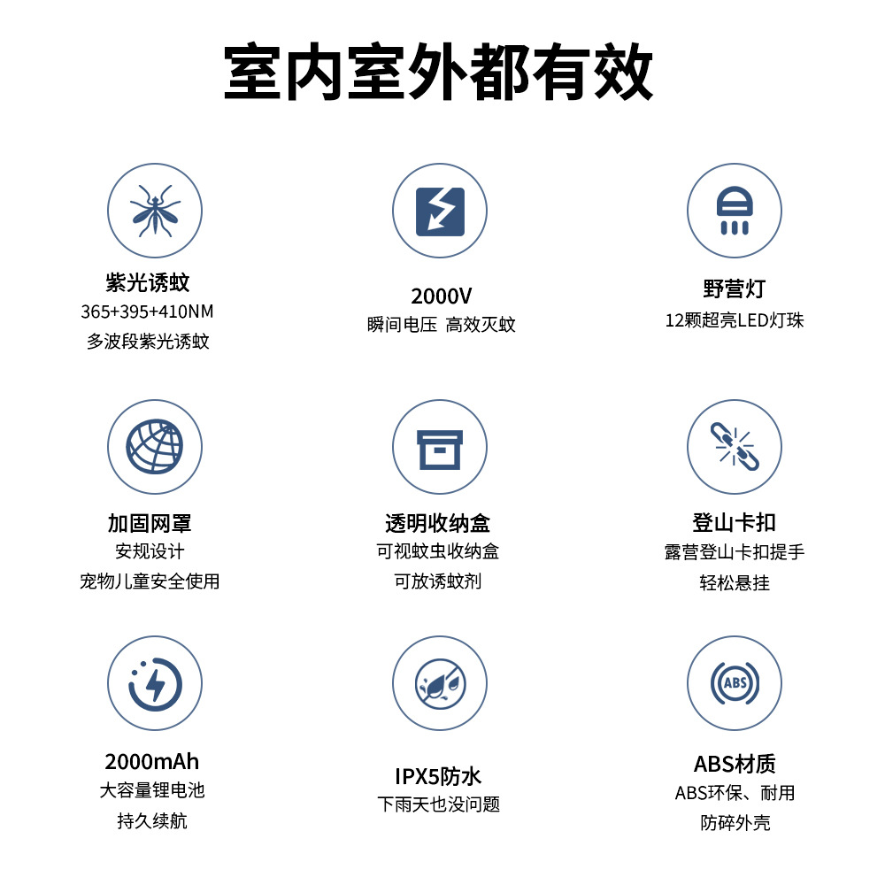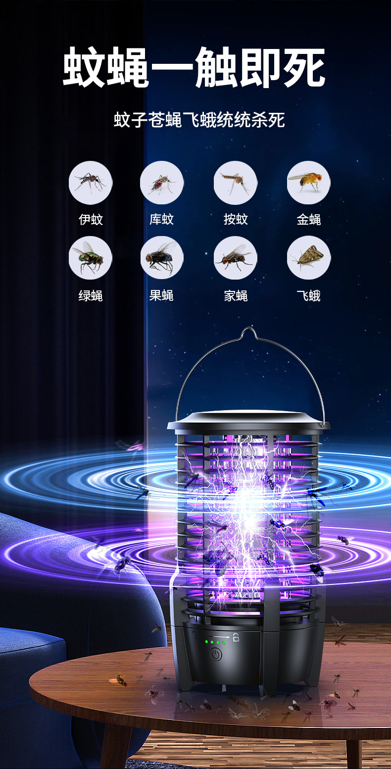 2025灭蚊灯外贸跨境灭蚊蝇神器家用户外电子灭蚊器露营灯一键清洁