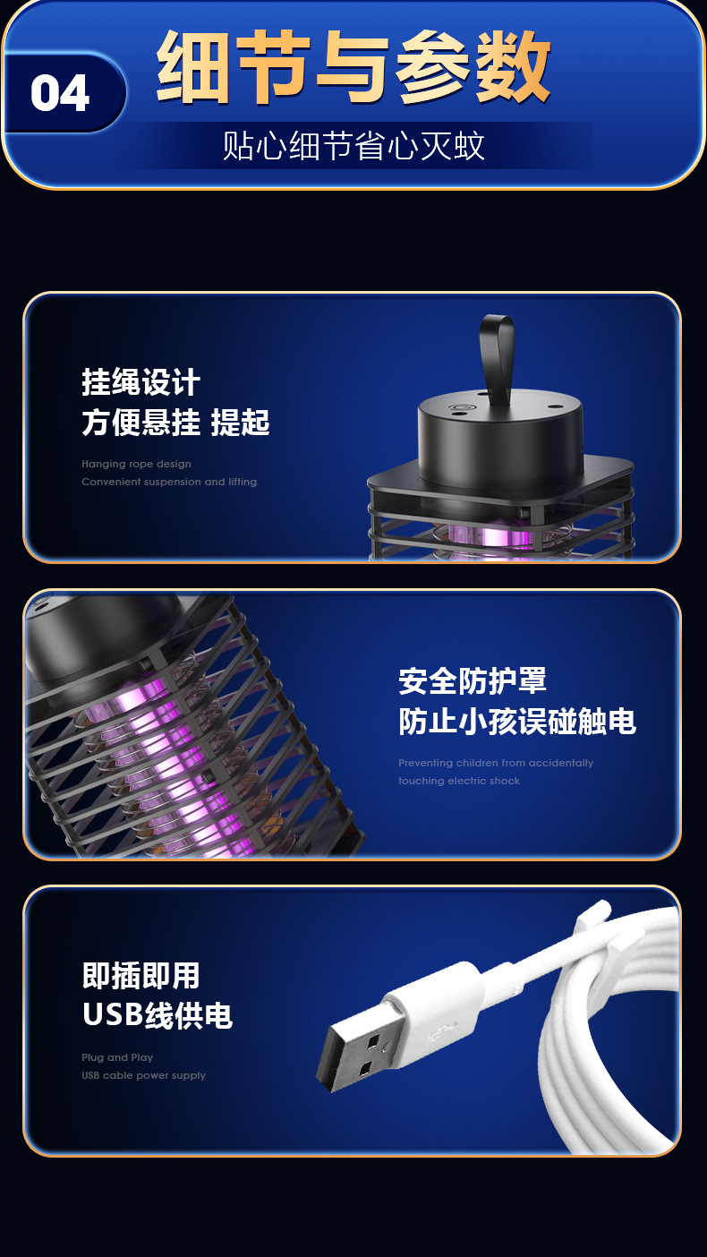 新款家用USB电击灭蚊灯卧室静音驱蚊灯户外便携驱蚊器跨境专供