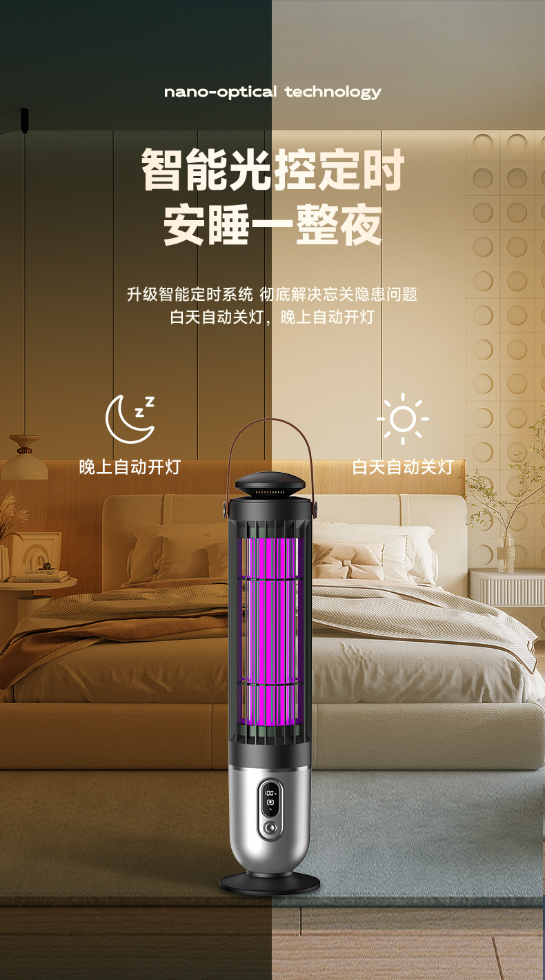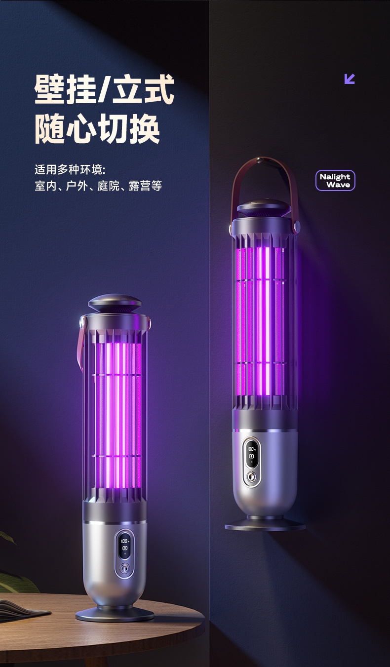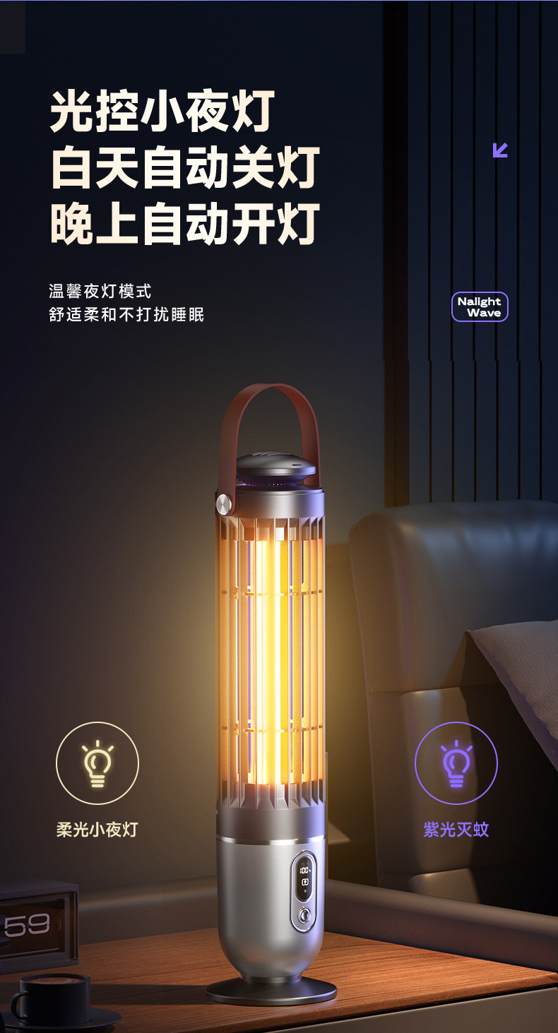 跨境新款灭蚊灯家用电击户外露营灭蚊器光感小夜灯灭蝇灯紫光诱蚊