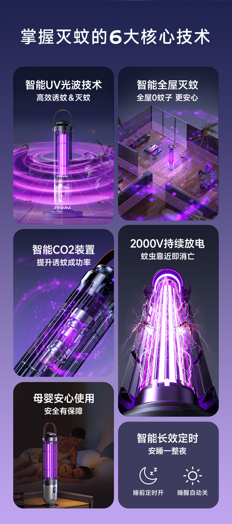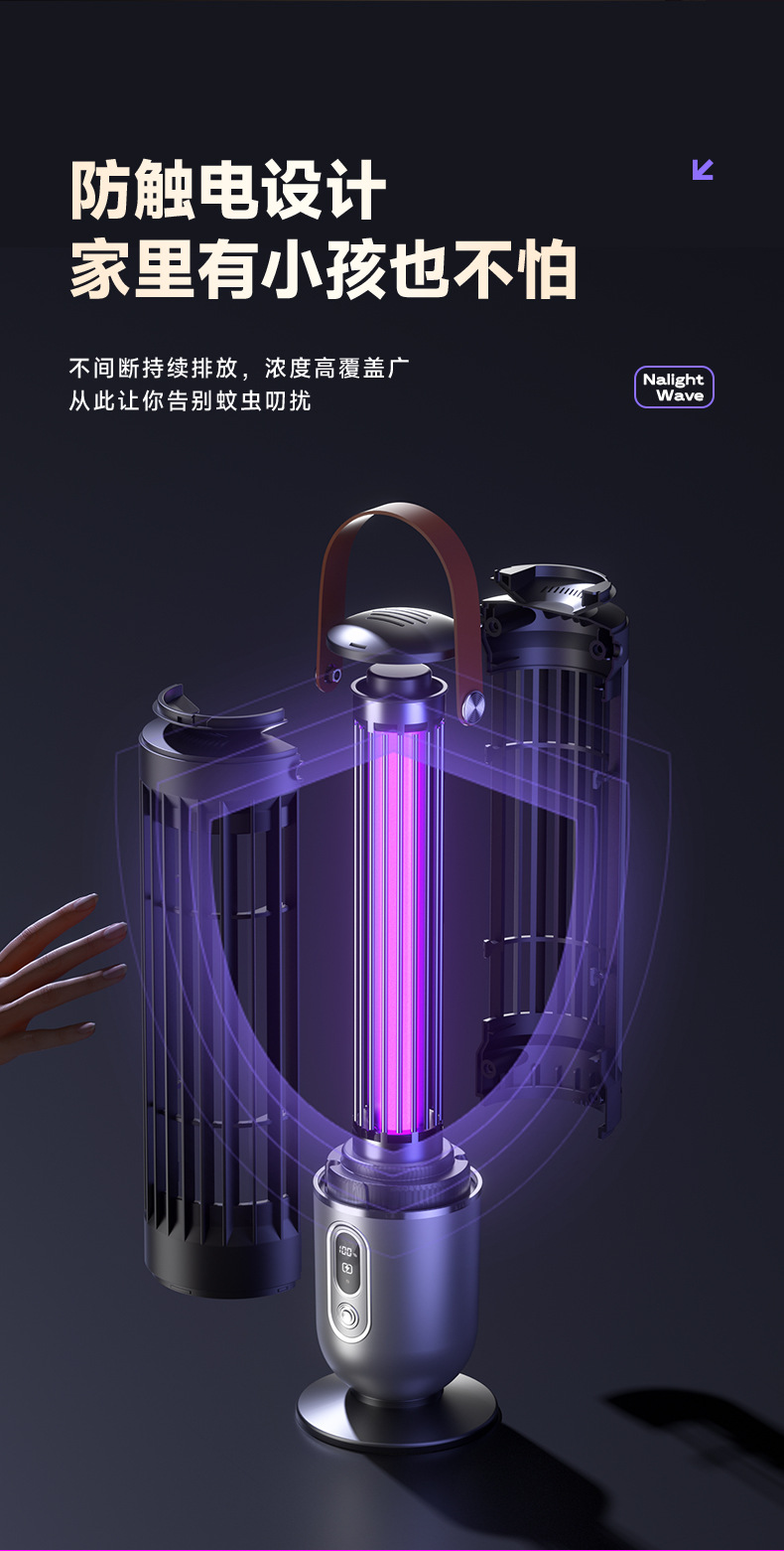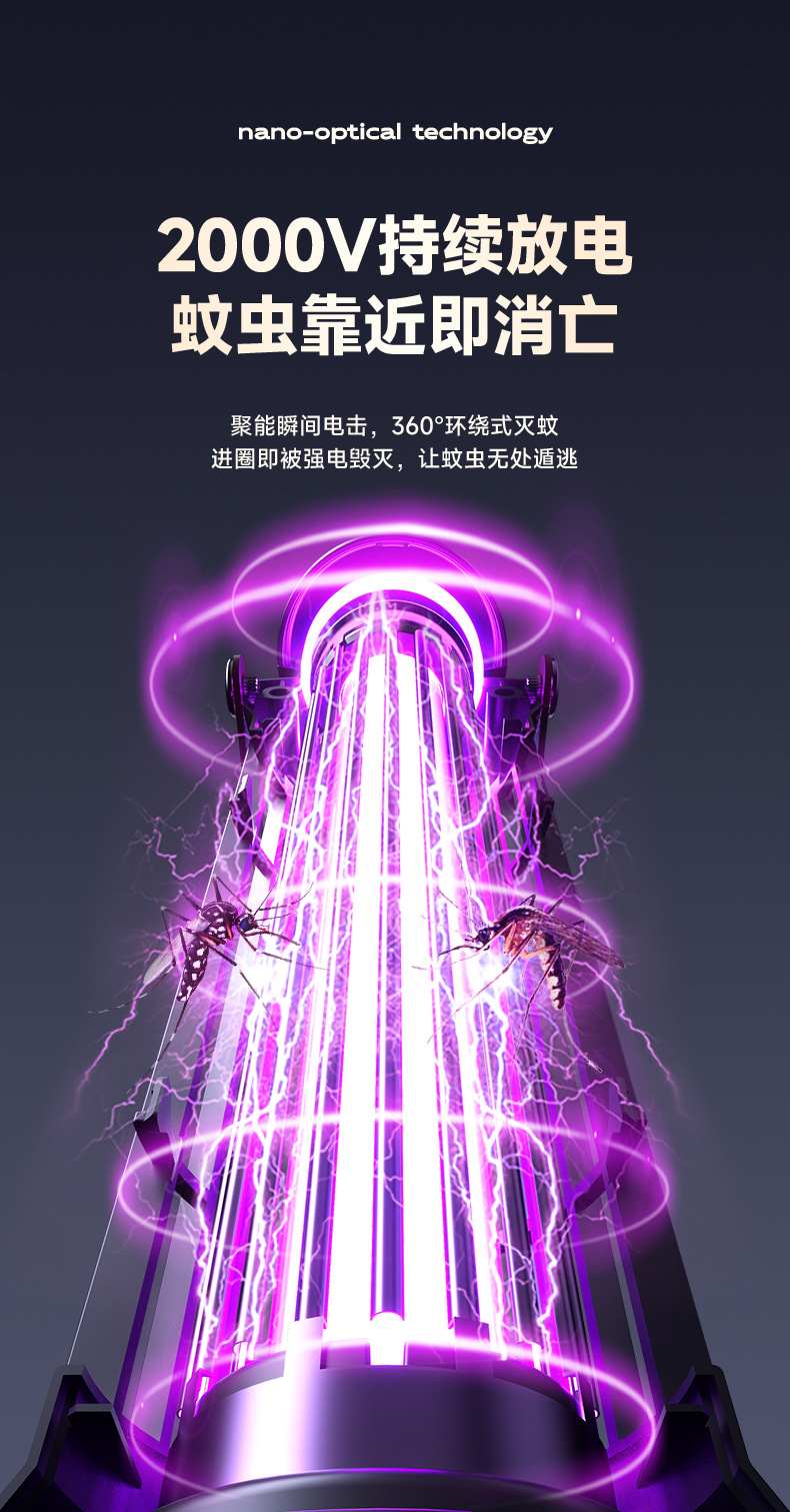 跨境新款灭蚊灯家用电击户外露营灭蚊器光感小夜灯灭蝇灯紫光诱蚊