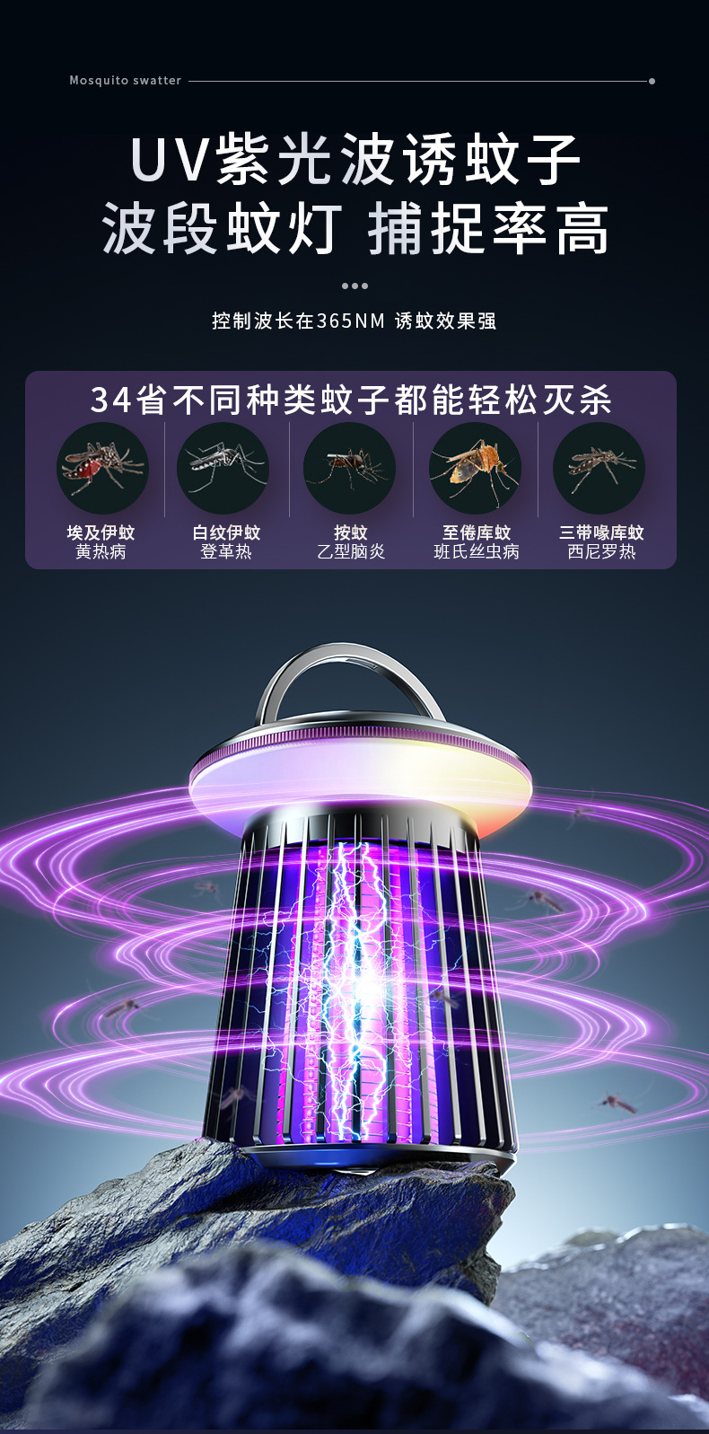 跨境灭蚊灯电击家用壁挂式驱蚊器usb充电户外露营便携灭蝇捕蚊器