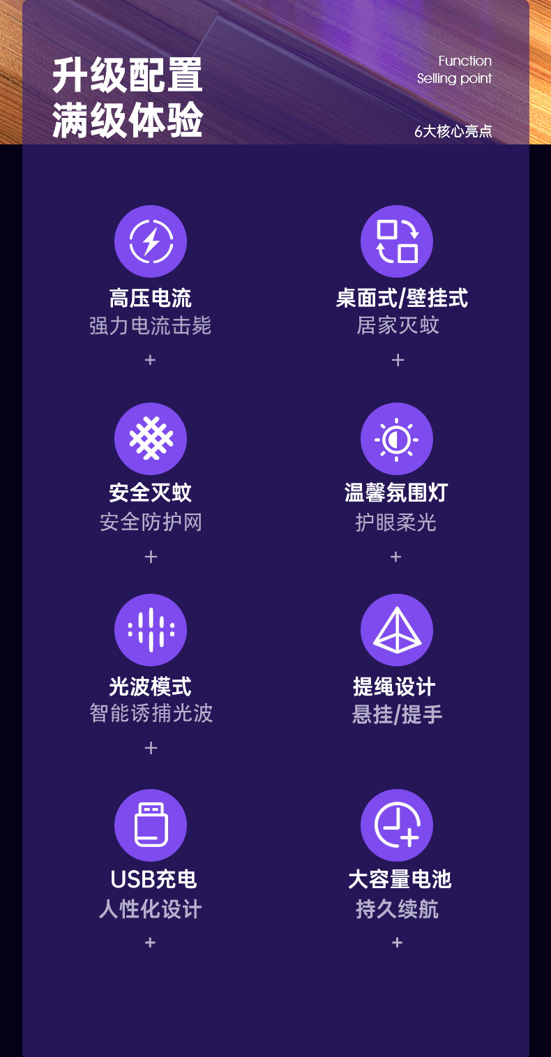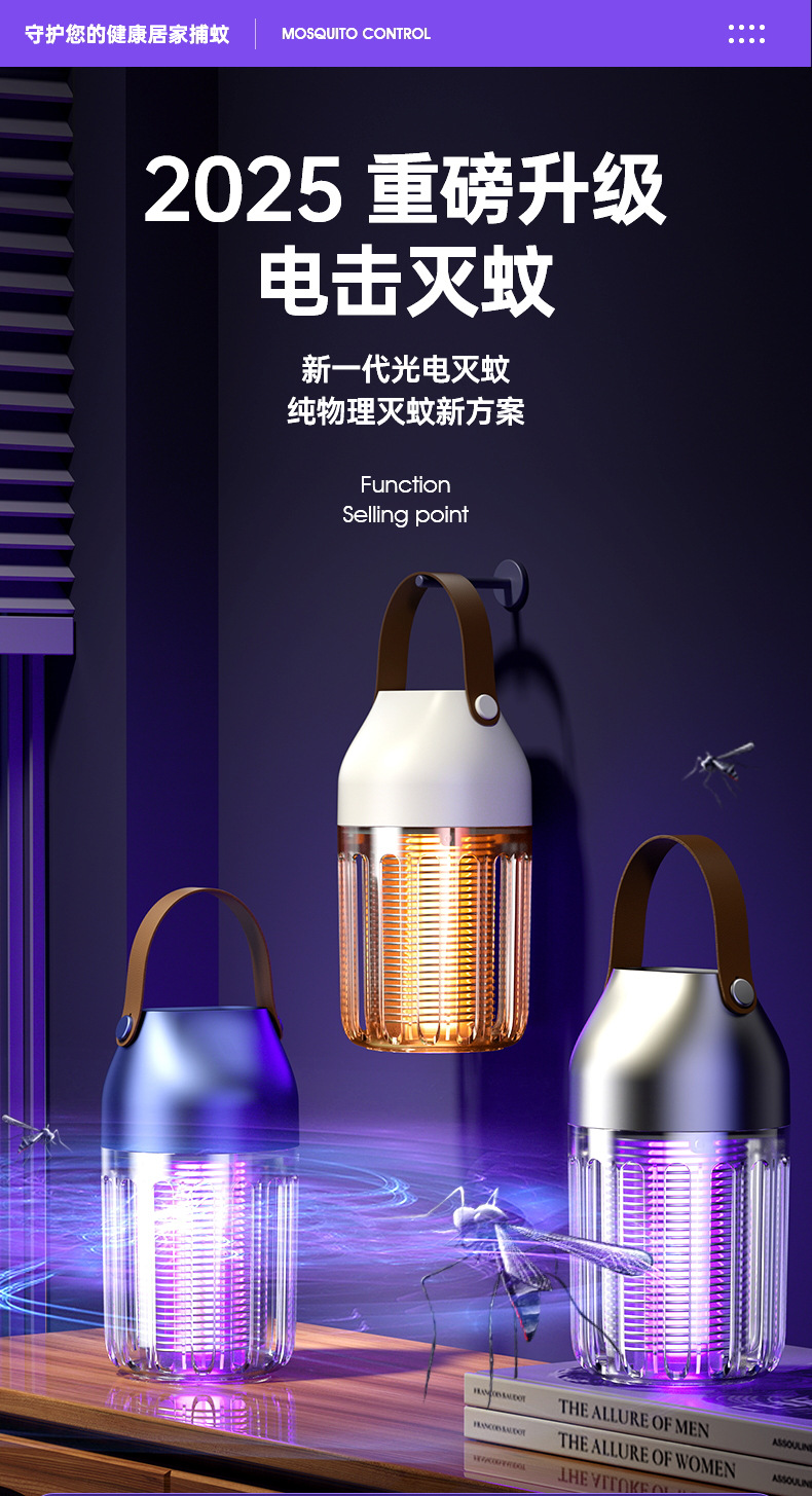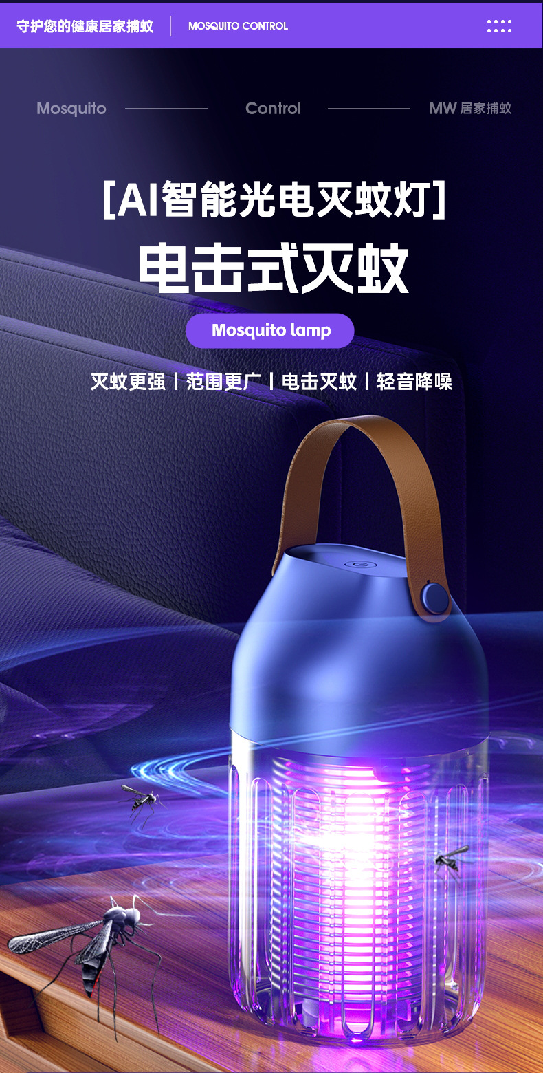 新款跨境灭蚊灯家用电击户外露营灭蚊器小夜灯灭蝇灯紫光诱蚊厂家