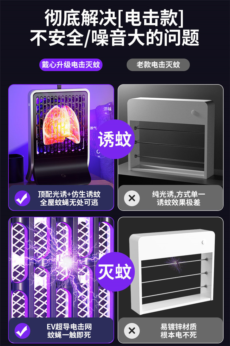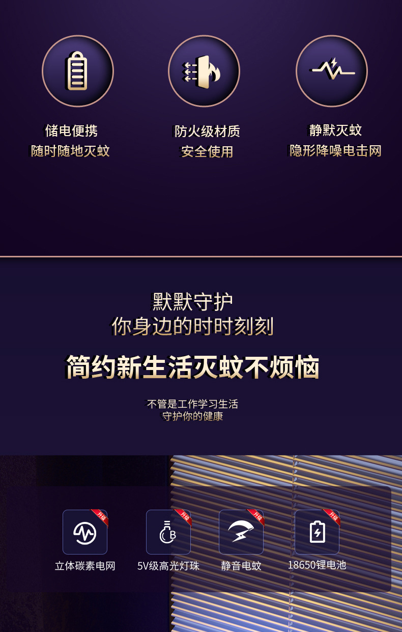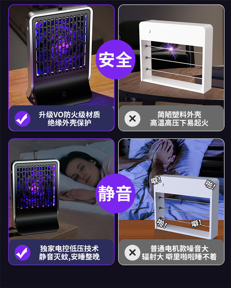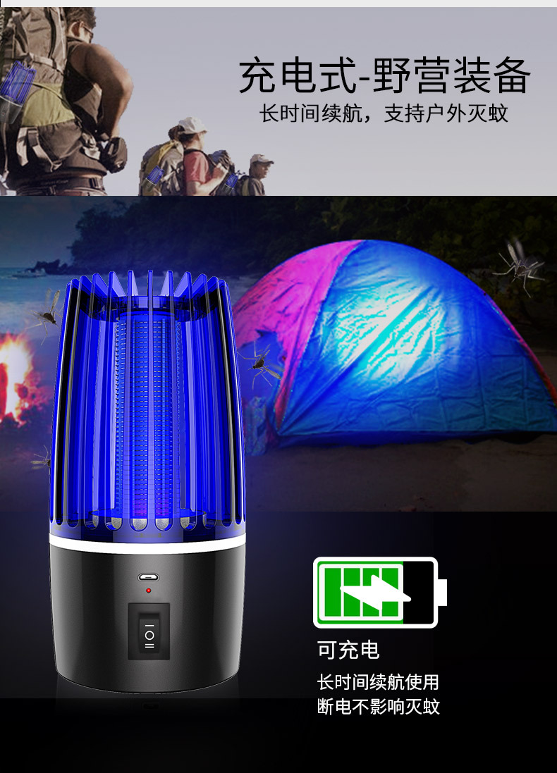 跨境新款灭蚊灯家用电击式户外露营小夜灯灭蚊器灭蝇灯充电驱蚊器