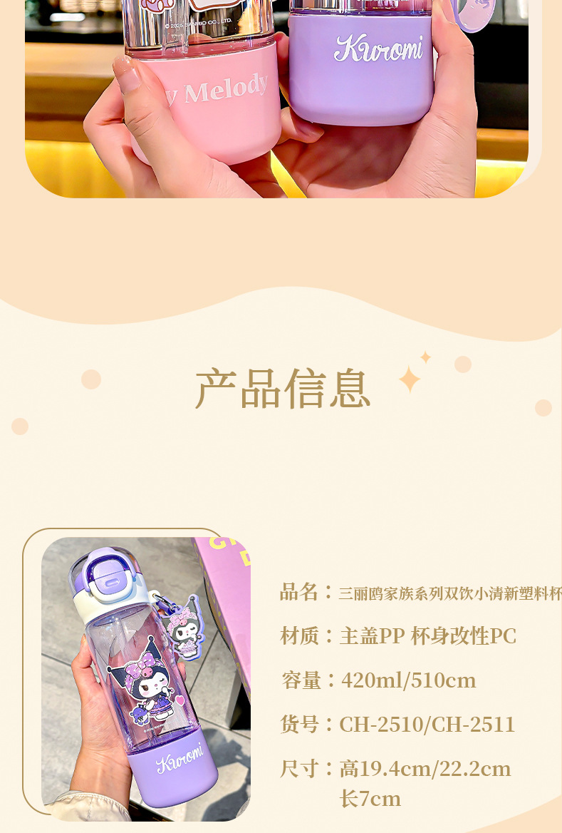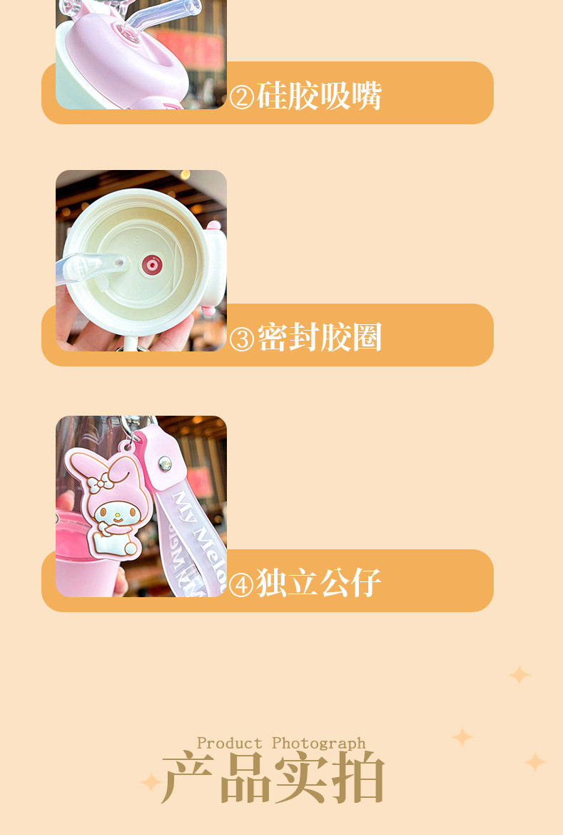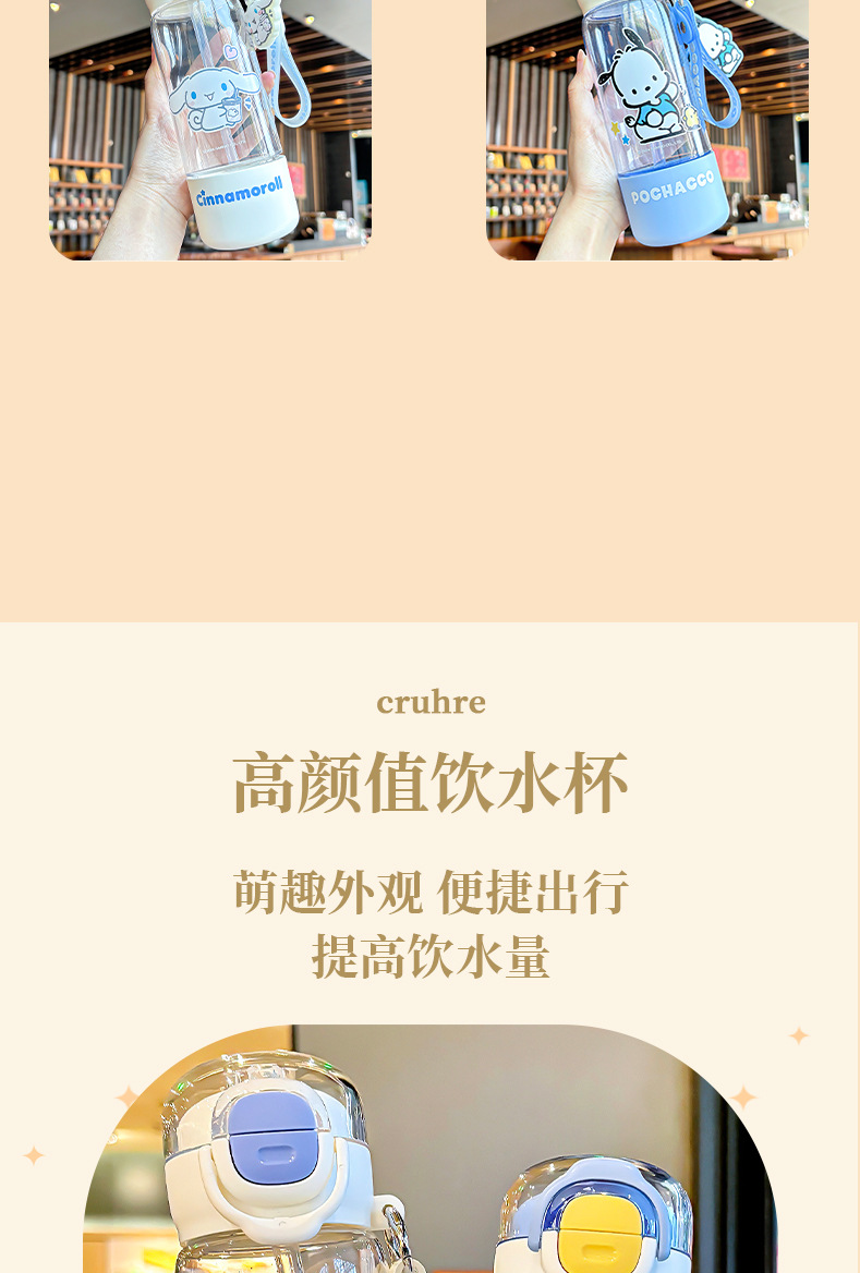 新款三丽鸥水杯高颜值可爱女生tritan吸管杯大容量儿童卡通随手杯
