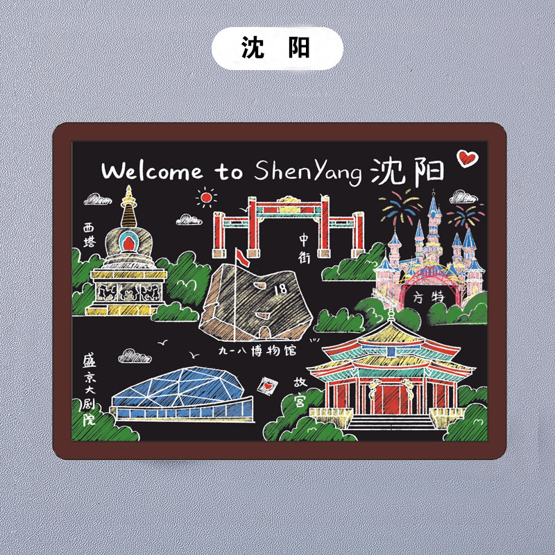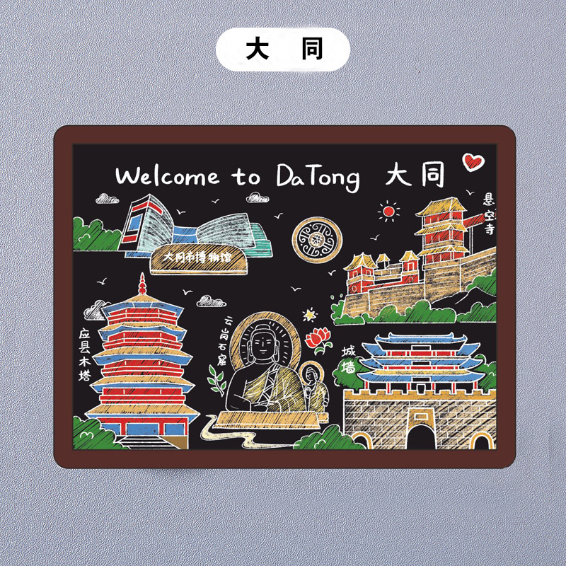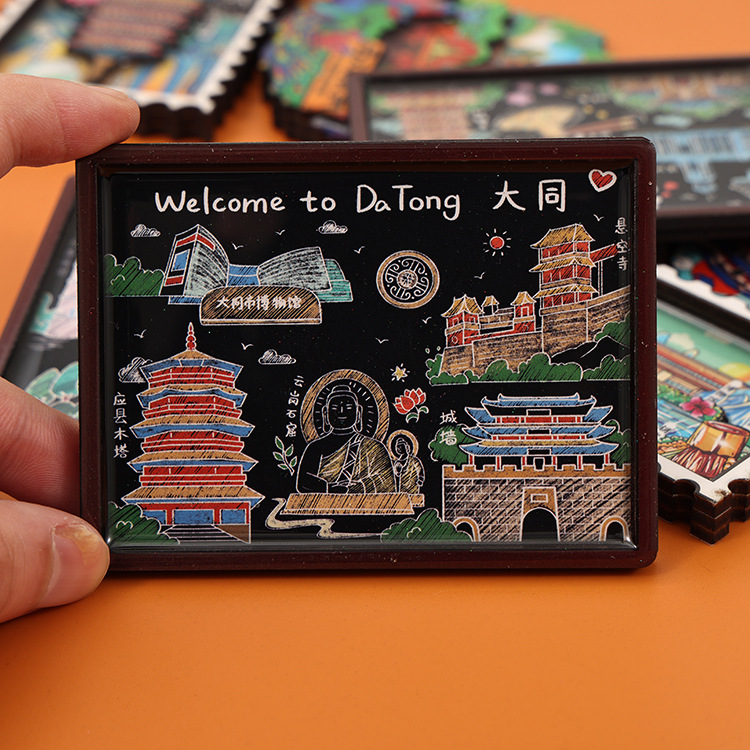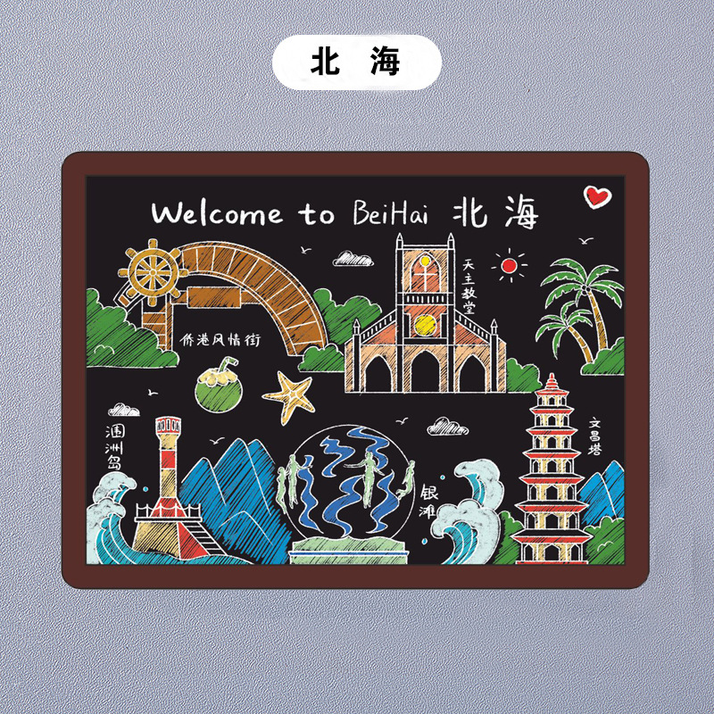 国潮创意磁吸i北海大同黑板木质冰箱贴文创旅游纪念品多款批发
