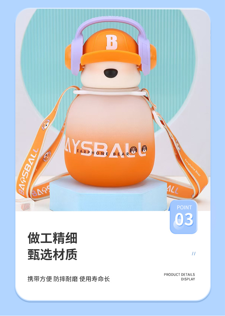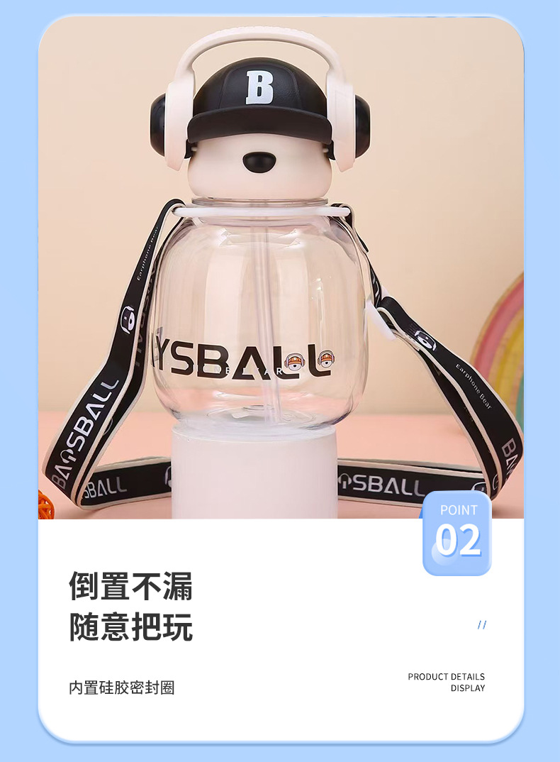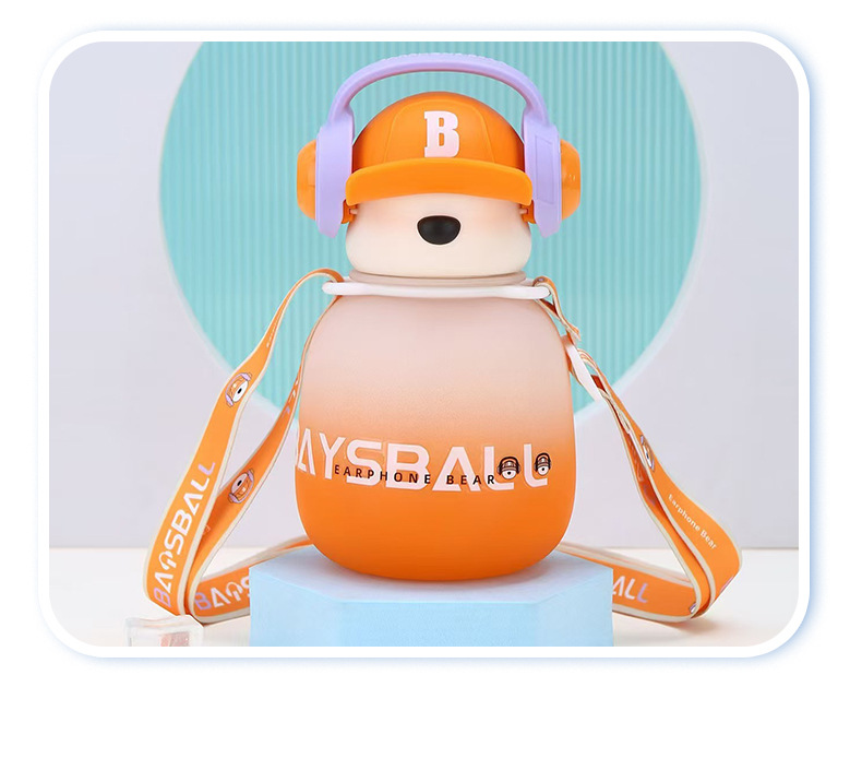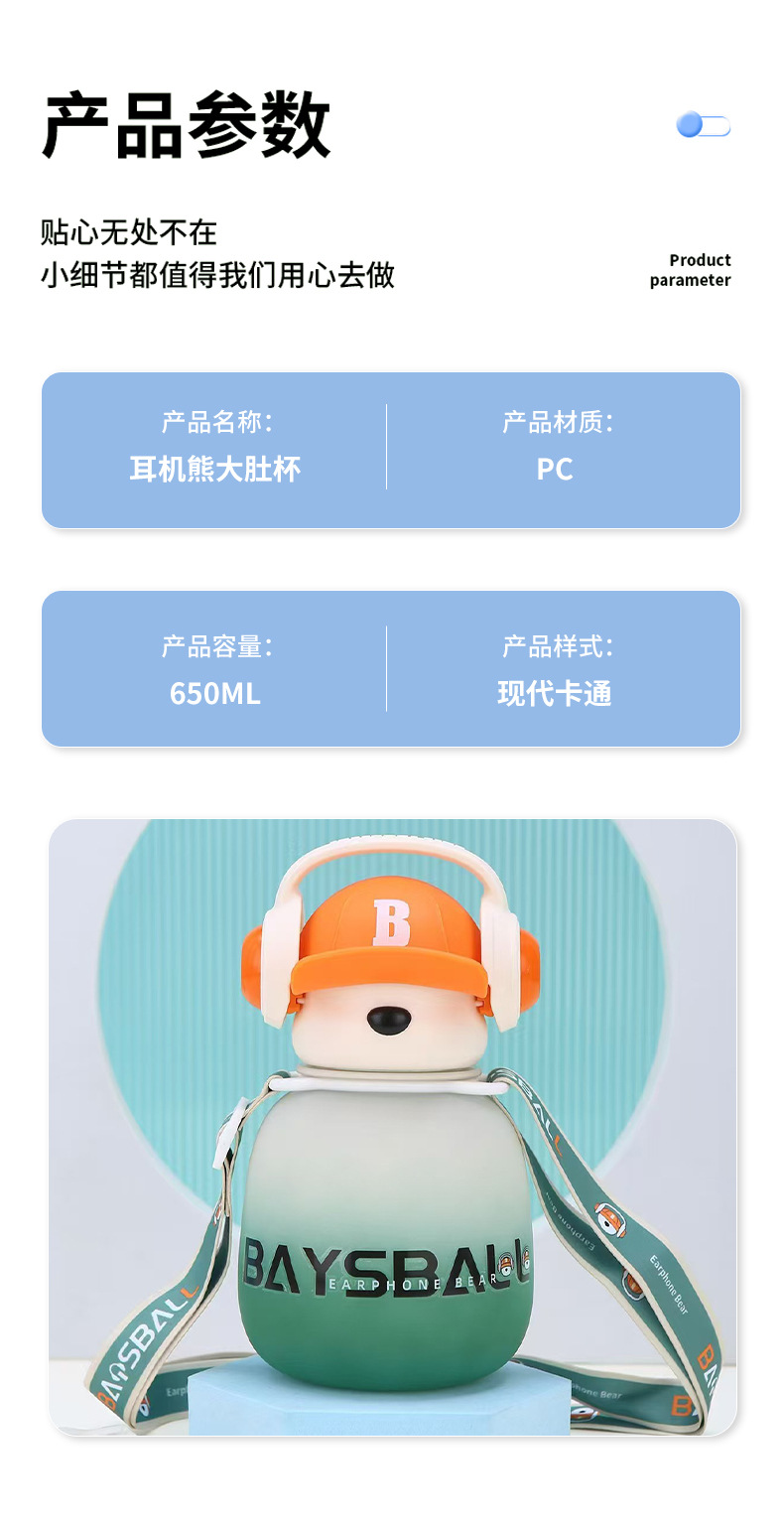 2025新款卡通耳机熊塑料杯磨砂家用吸管水杯高颜值吊带杯礼品杯工