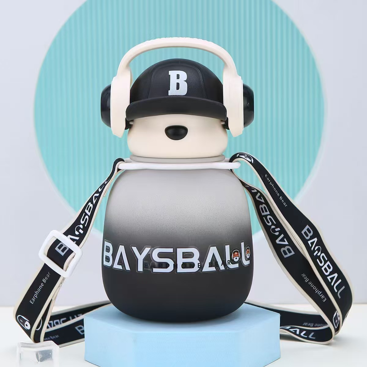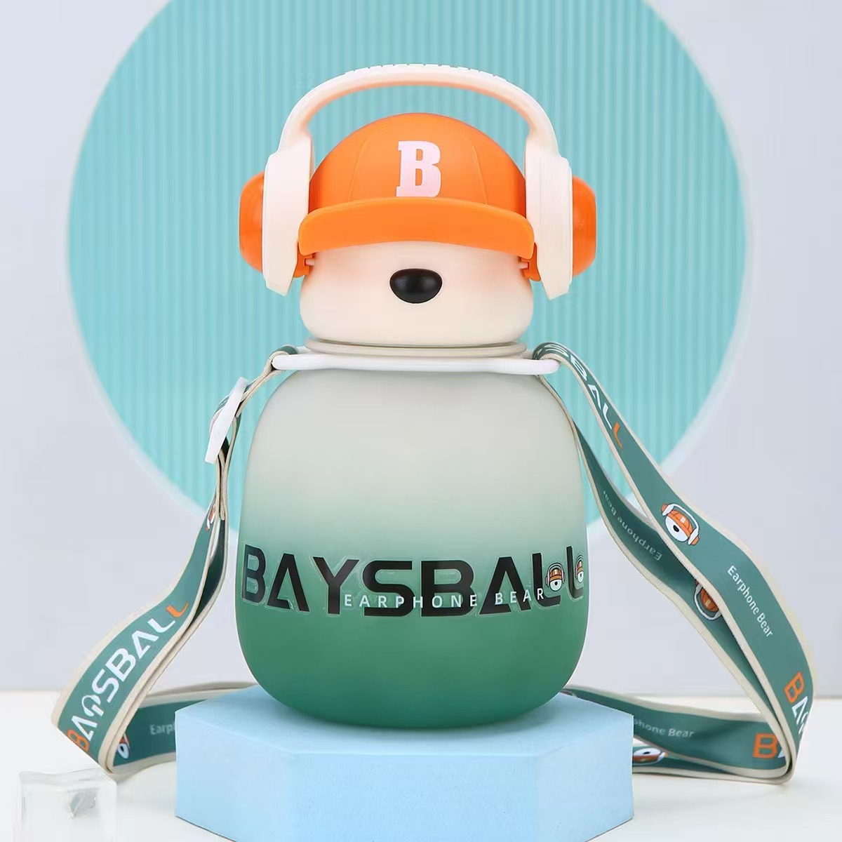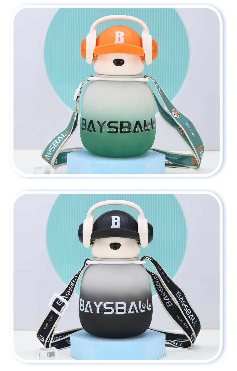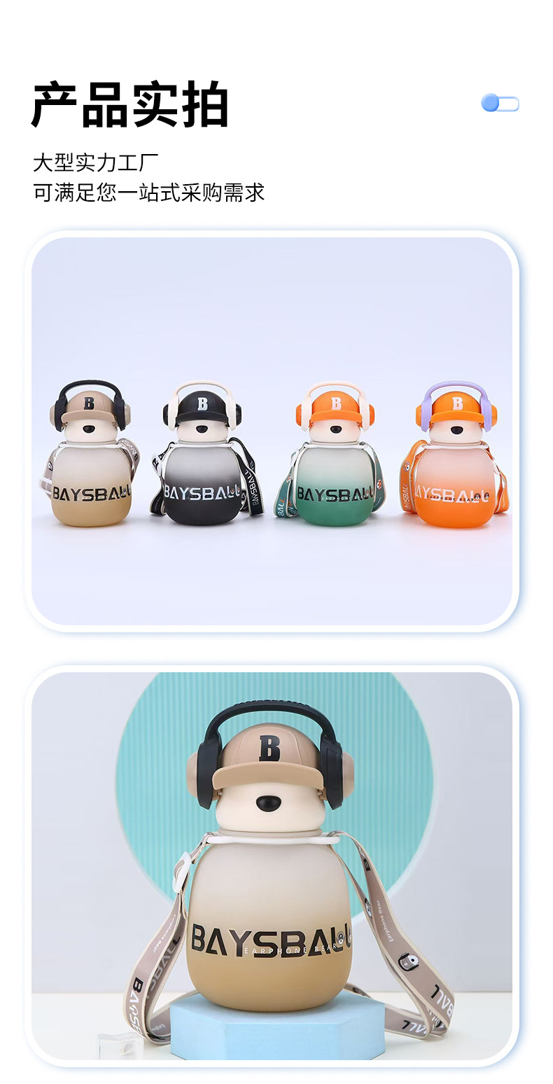 2025新款卡通耳机熊塑料杯磨砂家用吸管水杯高颜值吊带杯礼品杯工