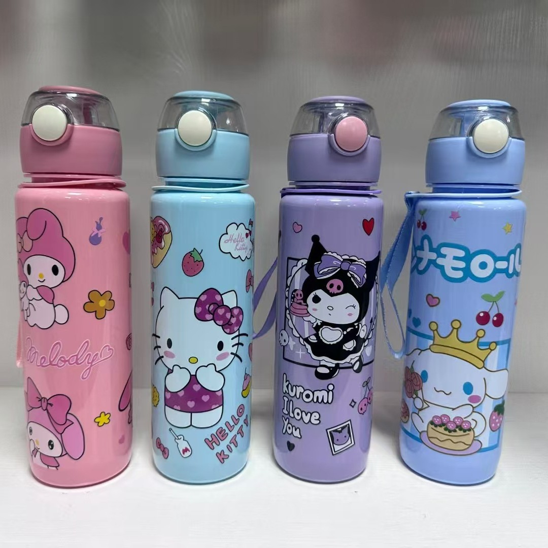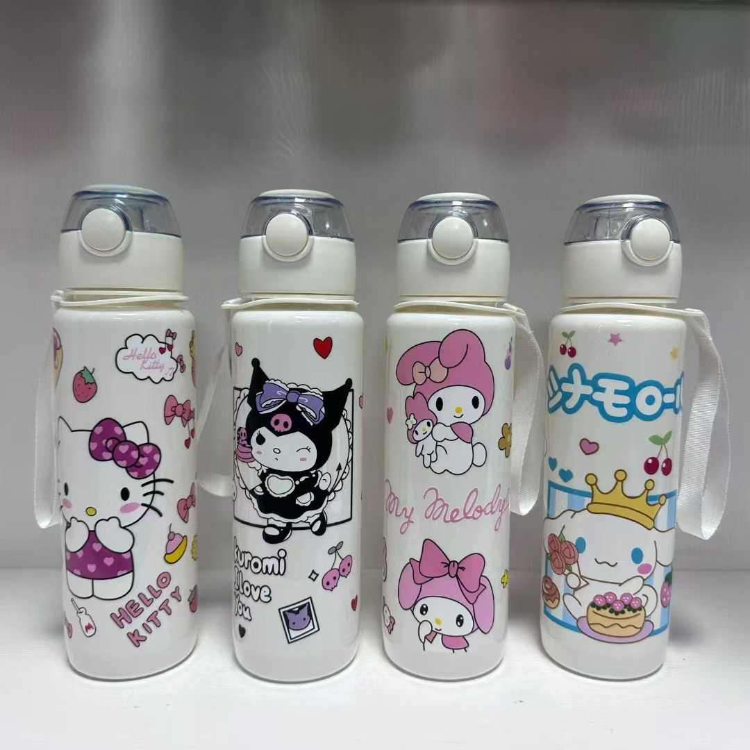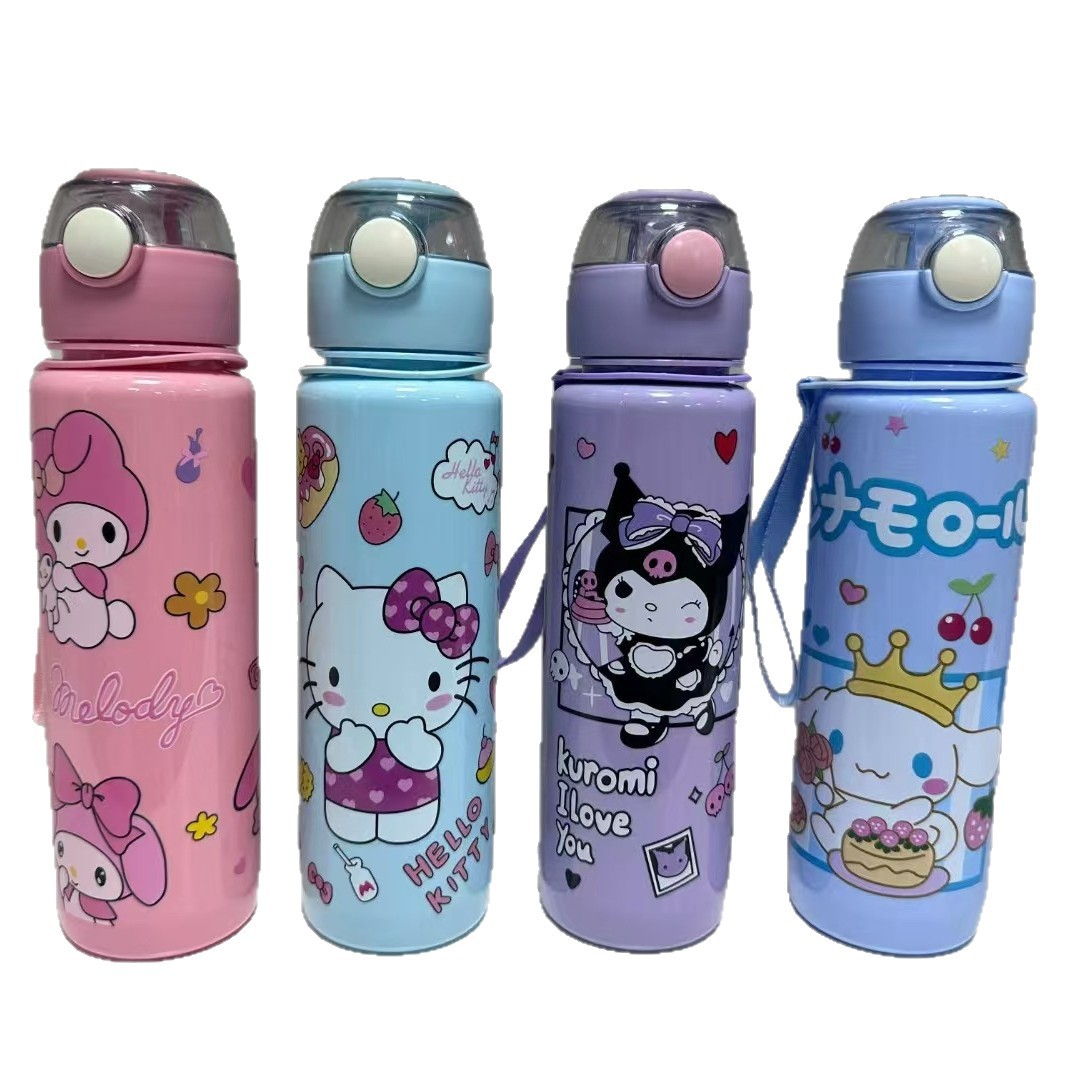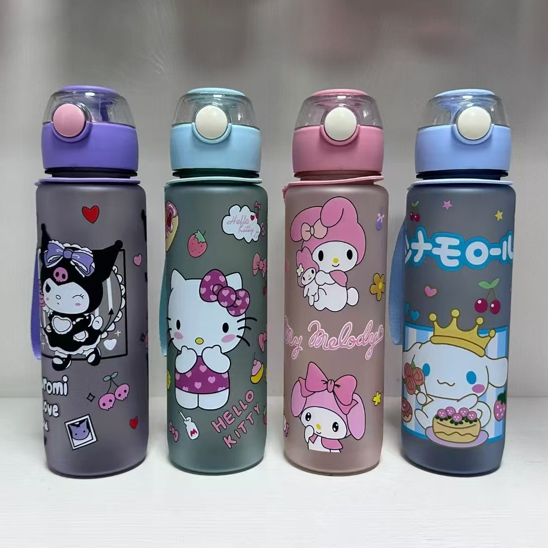 三丽鸥卡通塑料杯高颜值大容量磨砂弹跳杯提绳便携水杯儿童吸管杯